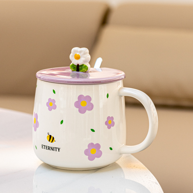 创意个性蝴蝶结马克杯高颜值少女心陶瓷杯礼品批发配盖勺
