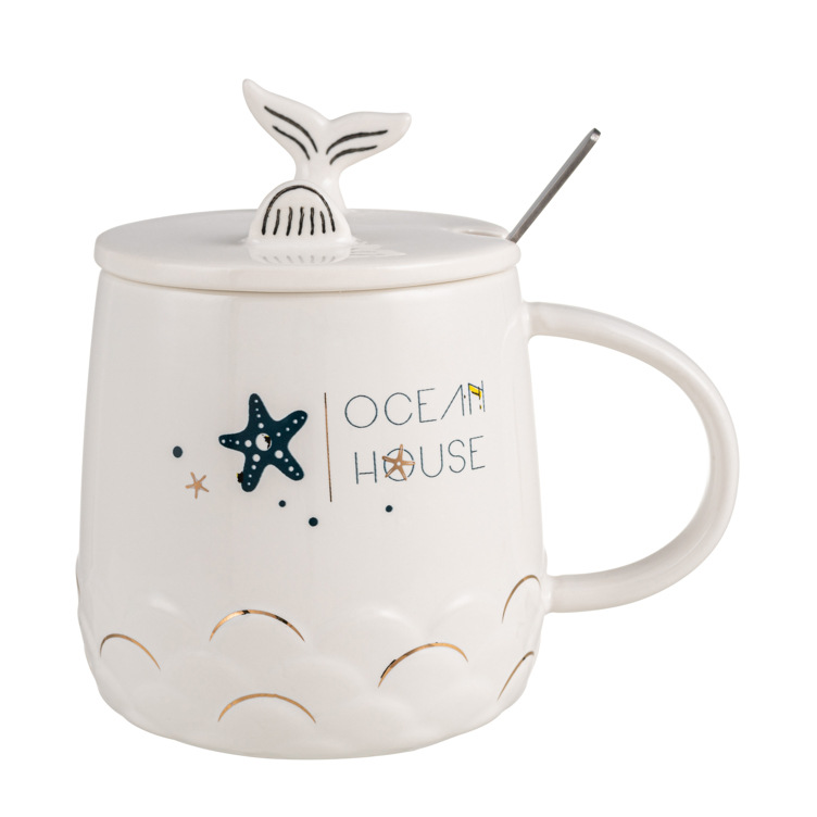 创意卡通浮雕马克杯动物树脂五角星可爱陶瓷杯配盖勺礼品批发logo