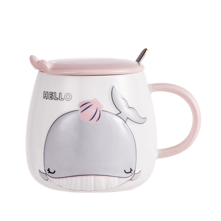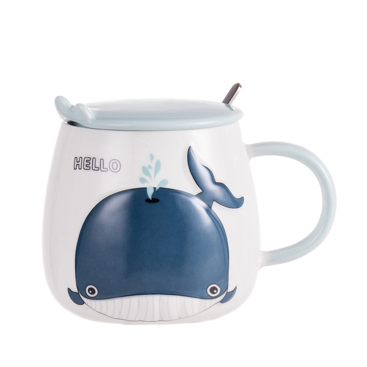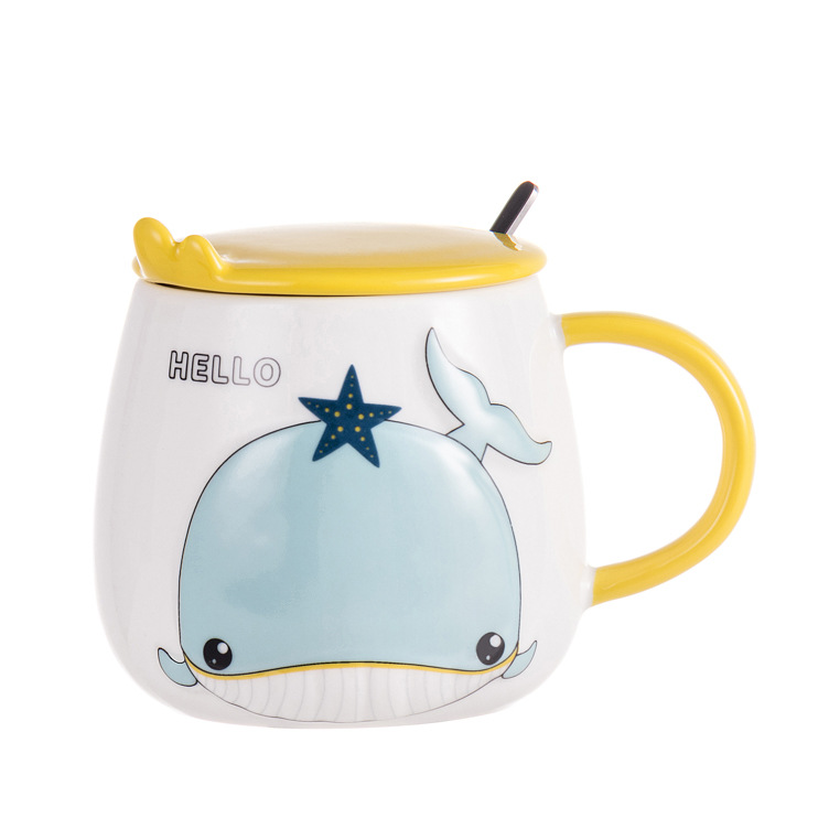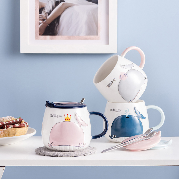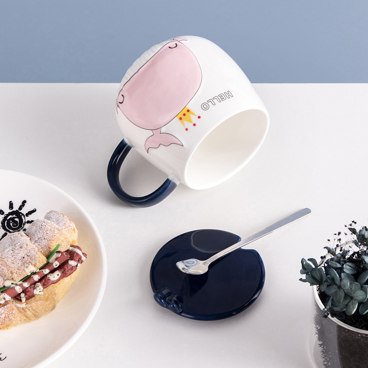 陶瓷杯简约风创意杯子家用马克杯水杯牛奶杯办公室咖啡杯带盖勺