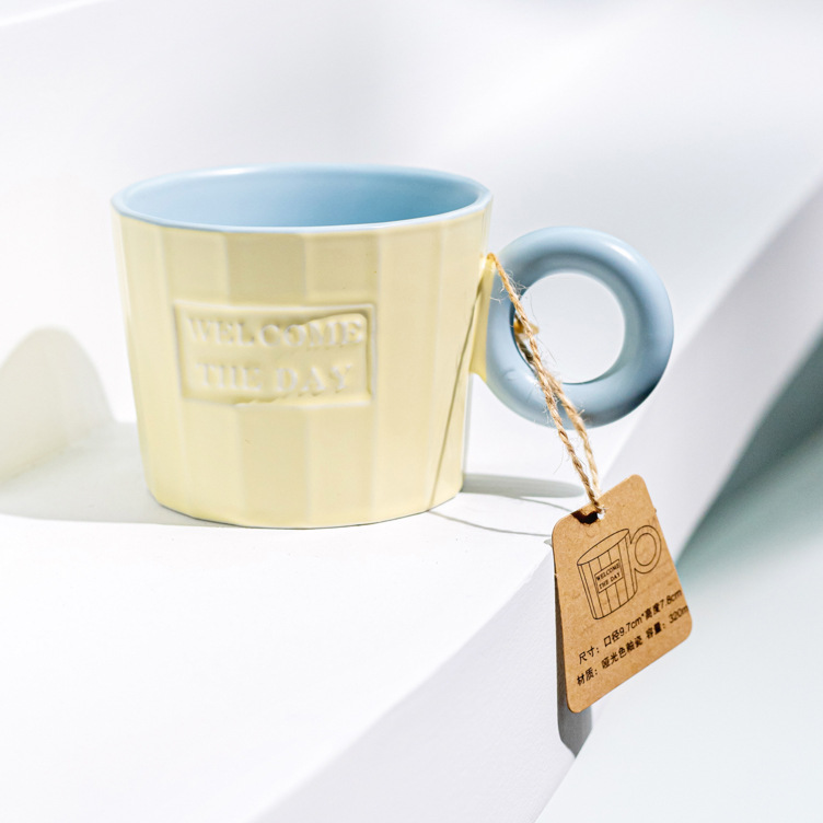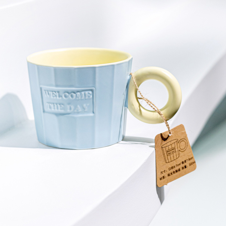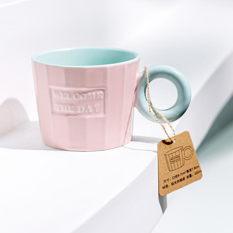 糖果色浮雕英文马克杯带盖情侣牛奶杯高颜值网红咖啡杯创意水杯