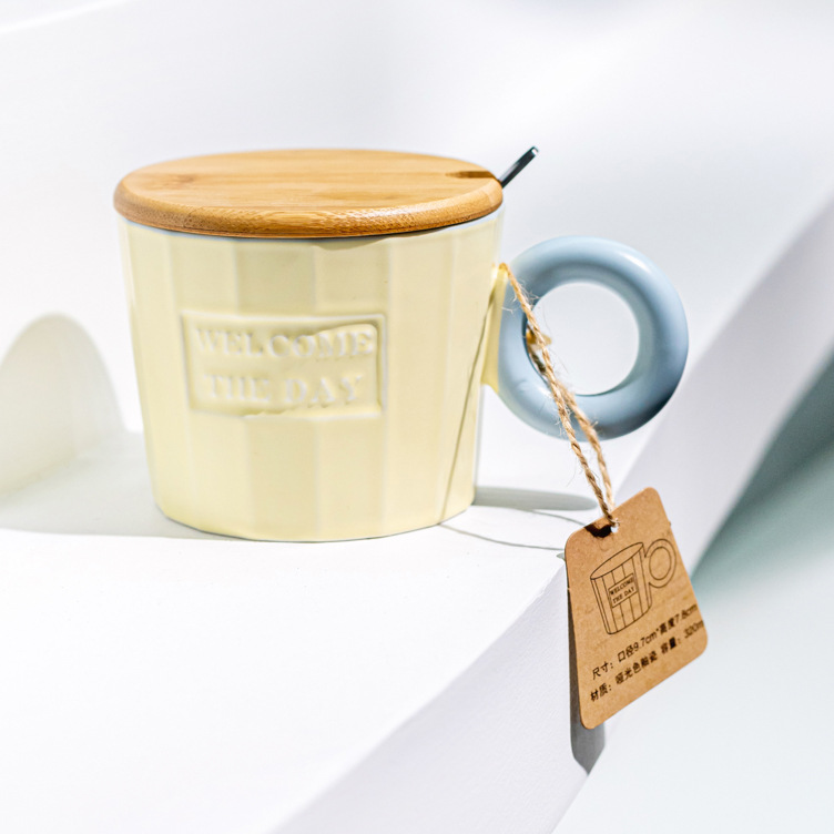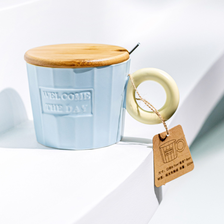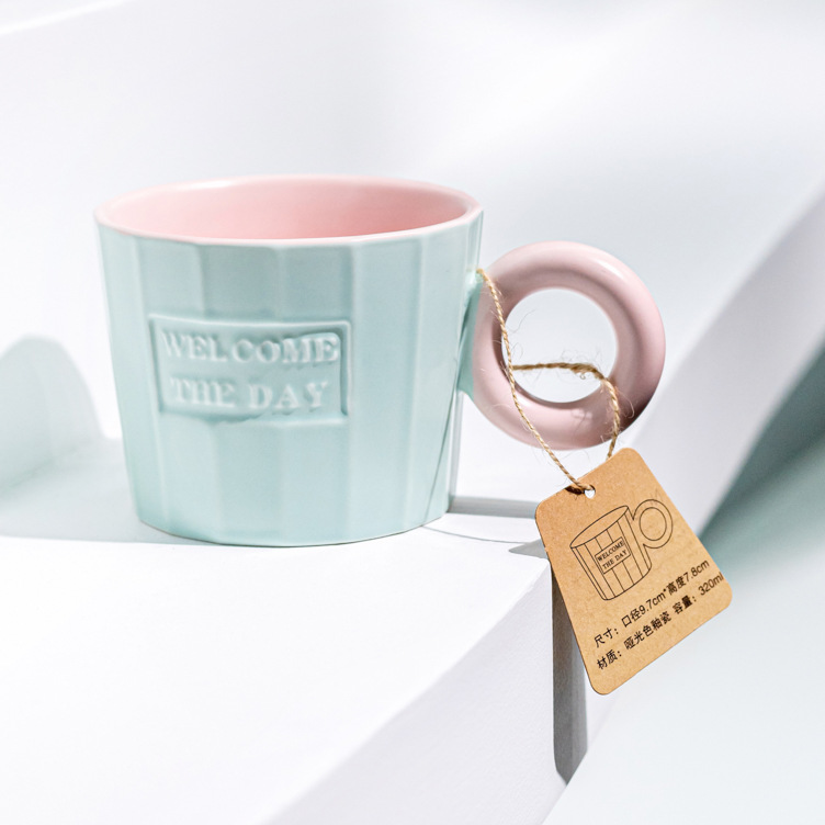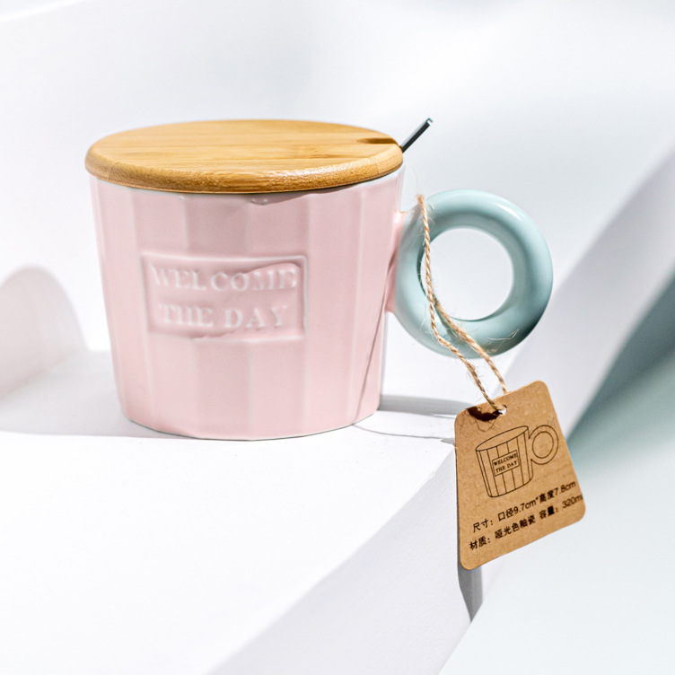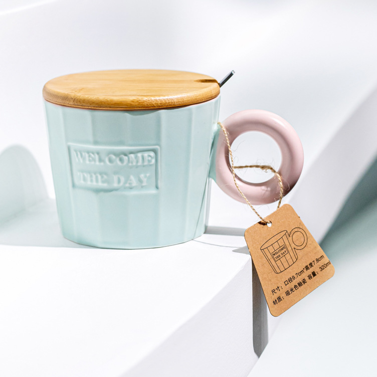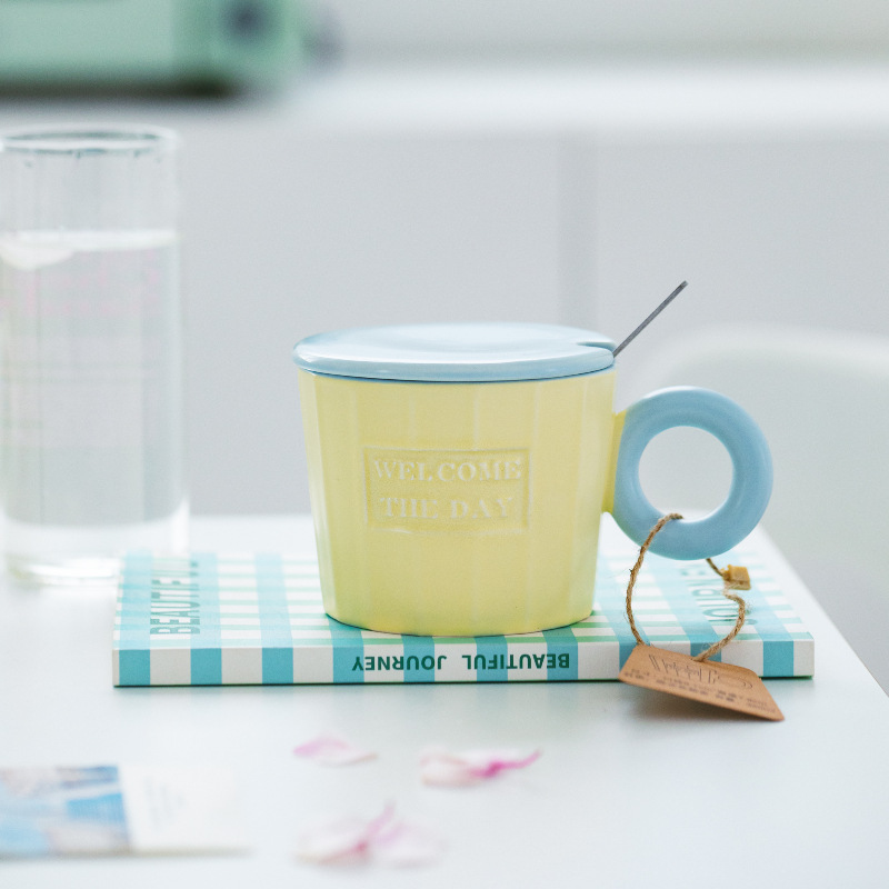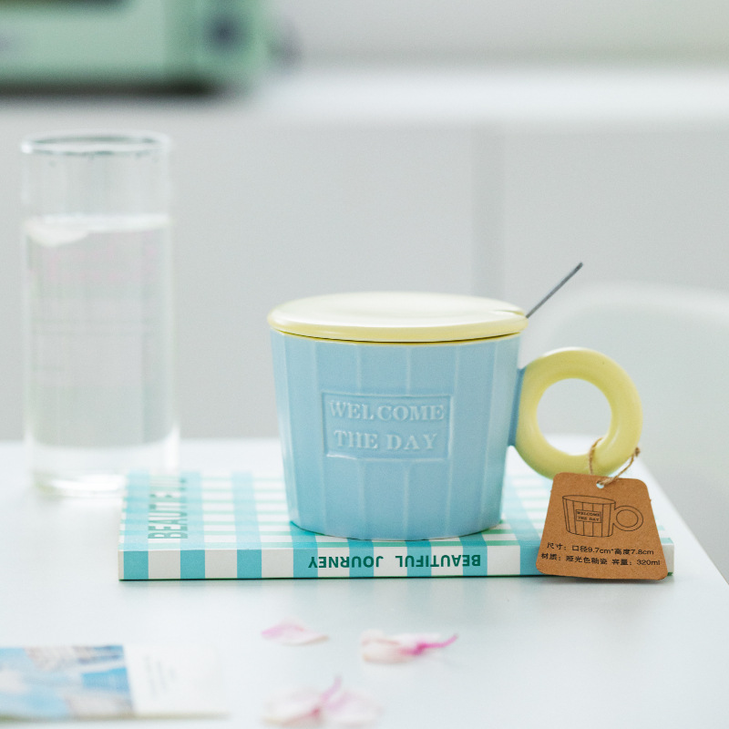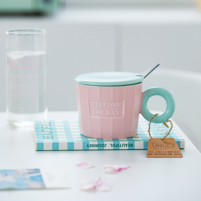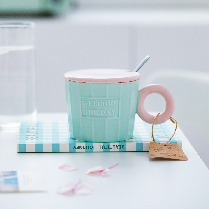 马卡龙色系陶瓷杯家用办公水杯咖啡杯创意高颜值情侣马克杯带盖