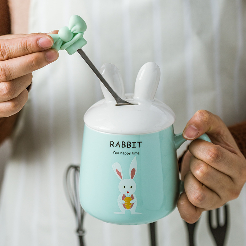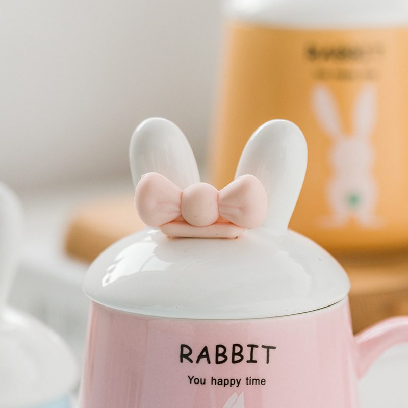 创意个性蝴蝶结马克杯高颜值少女心陶瓷杯礼品批发配盖勺