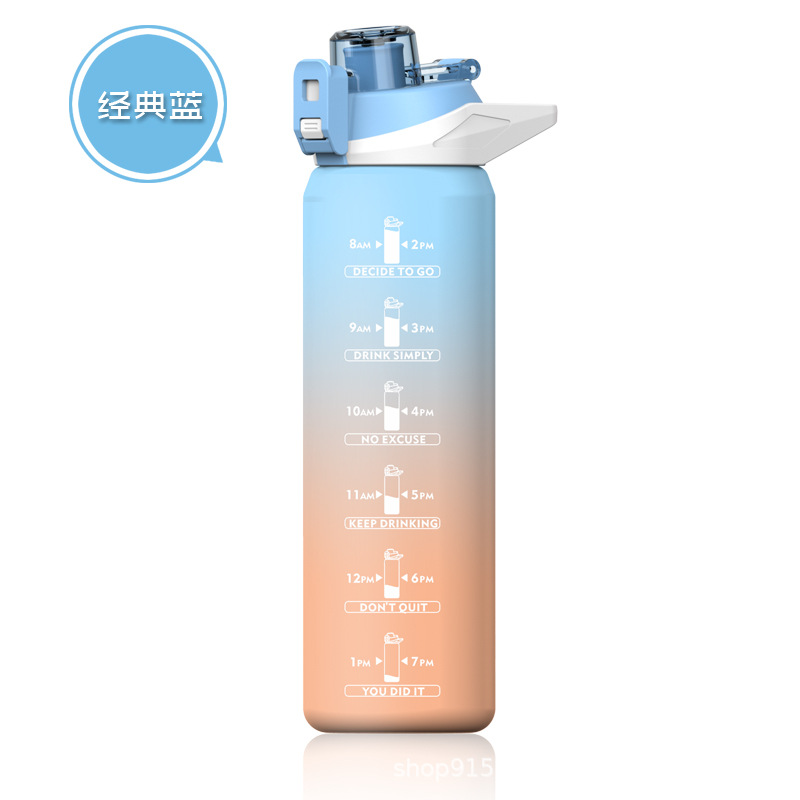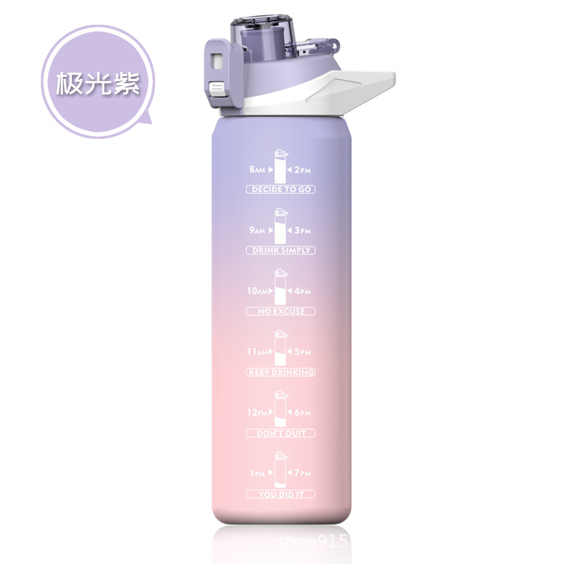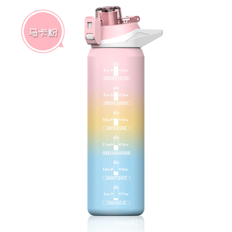 运动水杯大容量带刻度健身渐变色水壶磨砂便携防摔吸嘴塑料杯跨境