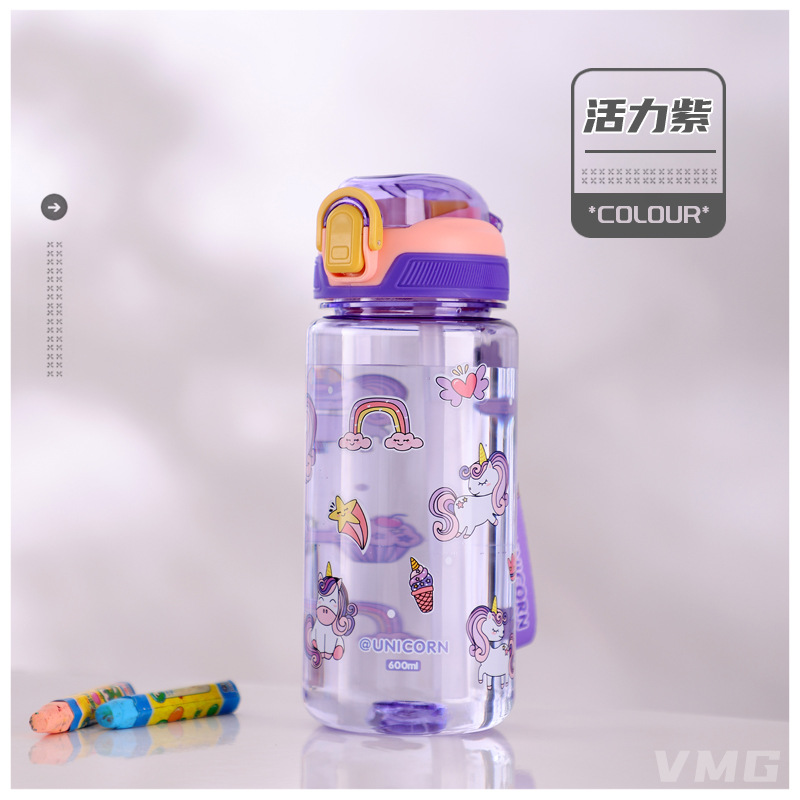 480ML亿本独角兽缤纷儿童水壶吸管塑料杯便携背带水杯