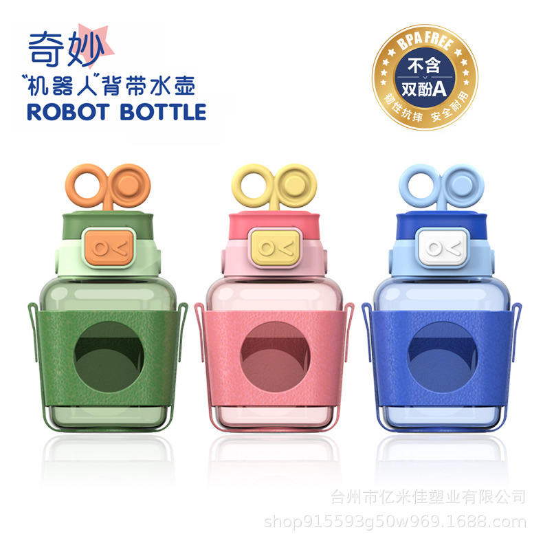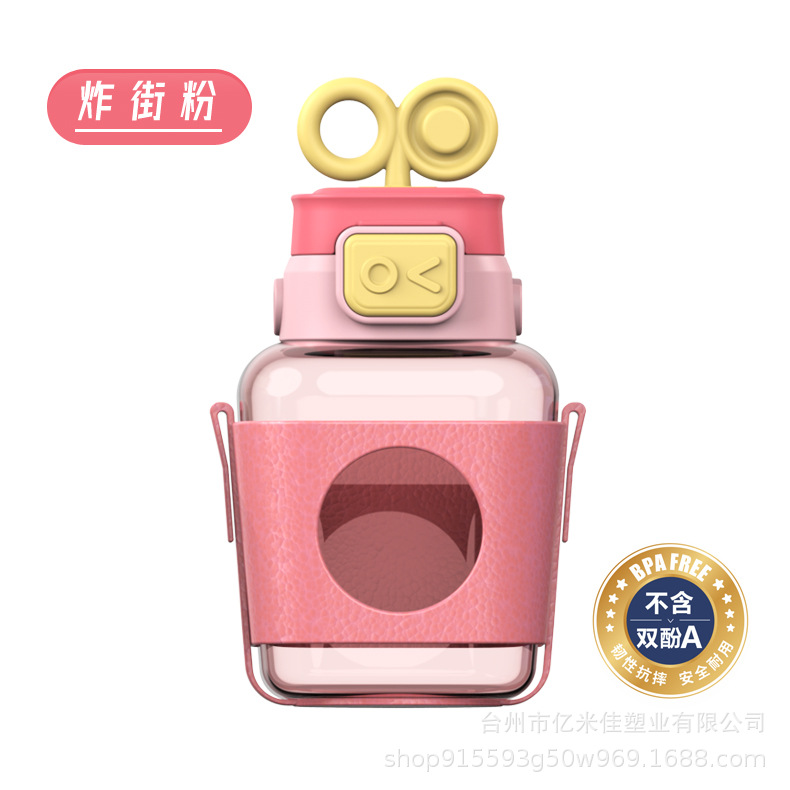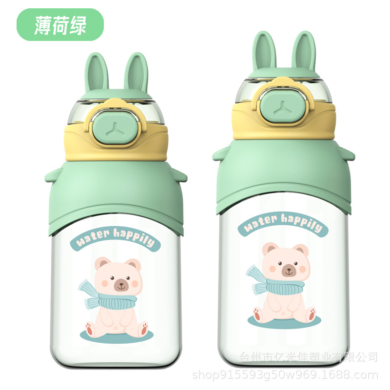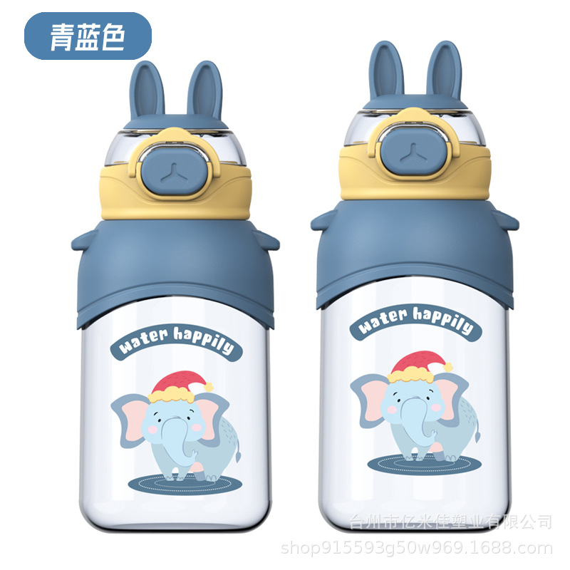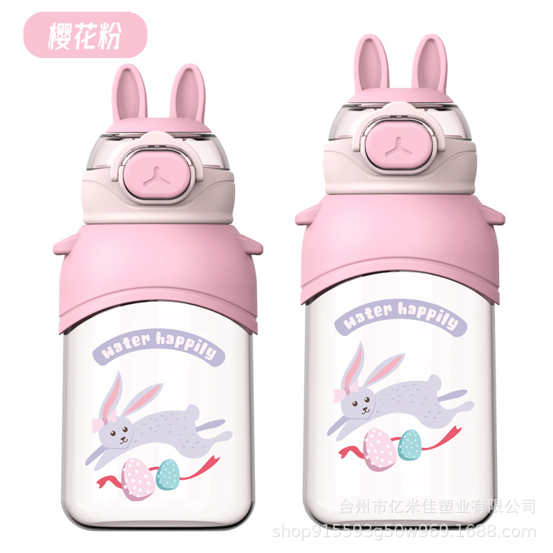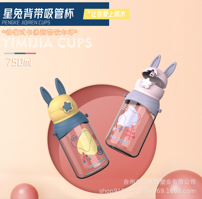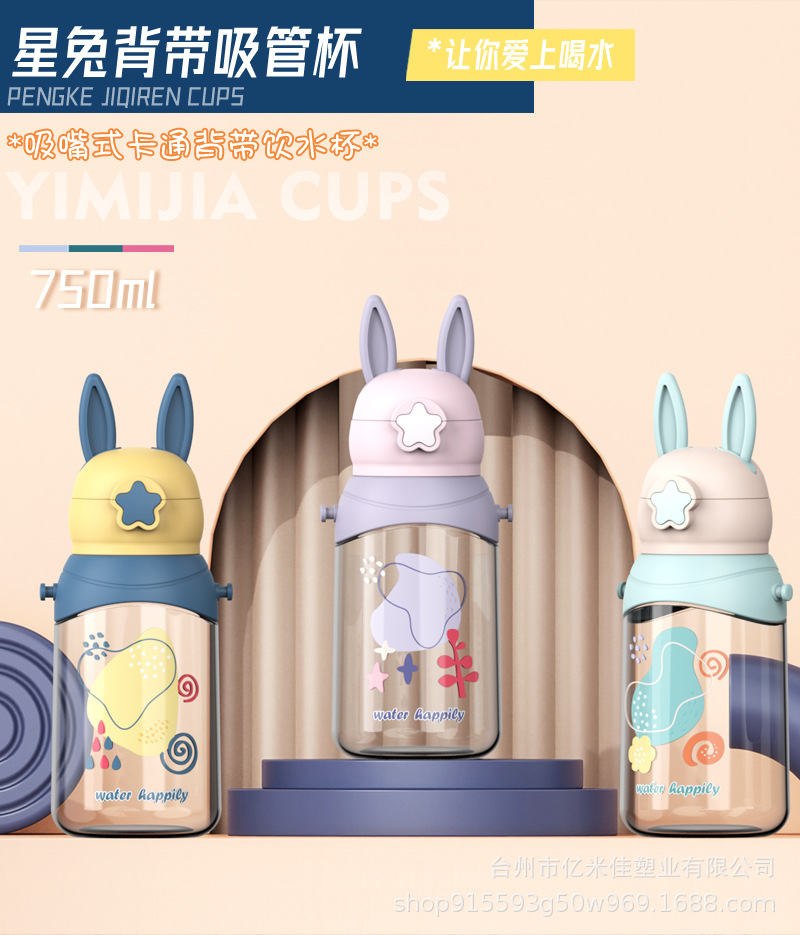 星兔创意卡通水杯儿童弹跳吸管杯可爱运动户外背带学生塑料杯批发