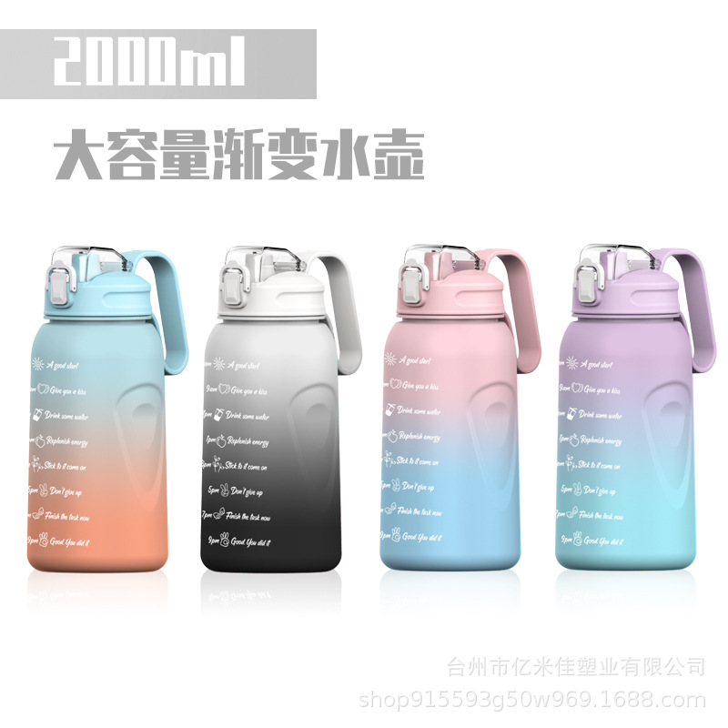 亚马逊渐变色塑料杯提手磨砂水壶太空吸管杯子大容量2000ml带刻度
