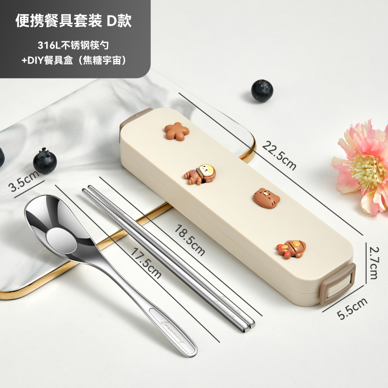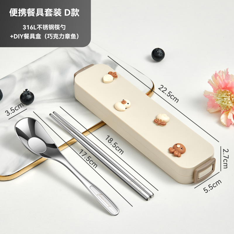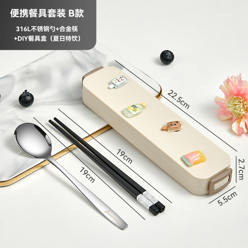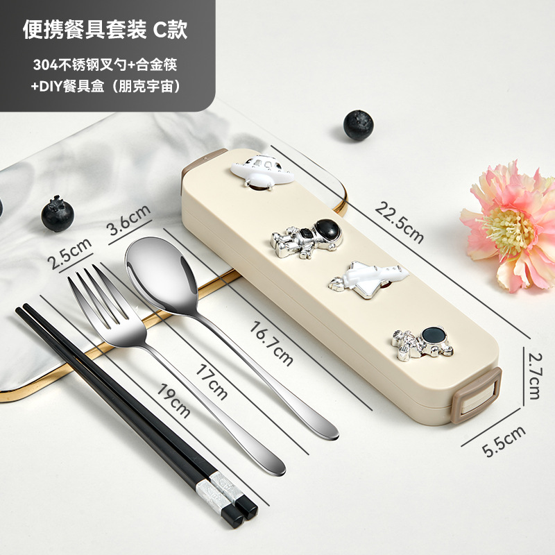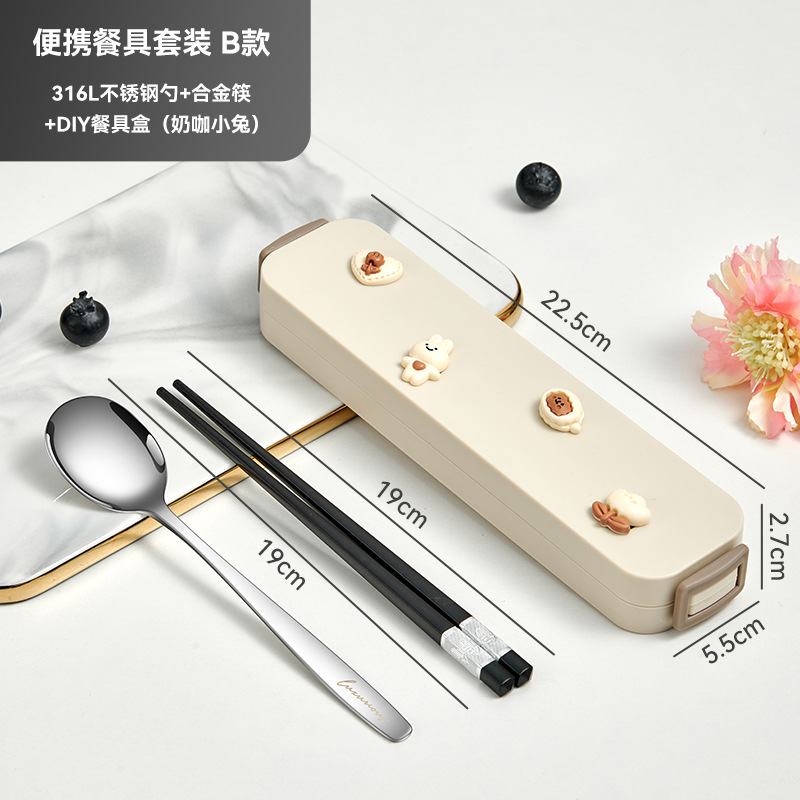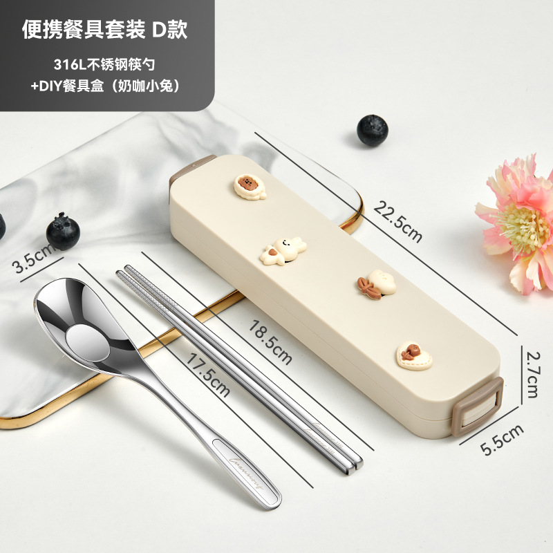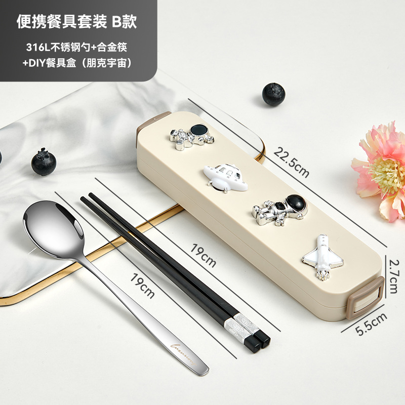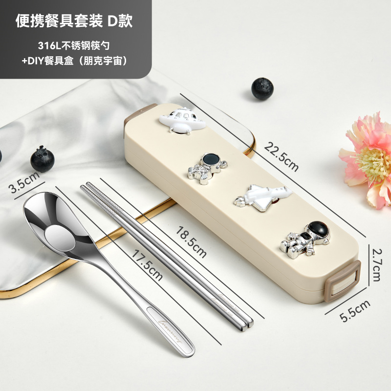 上班族便携餐具套装 316不锈钢勺子筷子 高颜值北欧风餐具收纳盒