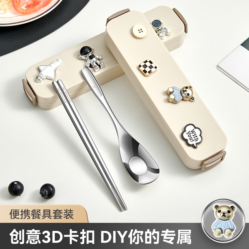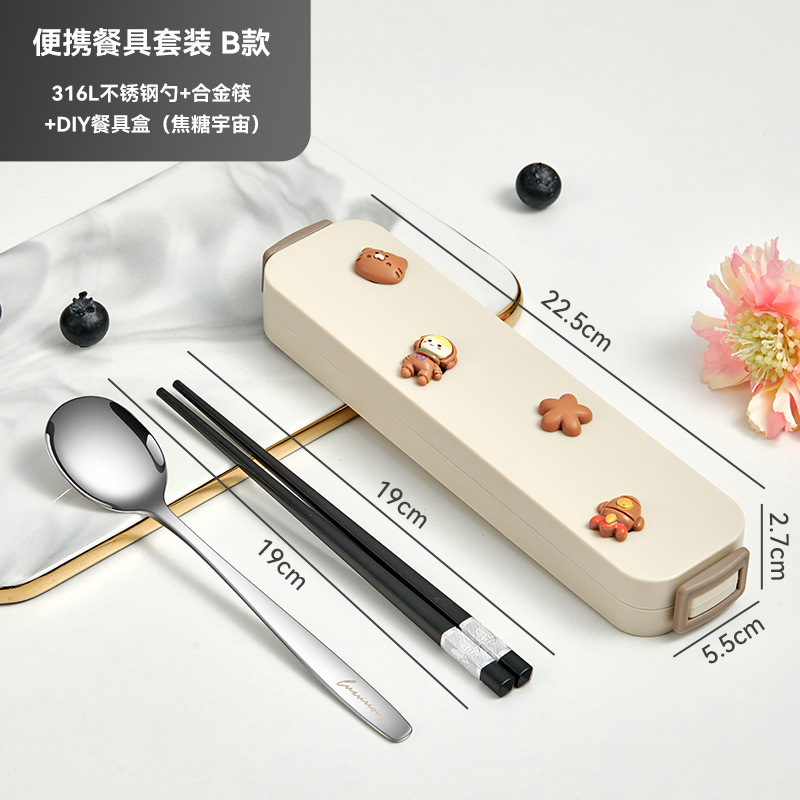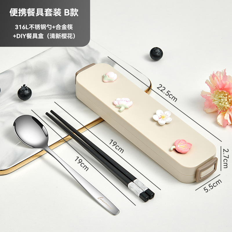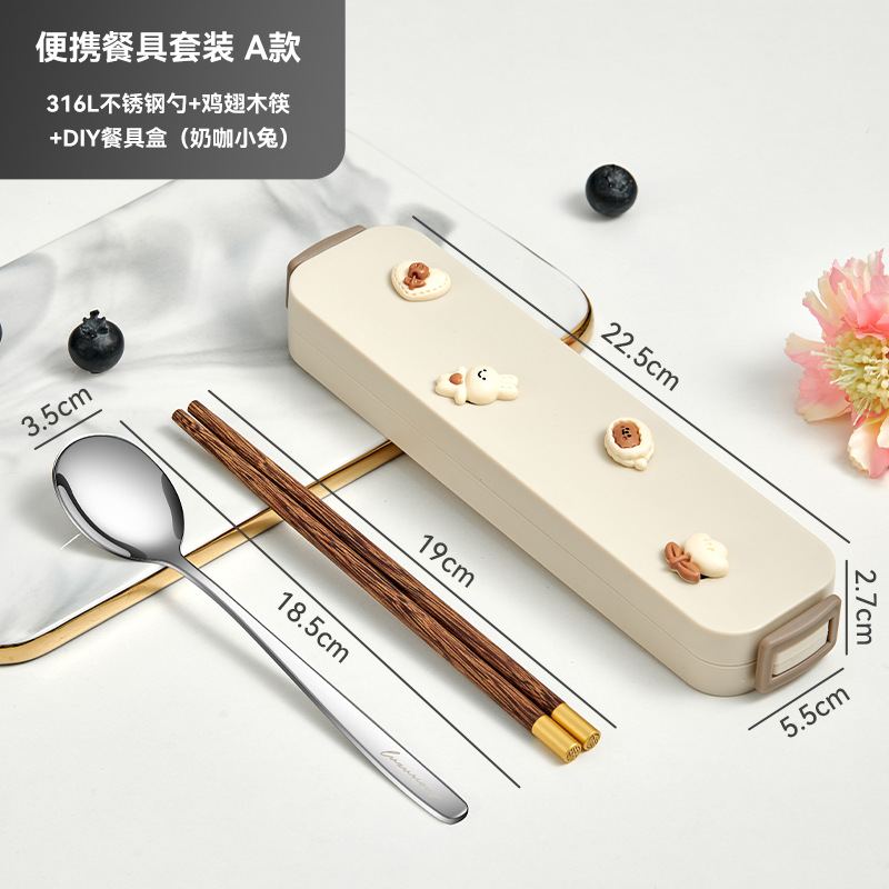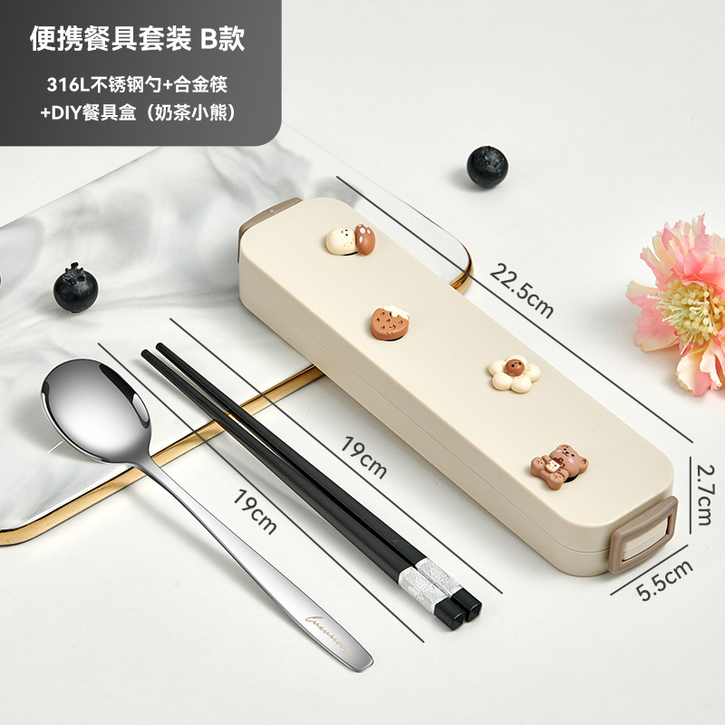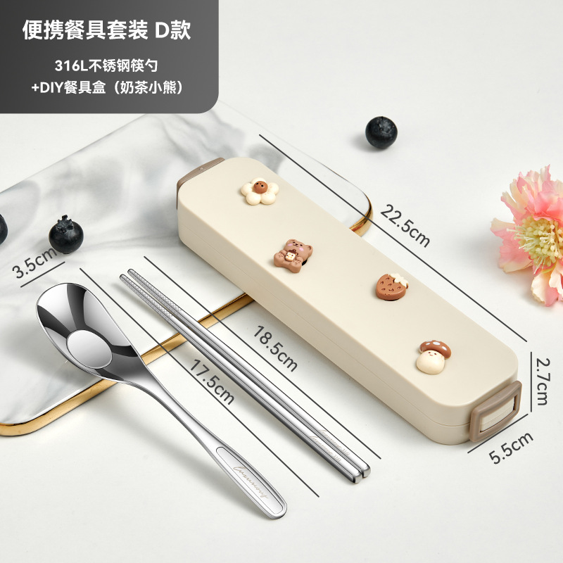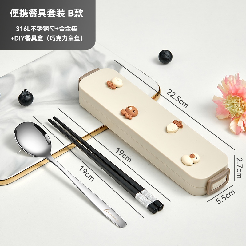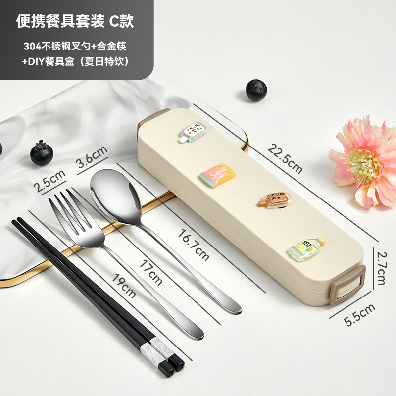 上班族便携餐具套装 316不锈钢勺子筷子 高颜值北欧风餐具收纳盒