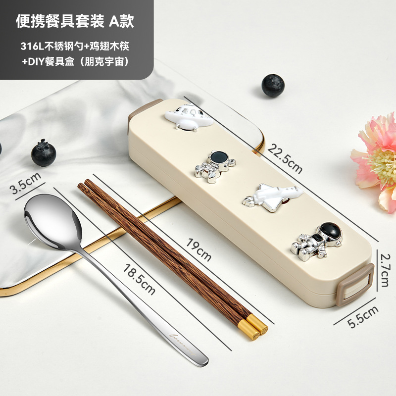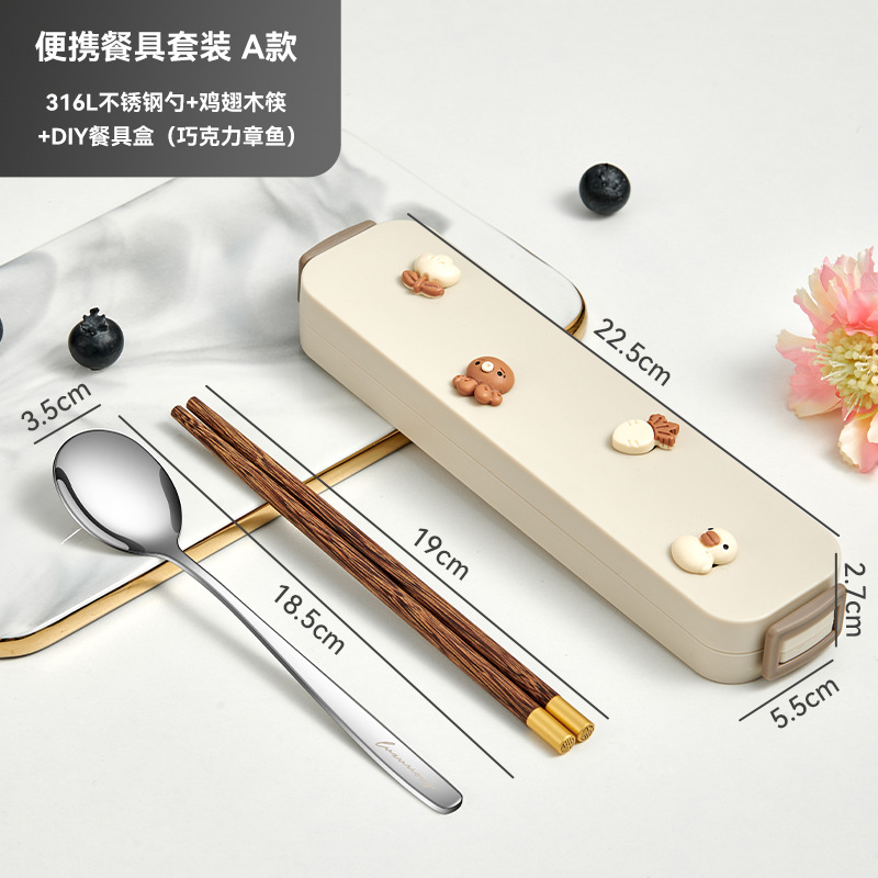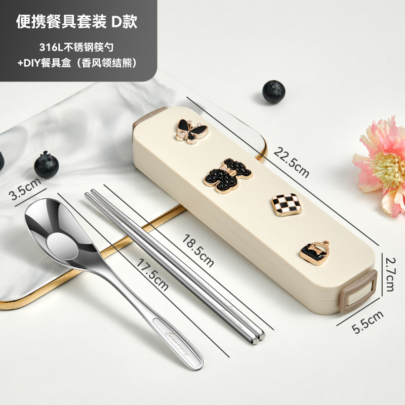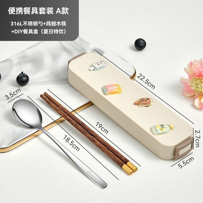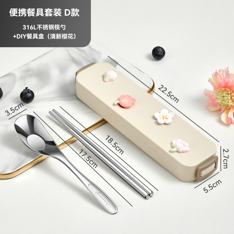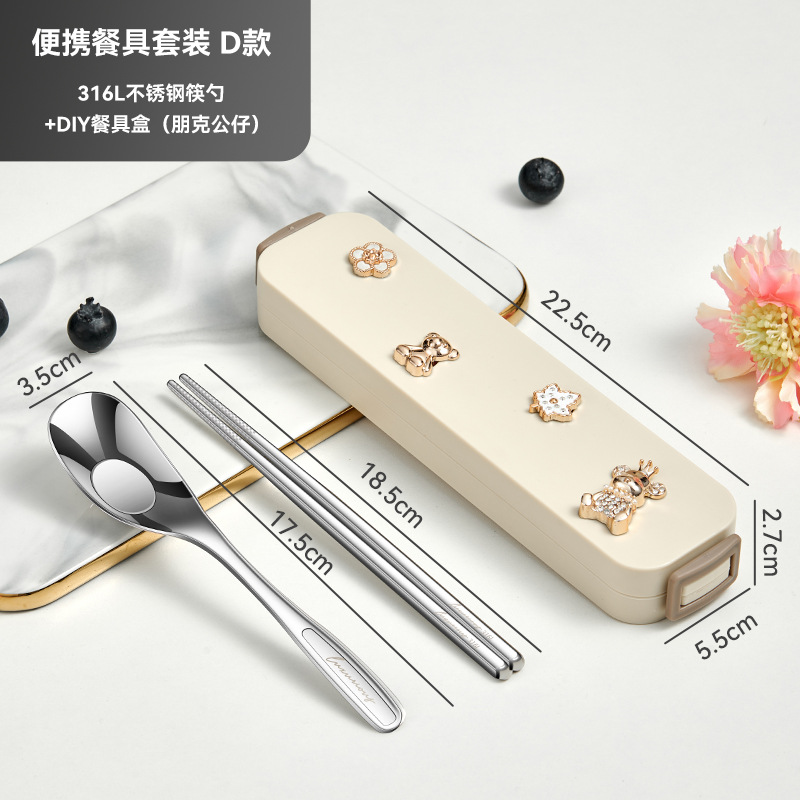 高颜值ins风学生户外旅行便携式316不锈钢勺子筷子餐具盒套装批发