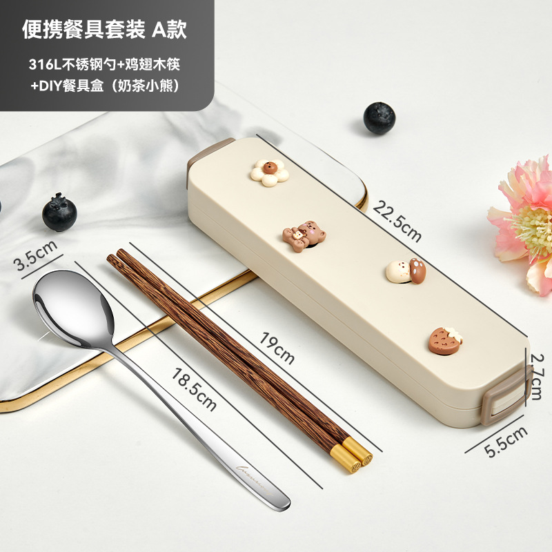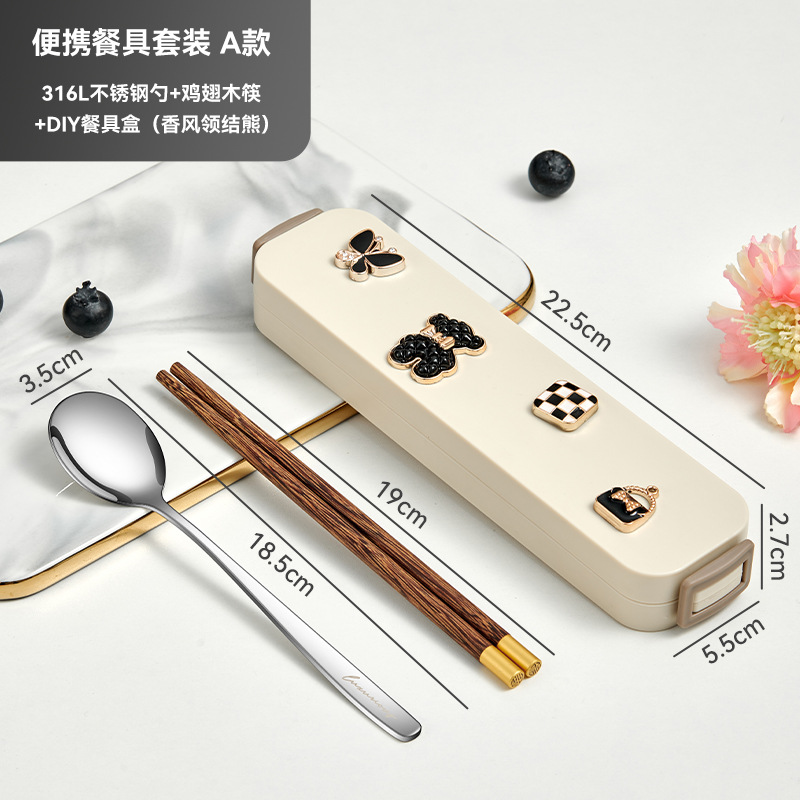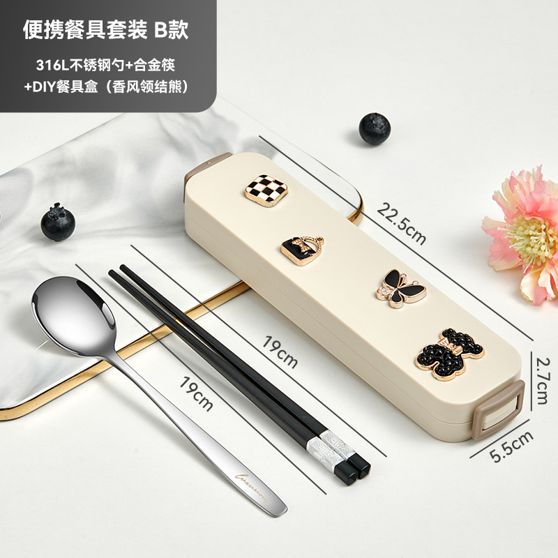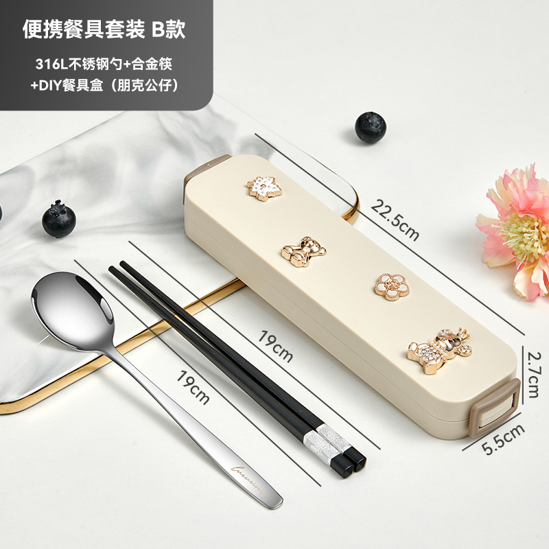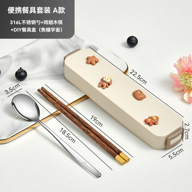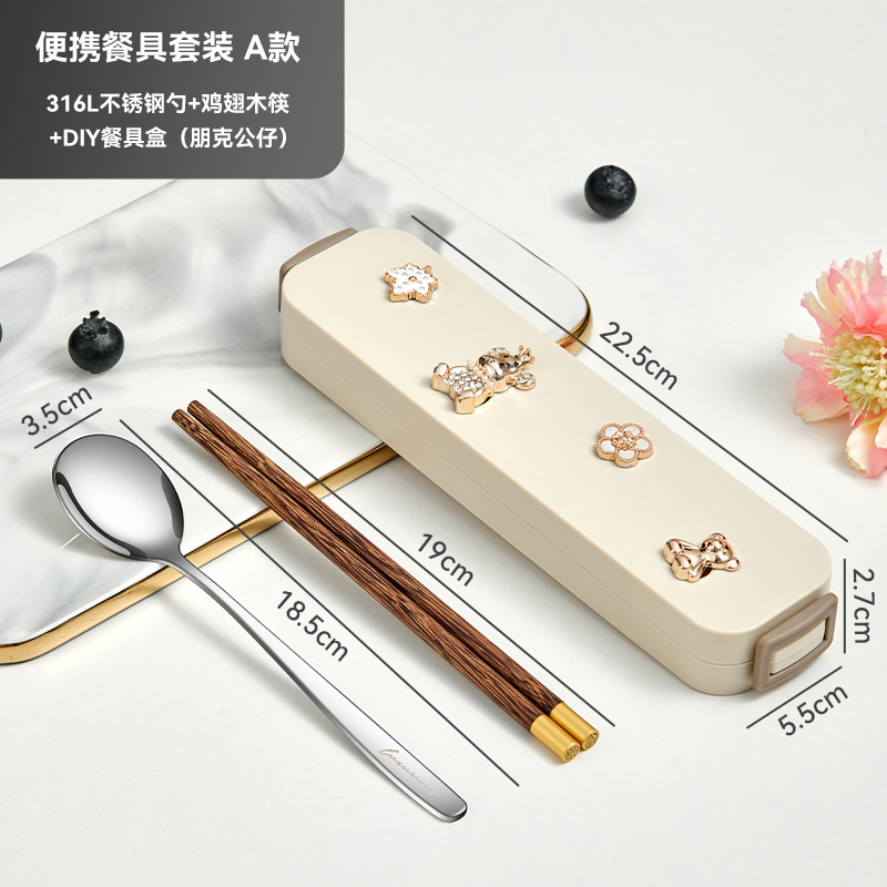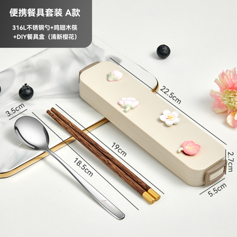 高颜值ins风学生户外旅行便携式316不锈钢勺子筷子餐具盒套装批发