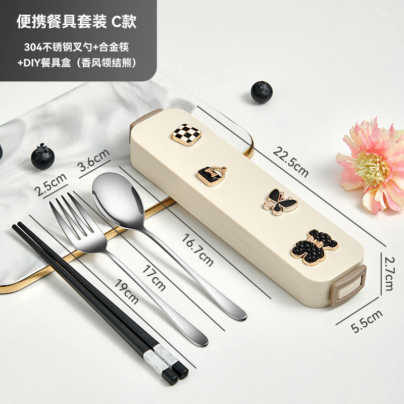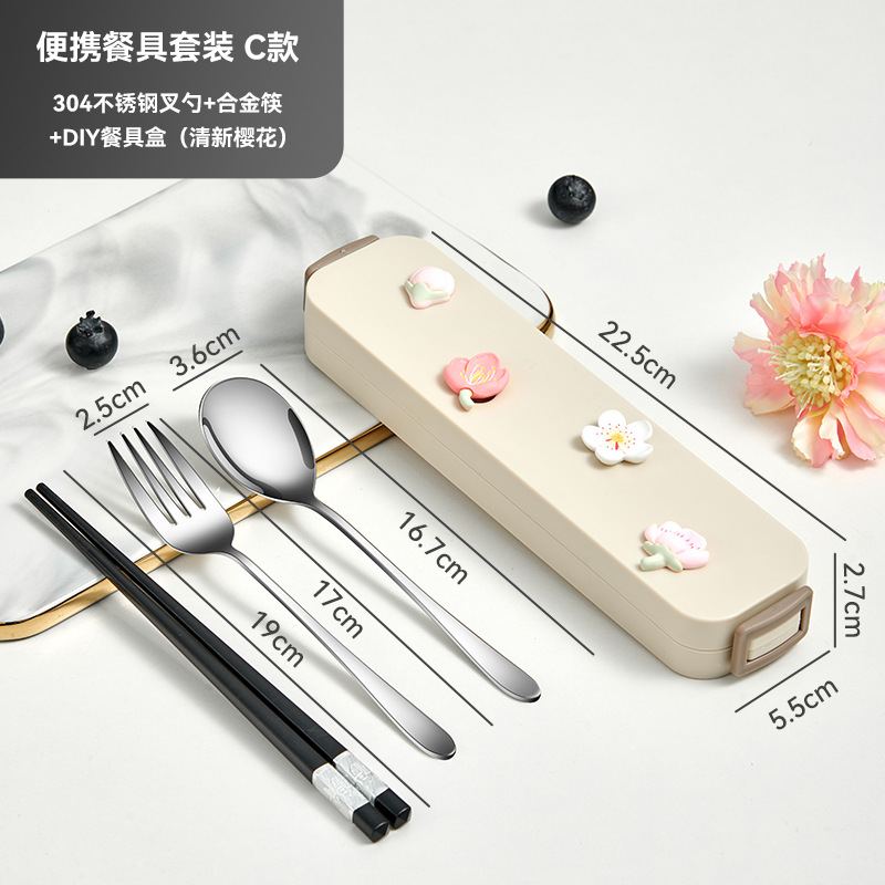 不锈钢便携可爱筷子勺子叉子套装上班族学生摩登餐具三件套一人用