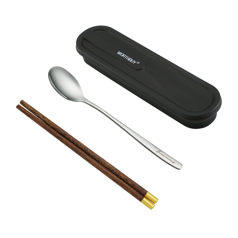 上班族便携餐具套装316不锈钢勺子筷子吃饭元宝勺平底勺收纳盒子