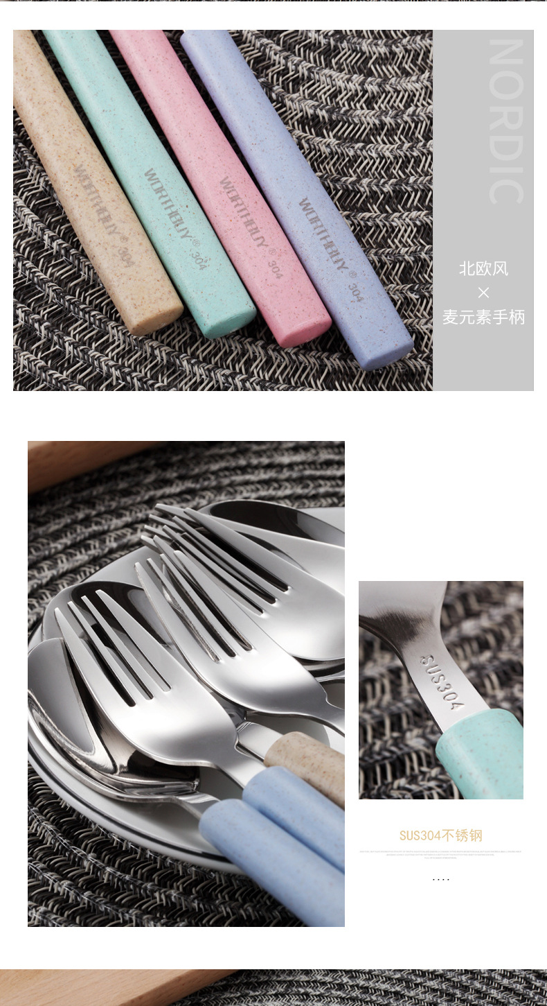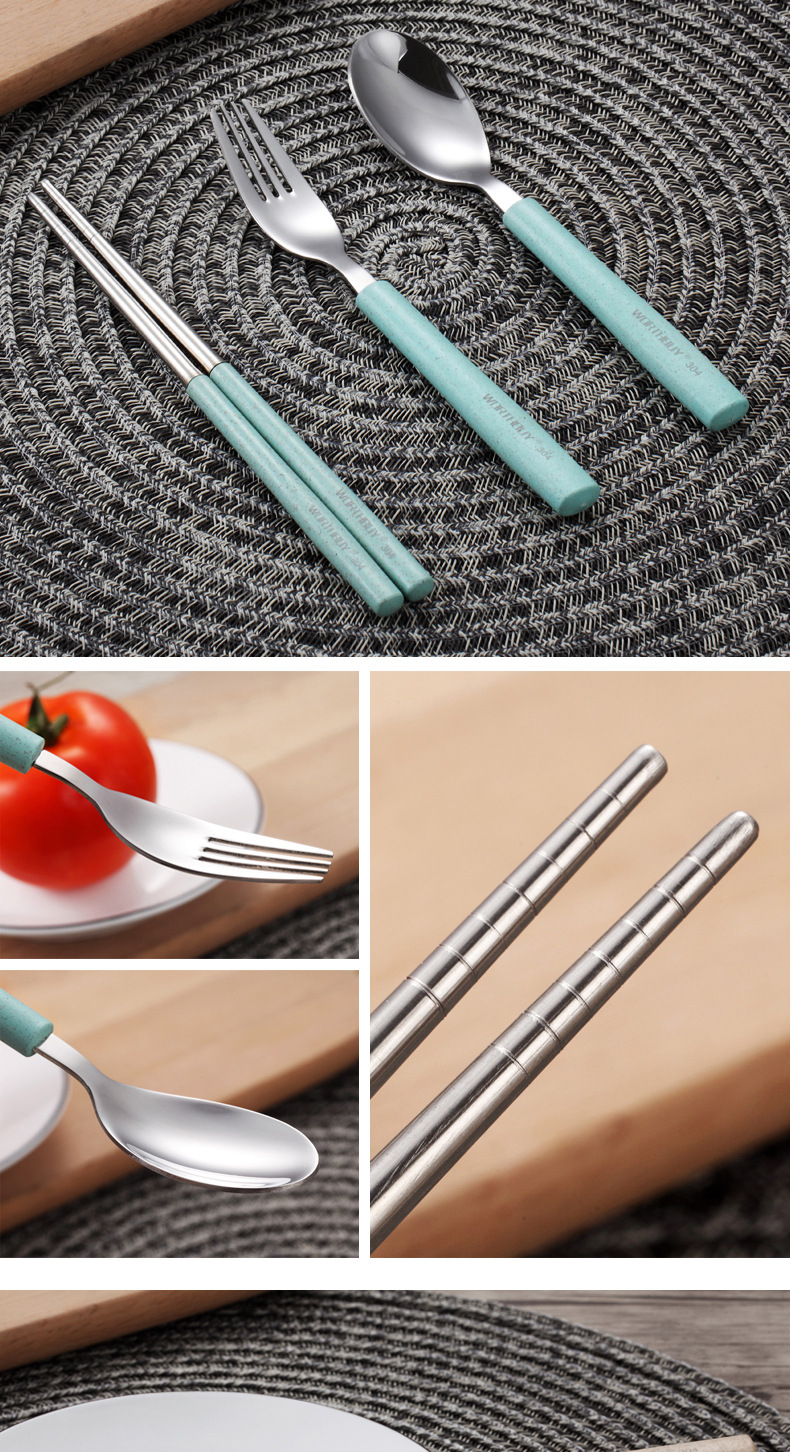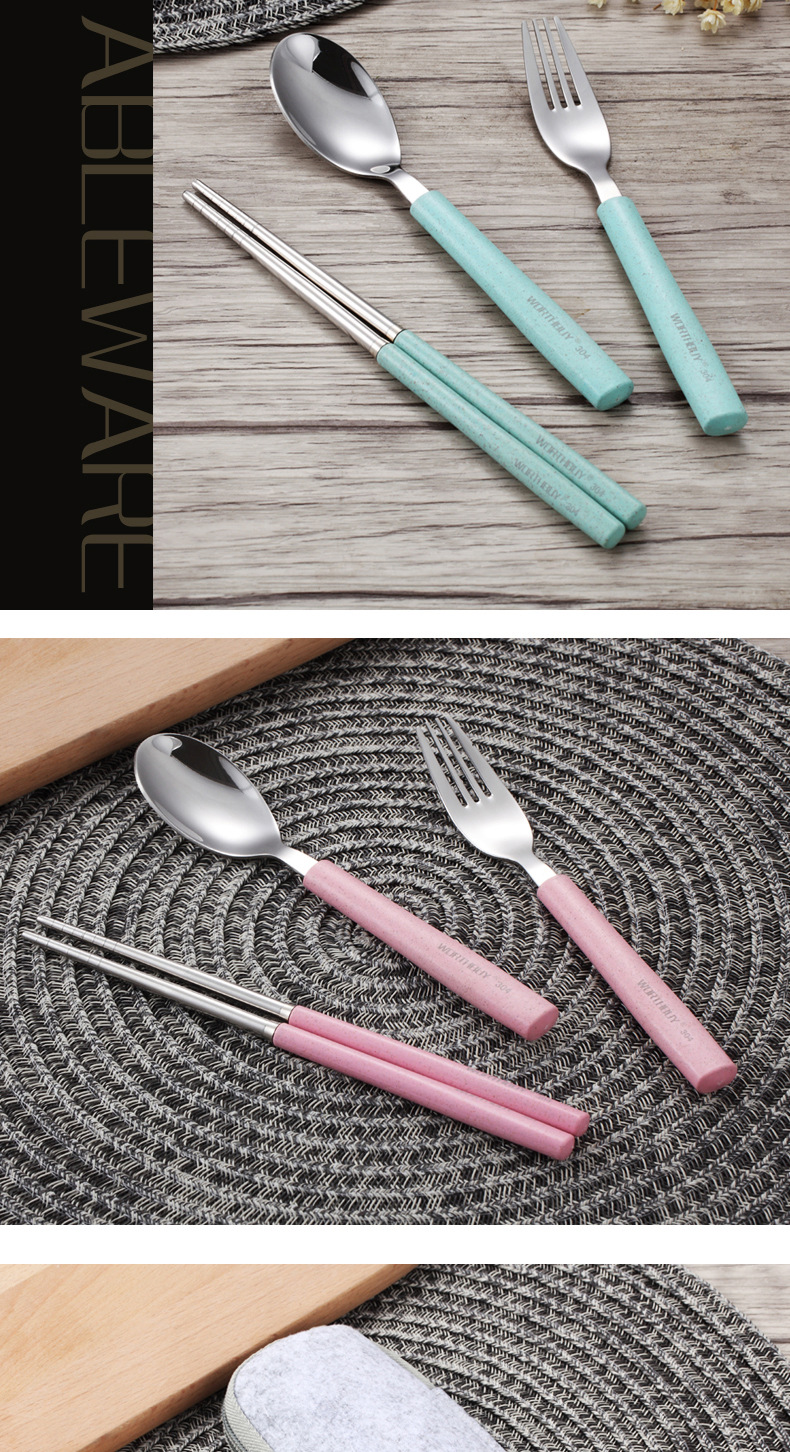 韩式便携304不锈钢餐具套装户外学生防烫筷子勺子叉子三件套礼品