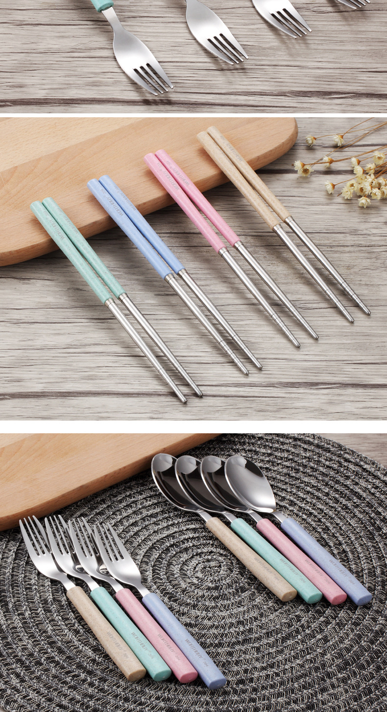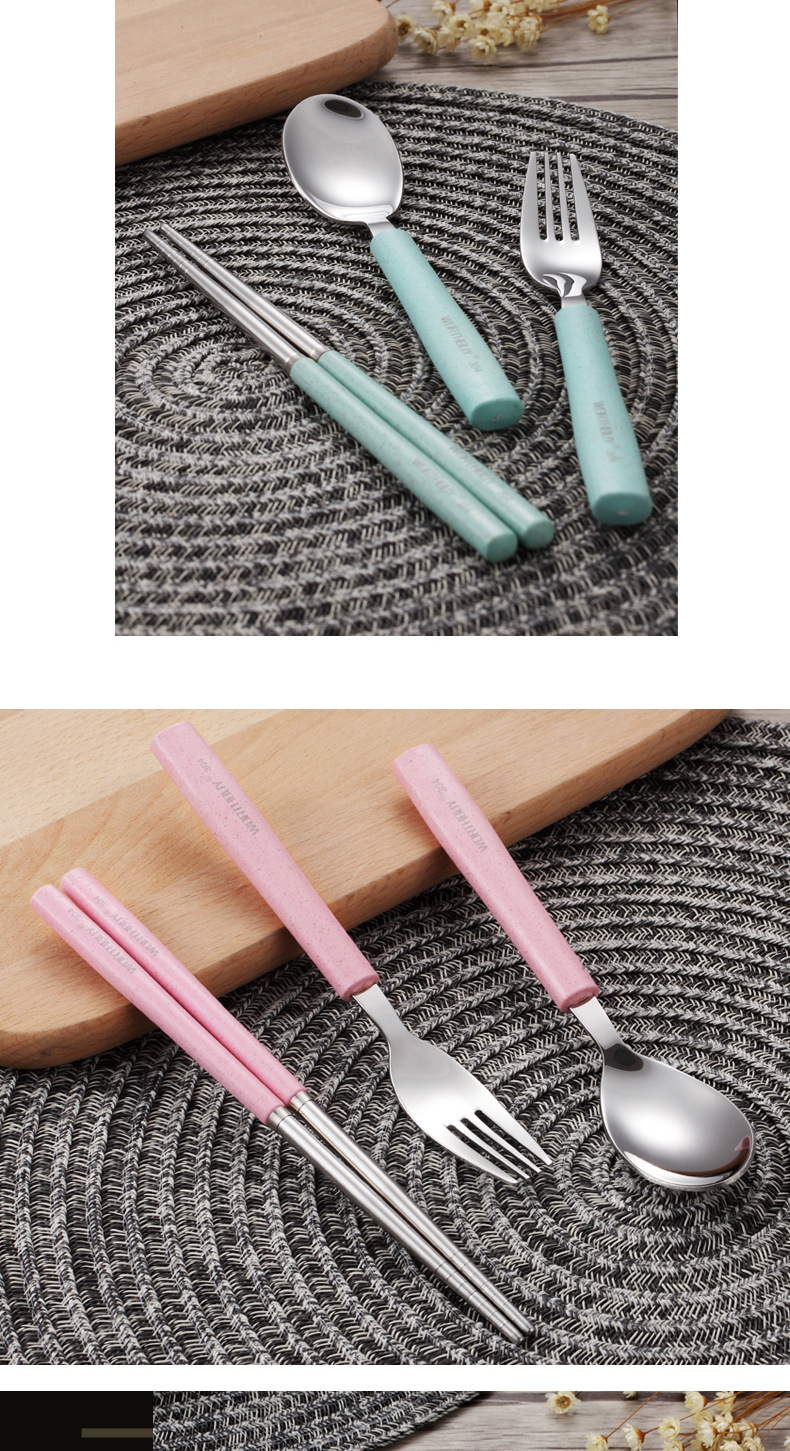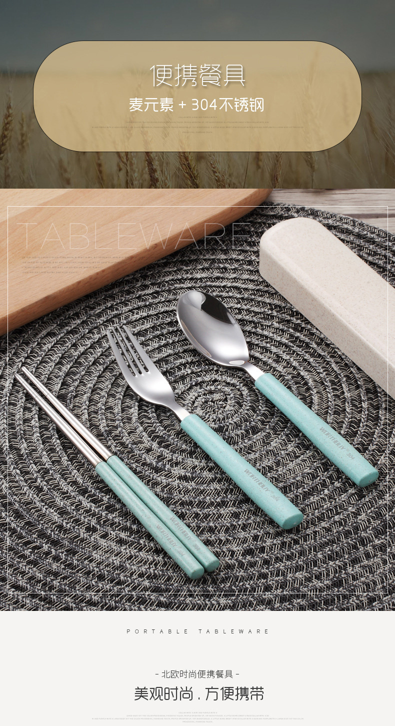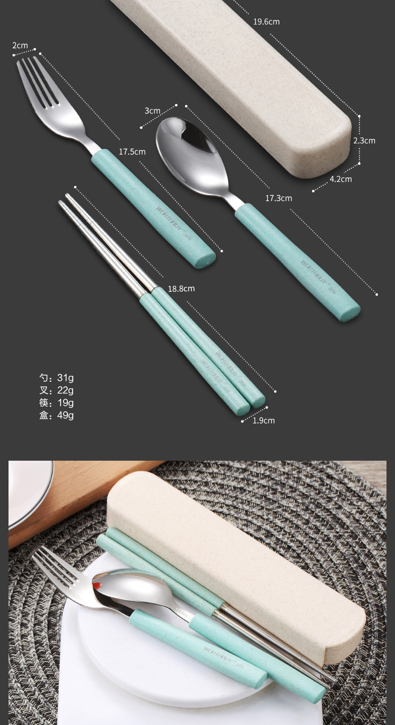 韩式便携304不锈钢餐具套装户外学生防烫筷子勺子叉子三件套礼品