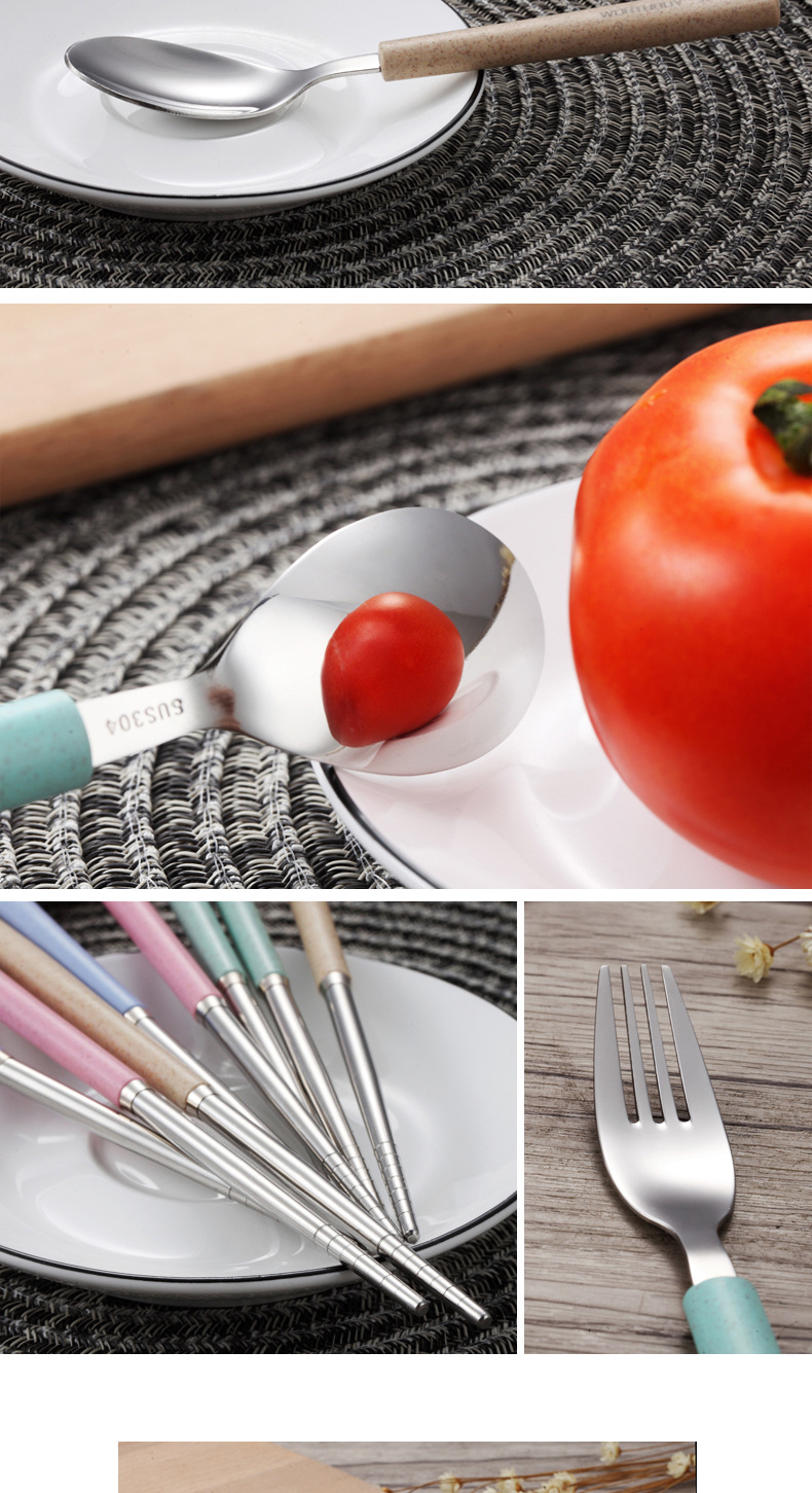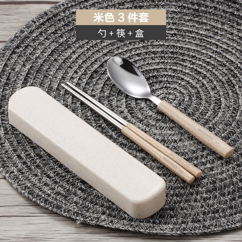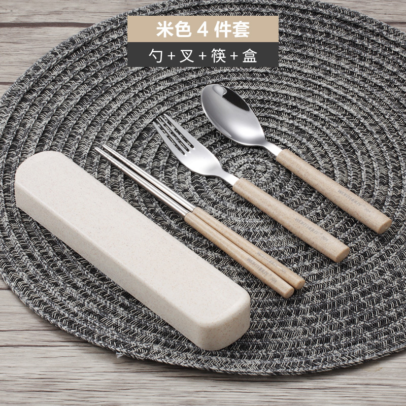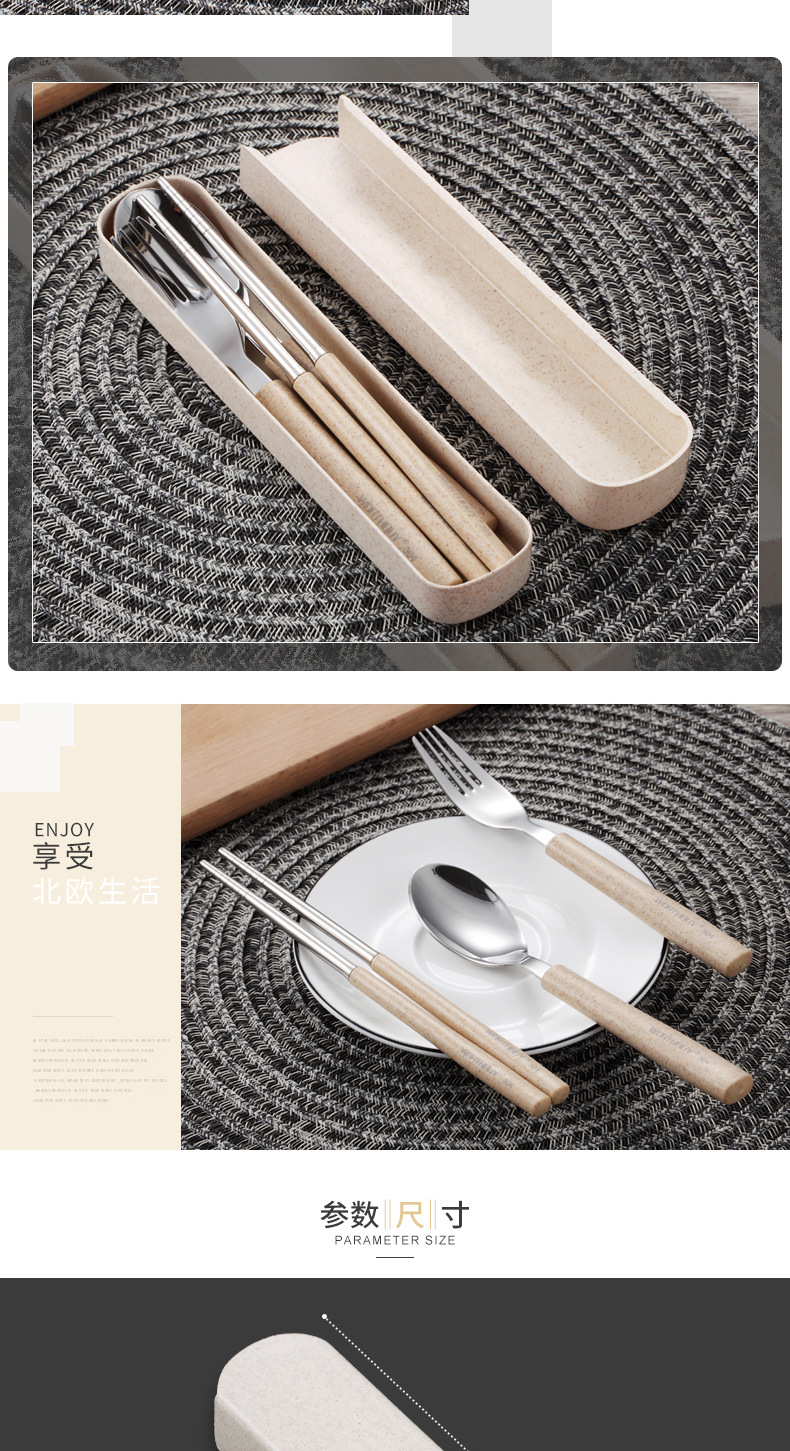 316不锈钢便携餐具 学生上班族外带野餐吃饭勺子木筷子餐具套装