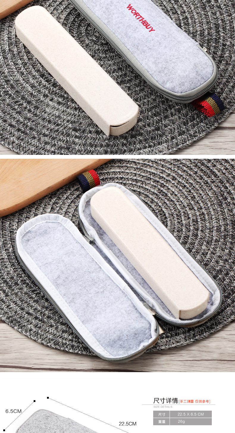 竹纤维筷子叉子勺子学生上班族便携餐具三件套收纳户外餐具套装