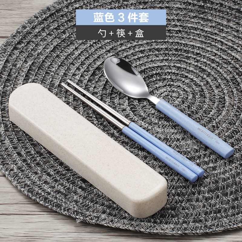 不锈钢便携可爱筷子勺子叉子套装上班族学生摩登餐具三件套一人用