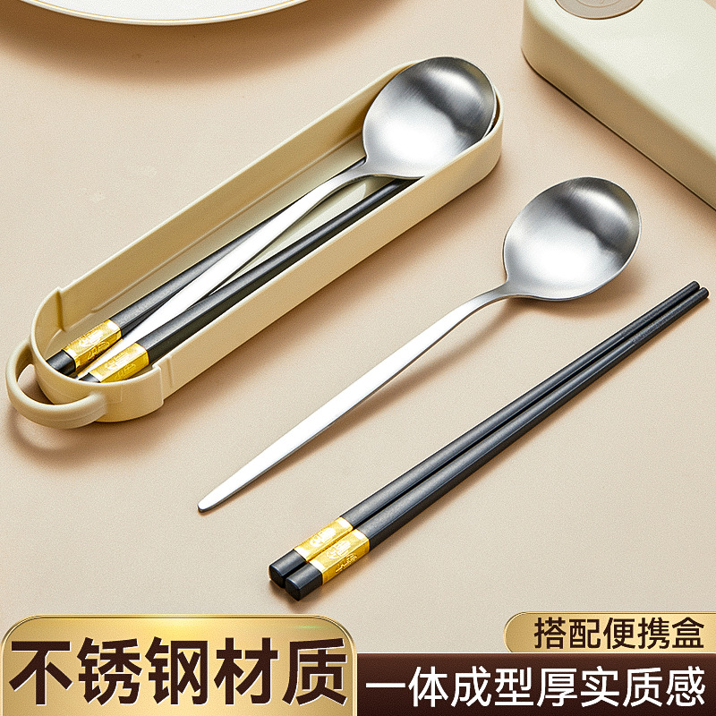不锈钢筷子勺子套装学生便携餐具三件套户外旅行勺子叉子餐具盒