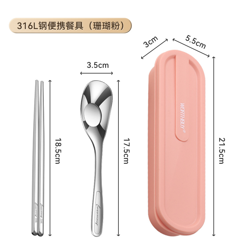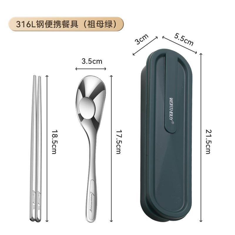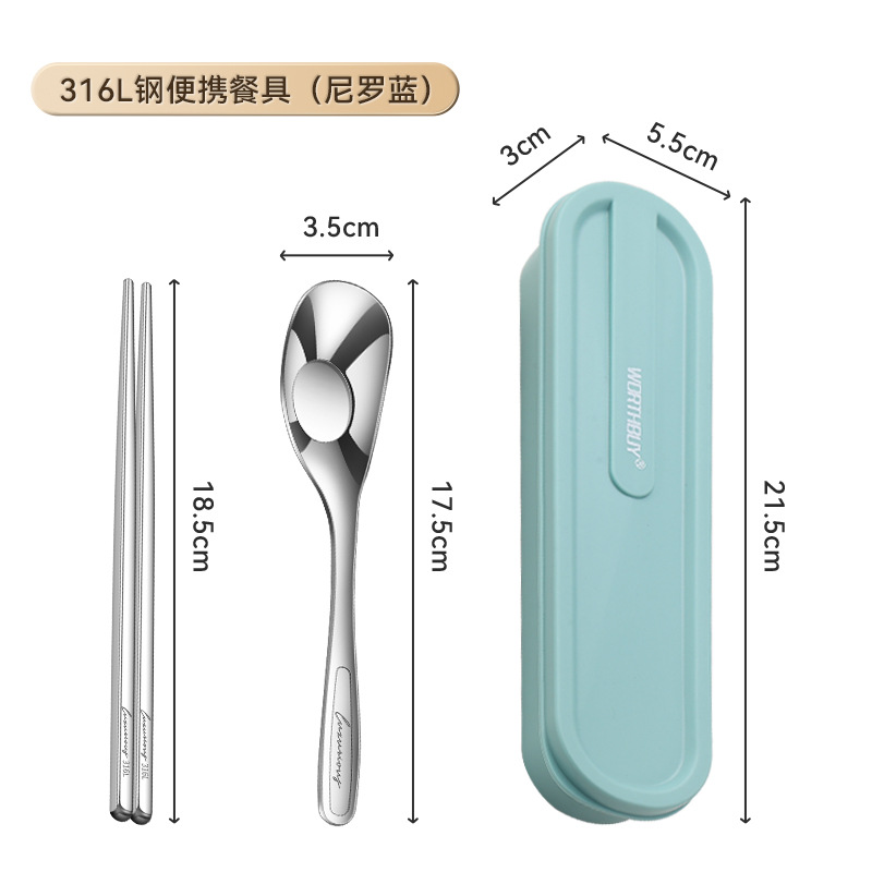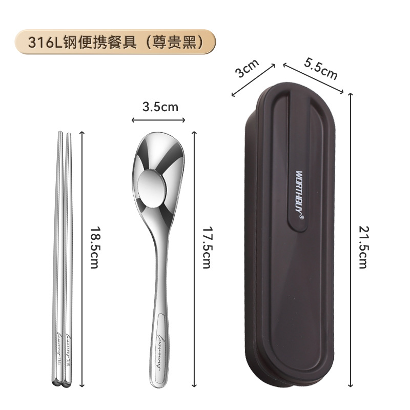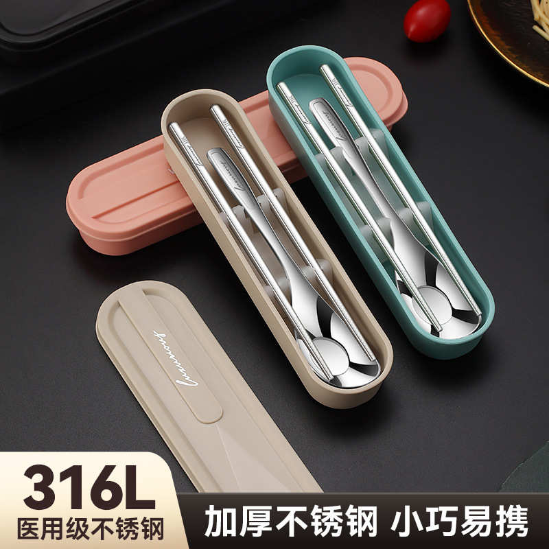 上班族便携餐具套装316不锈钢勺子筷子吃饭元宝勺平底勺收纳盒子