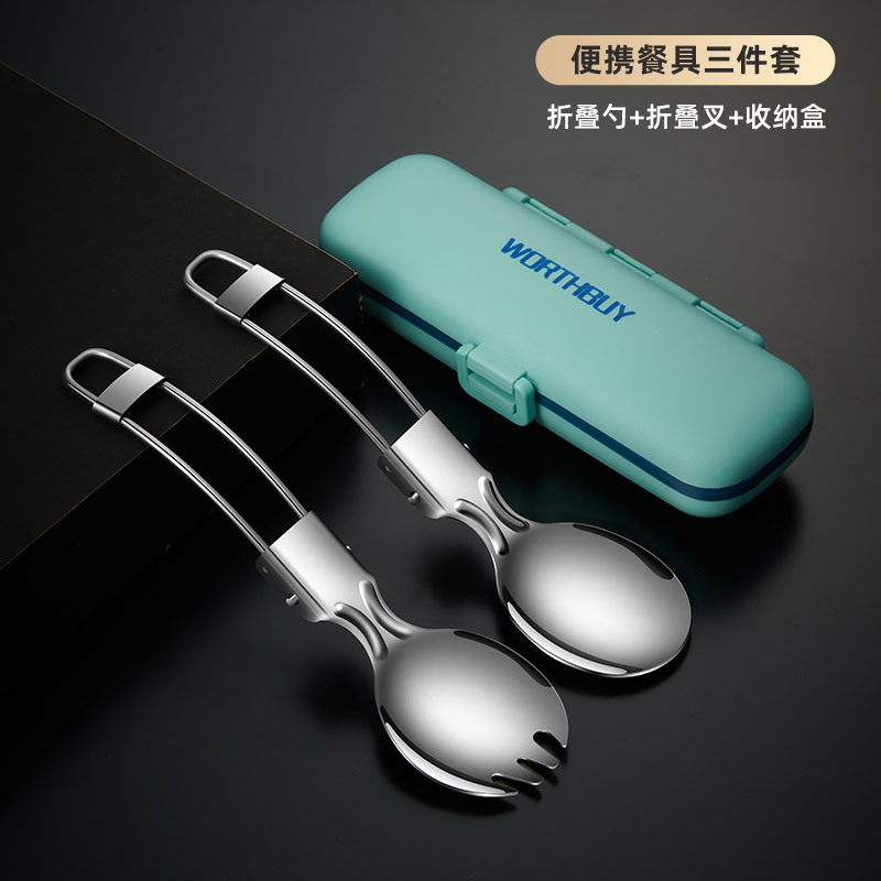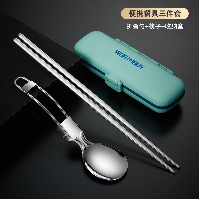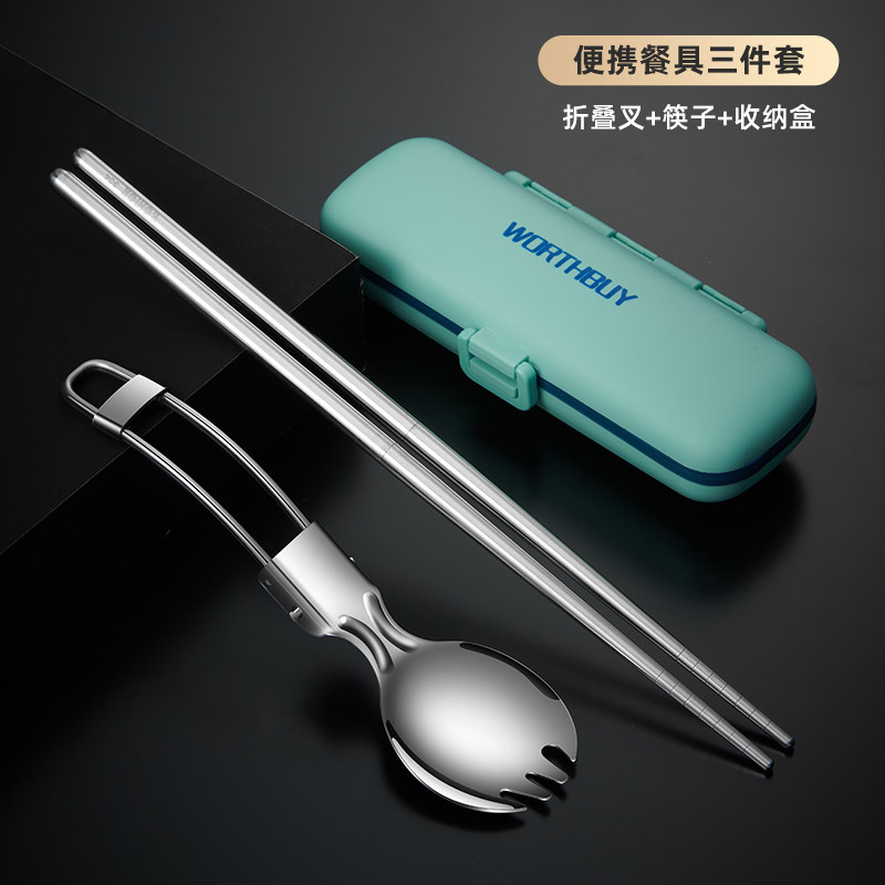 不锈钢筷子勺子套装学生便携餐具三件套户外旅行勺子叉子餐具盒