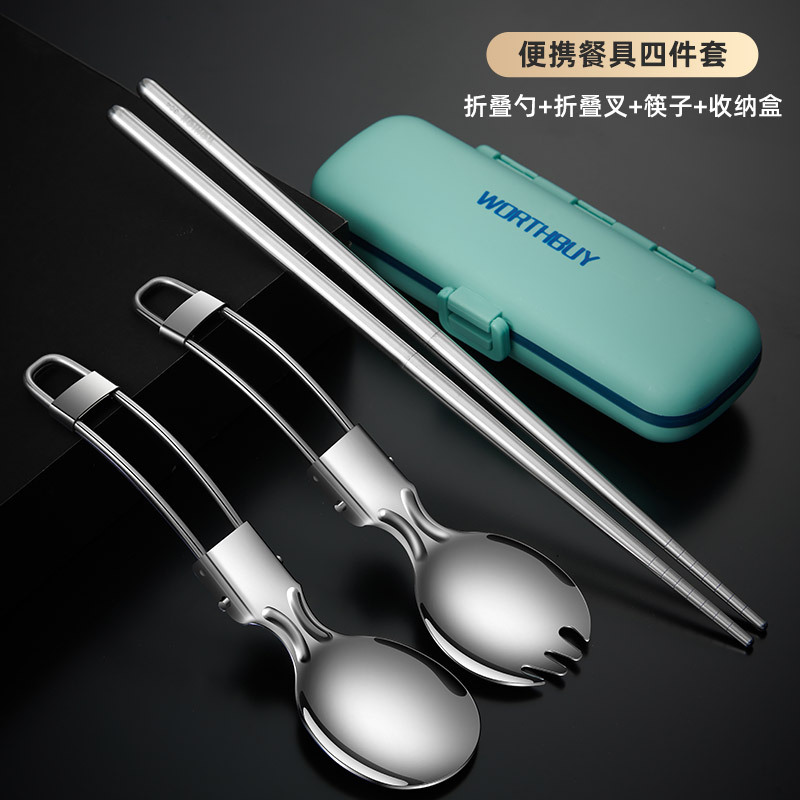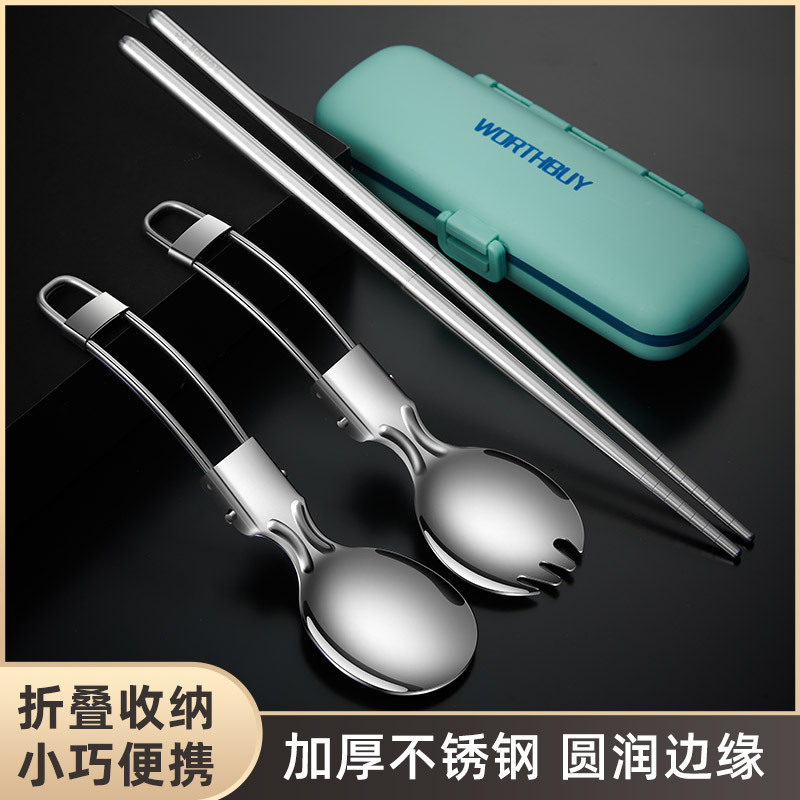 304不锈钢勺子合金筷子抽拉式餐具盒学生外带便携勺筷餐具套装