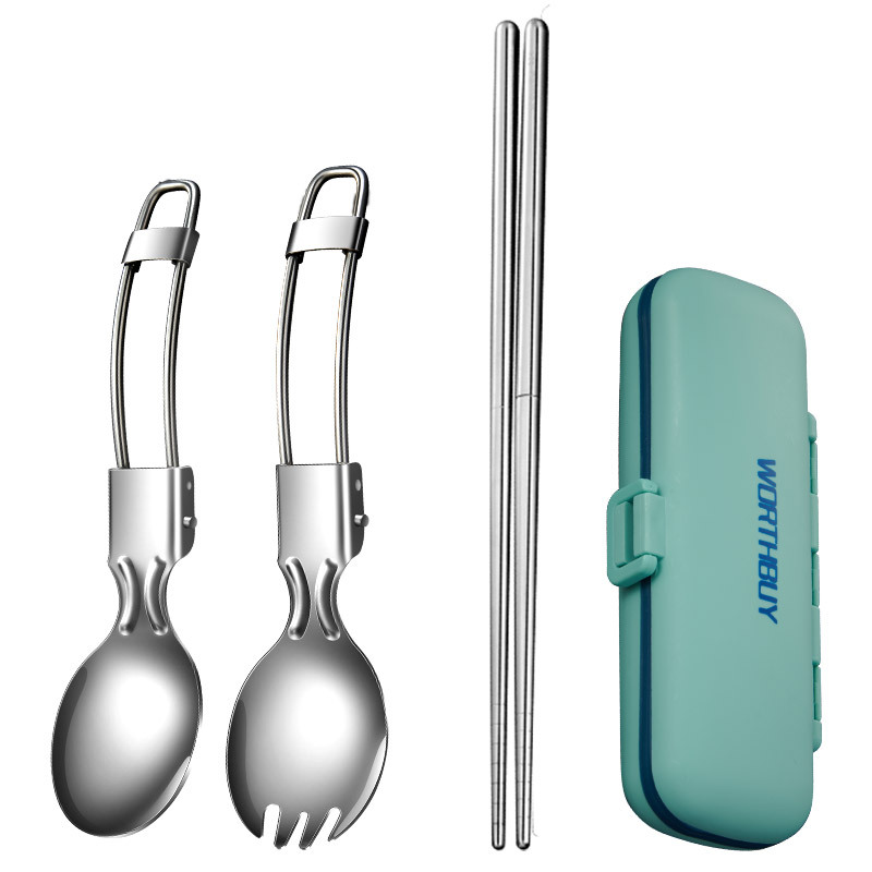 316不锈钢勺子筷子便携餐具套装学生户外野餐平底勺汤勺收纳套装