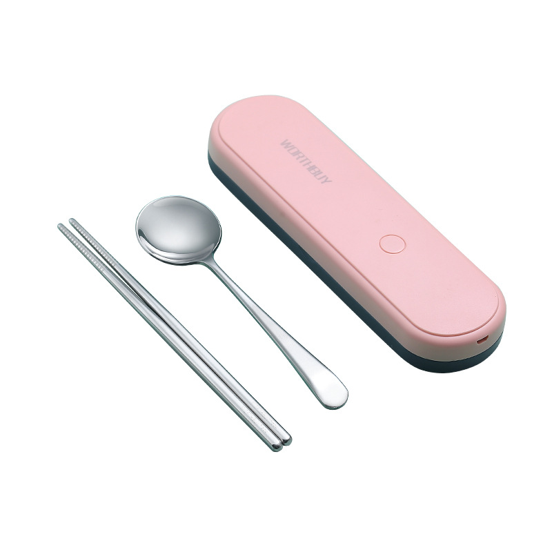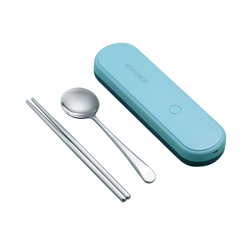 旅行便携餐具消毒盒套装智能紫外线杀菌316不锈钢勺子筷子消毒器