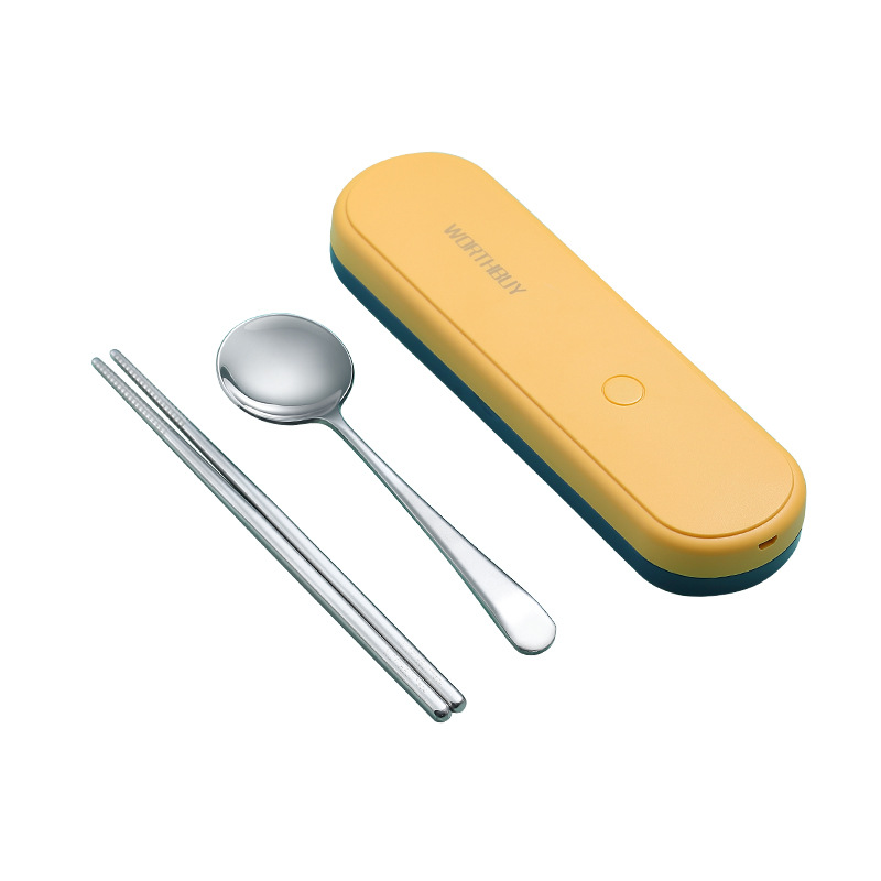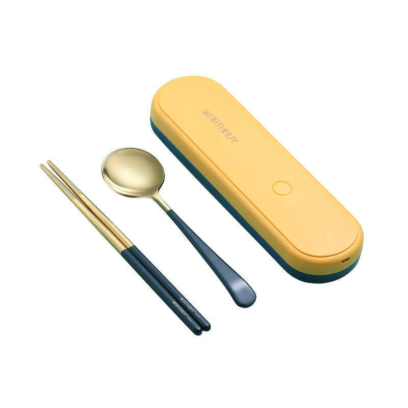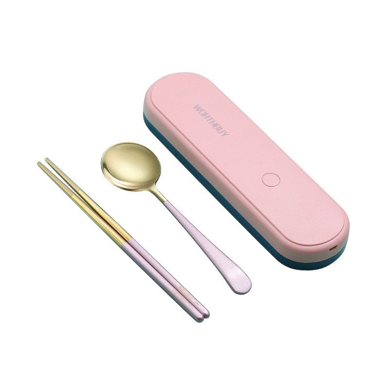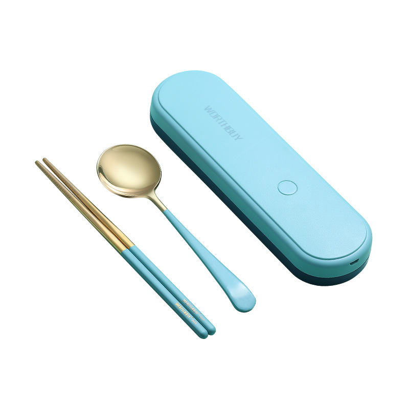 抖音304不锈钢便携餐具紫外线消毒餐具盒葡萄牙勺子筷子套装礼品
