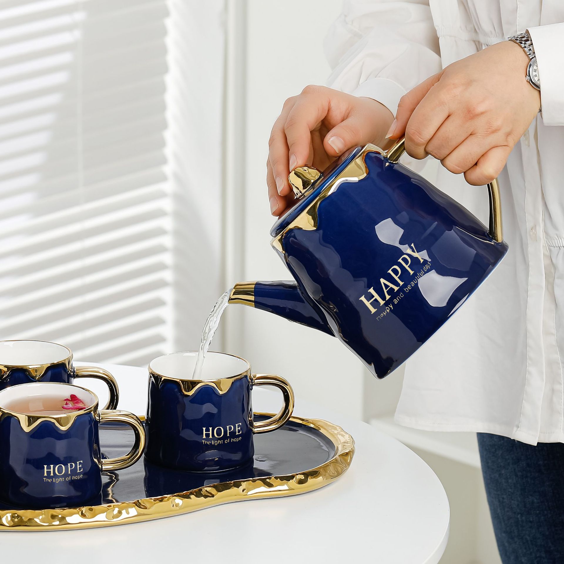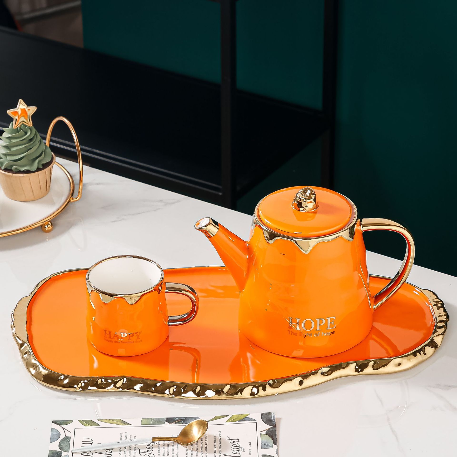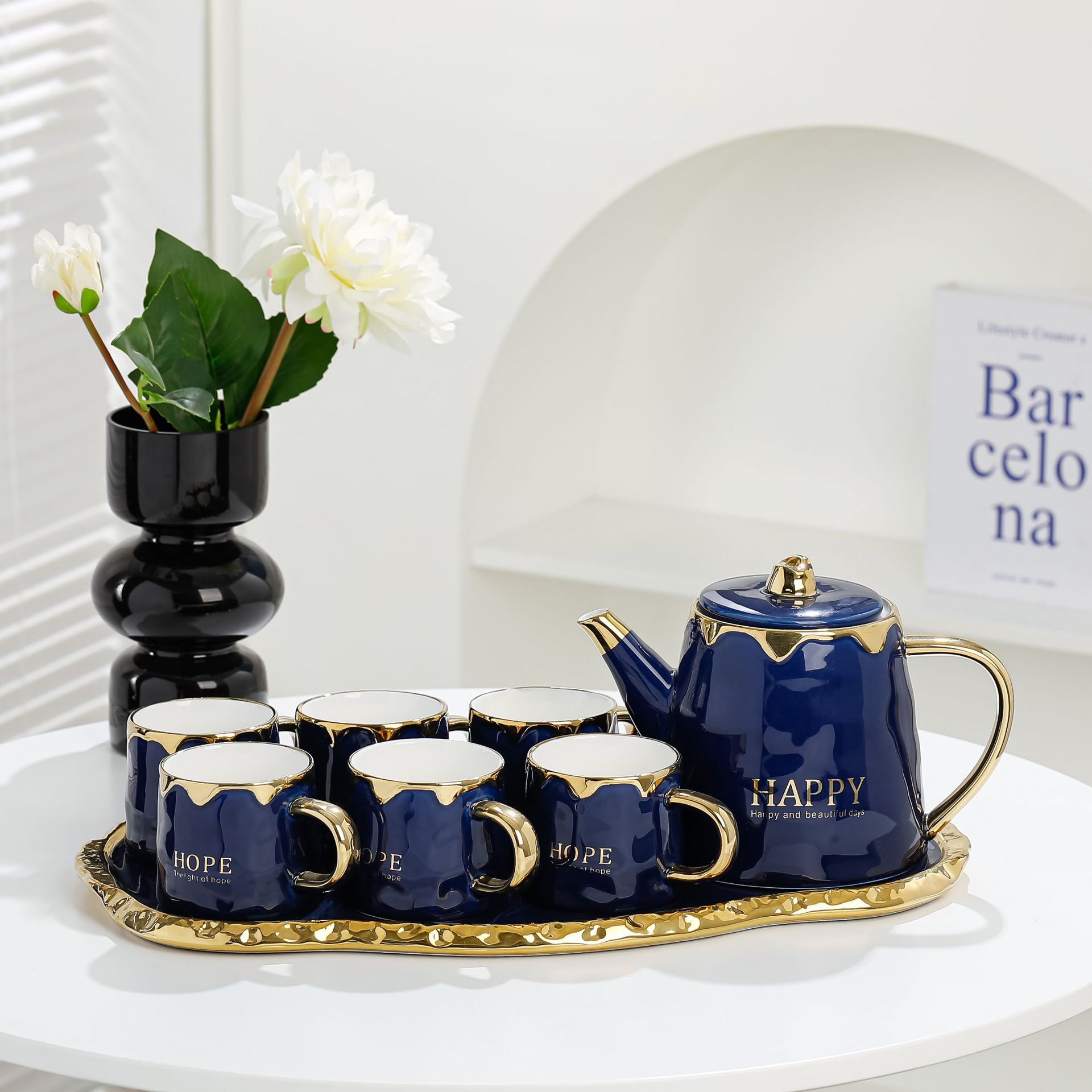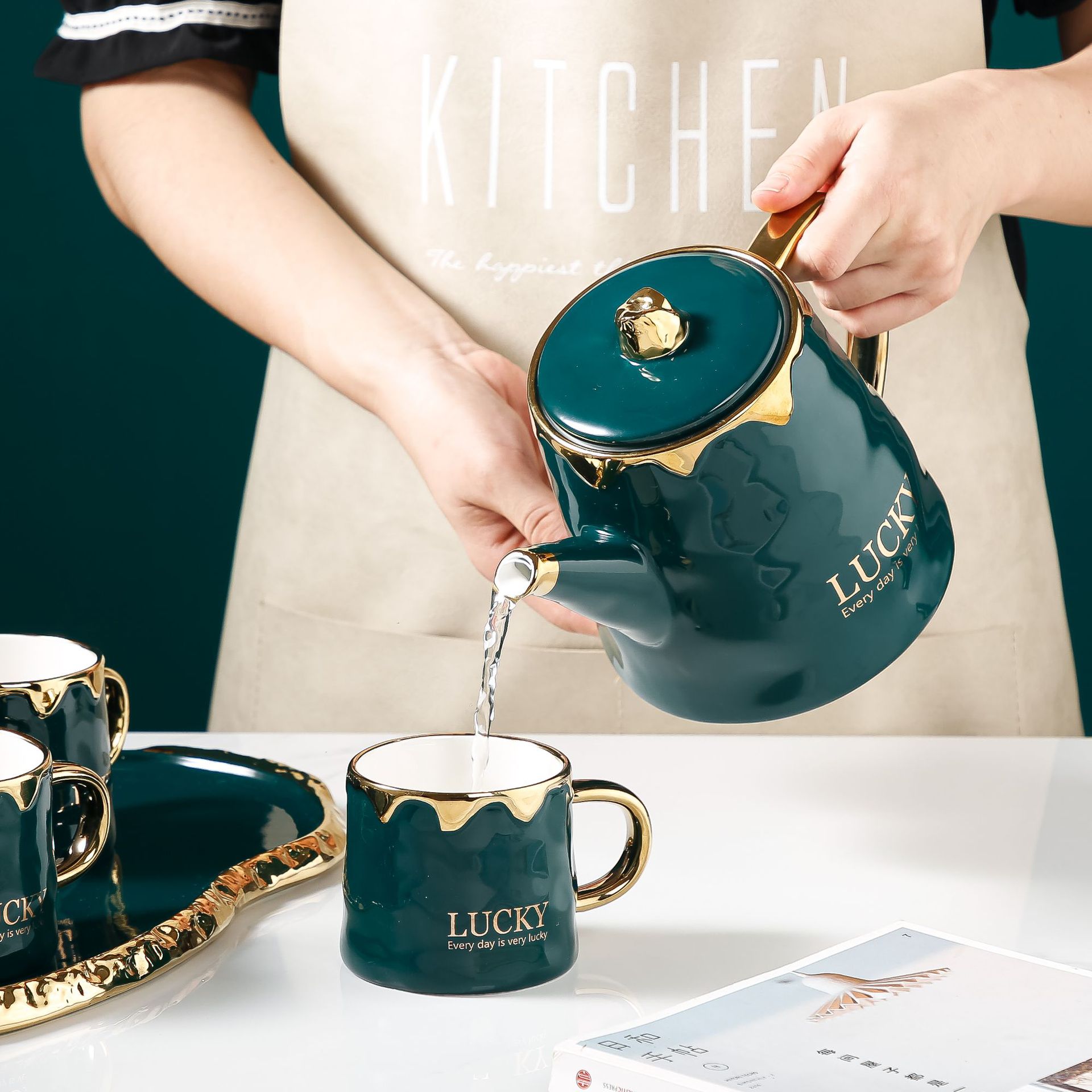 大象水具套装陶瓷泡茶具泡咖啡家用下午茶具耐高温水壶水杯带托盘
