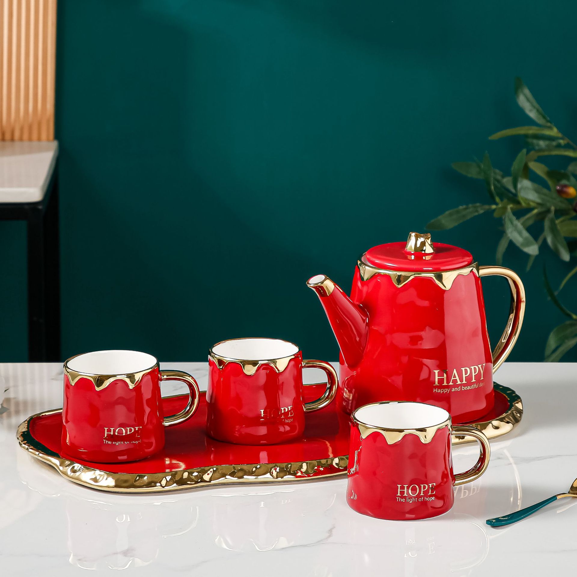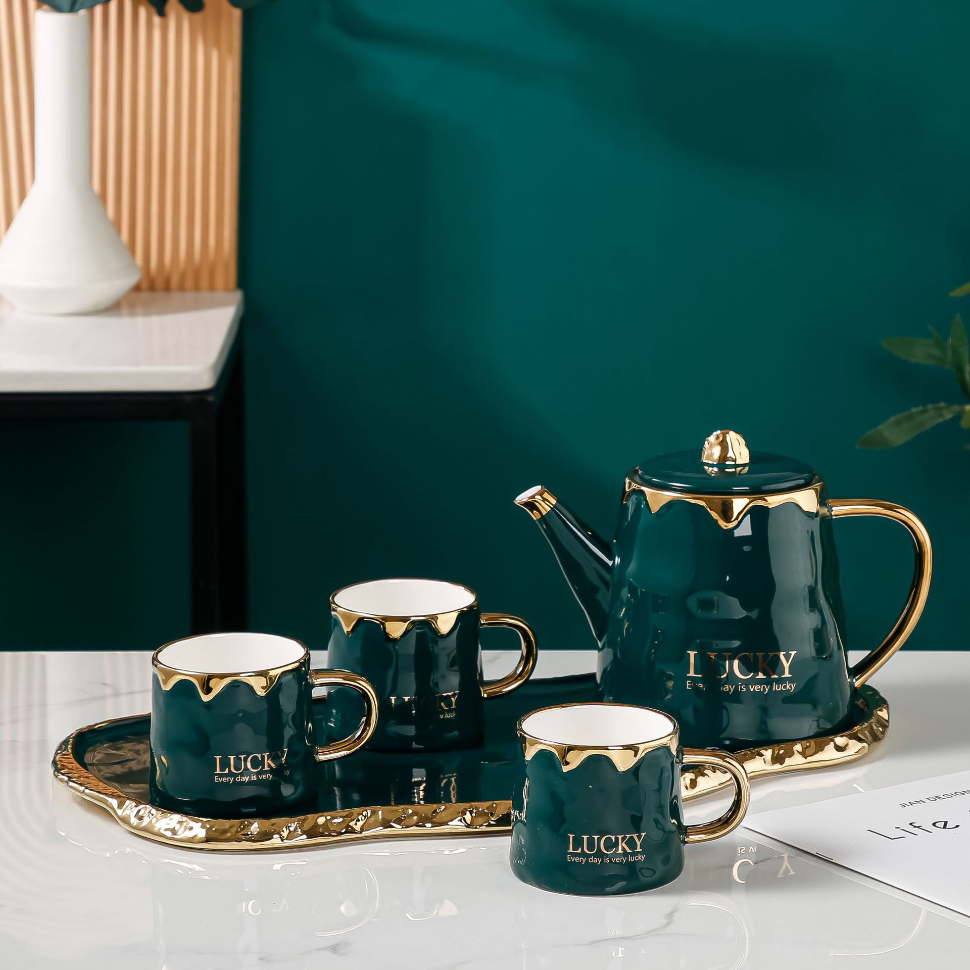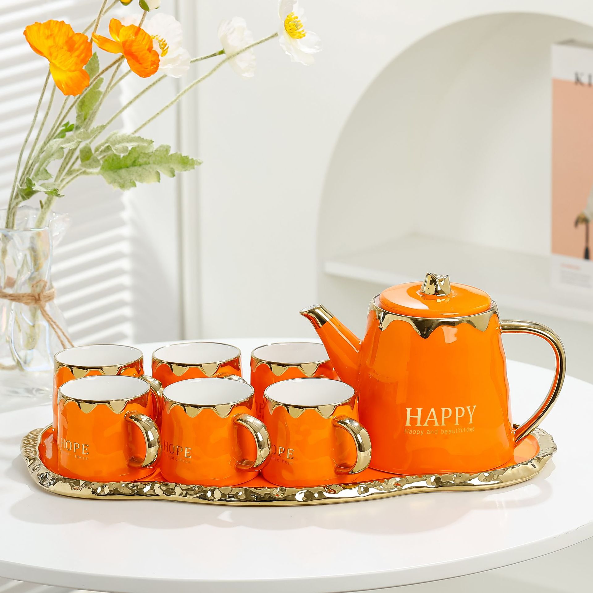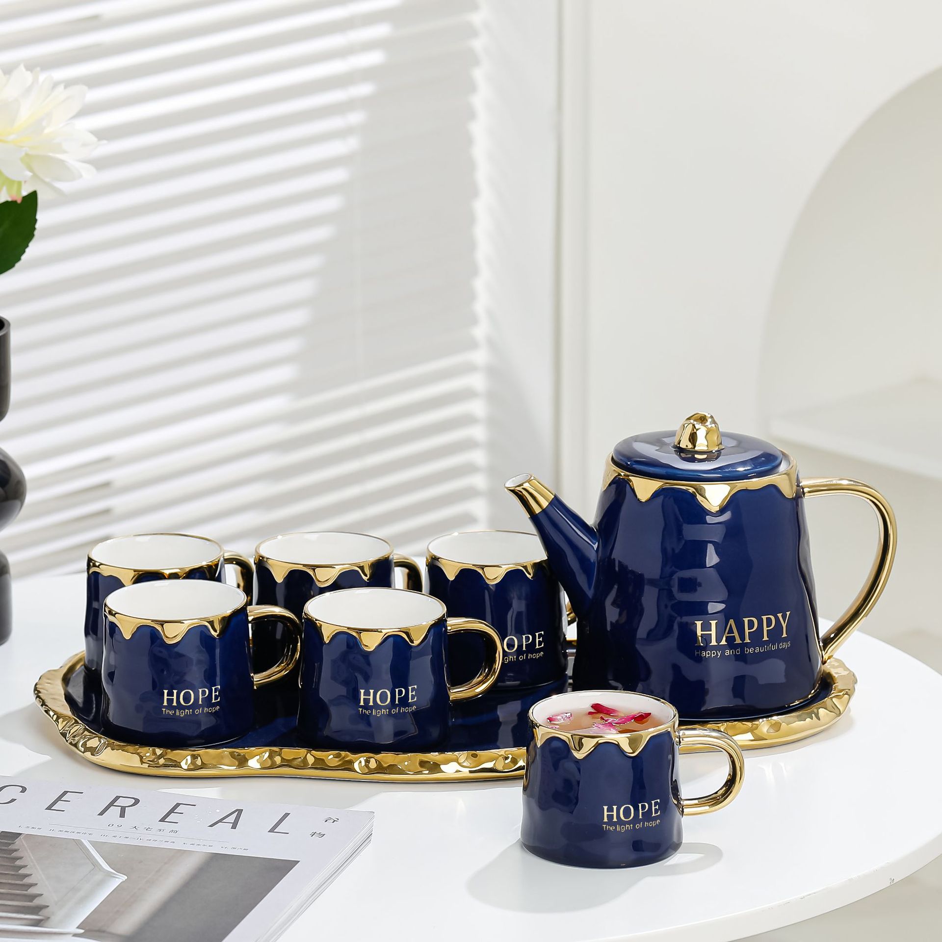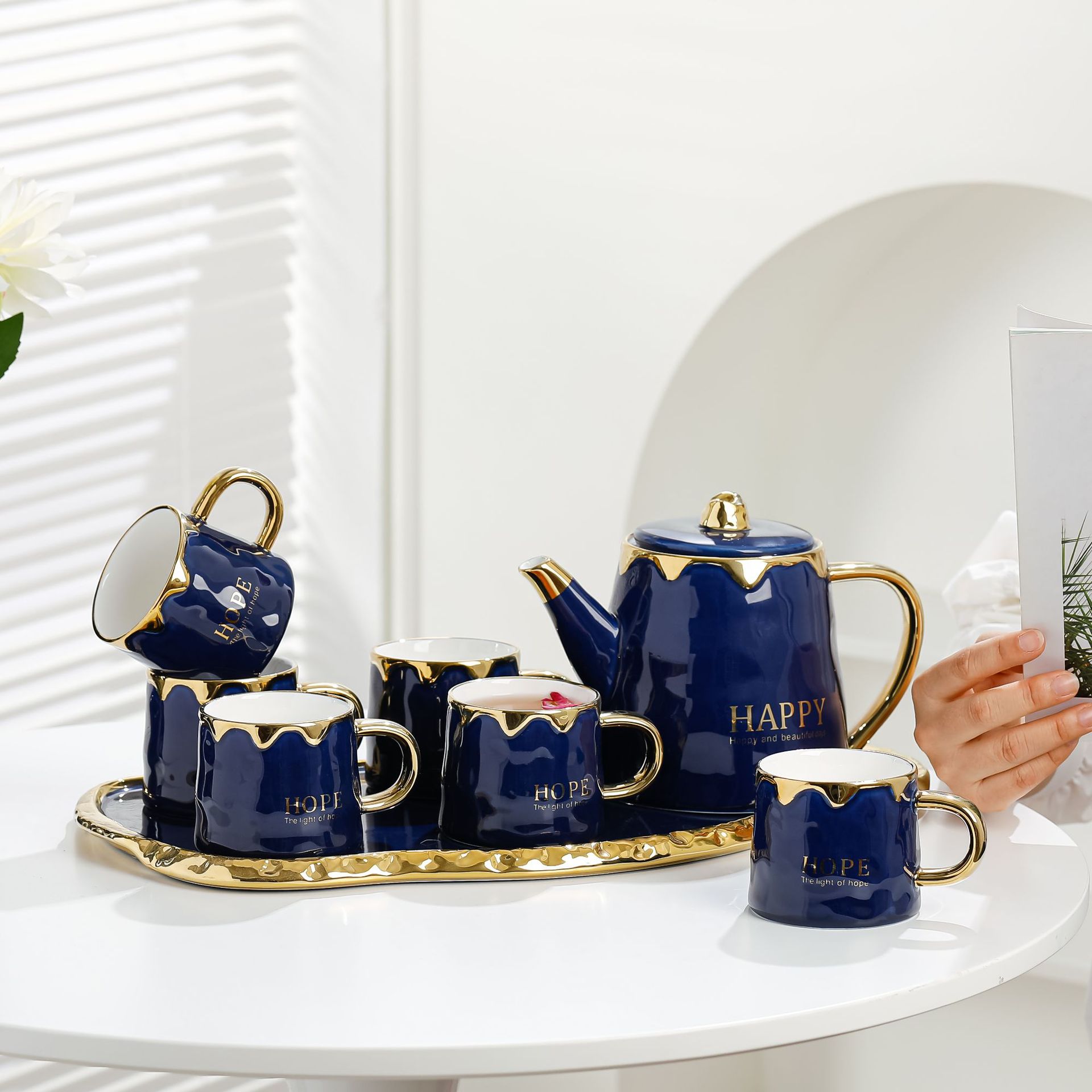 大象水具套装陶瓷泡茶具泡咖啡家用下午茶具耐高温水壶水杯带托盘