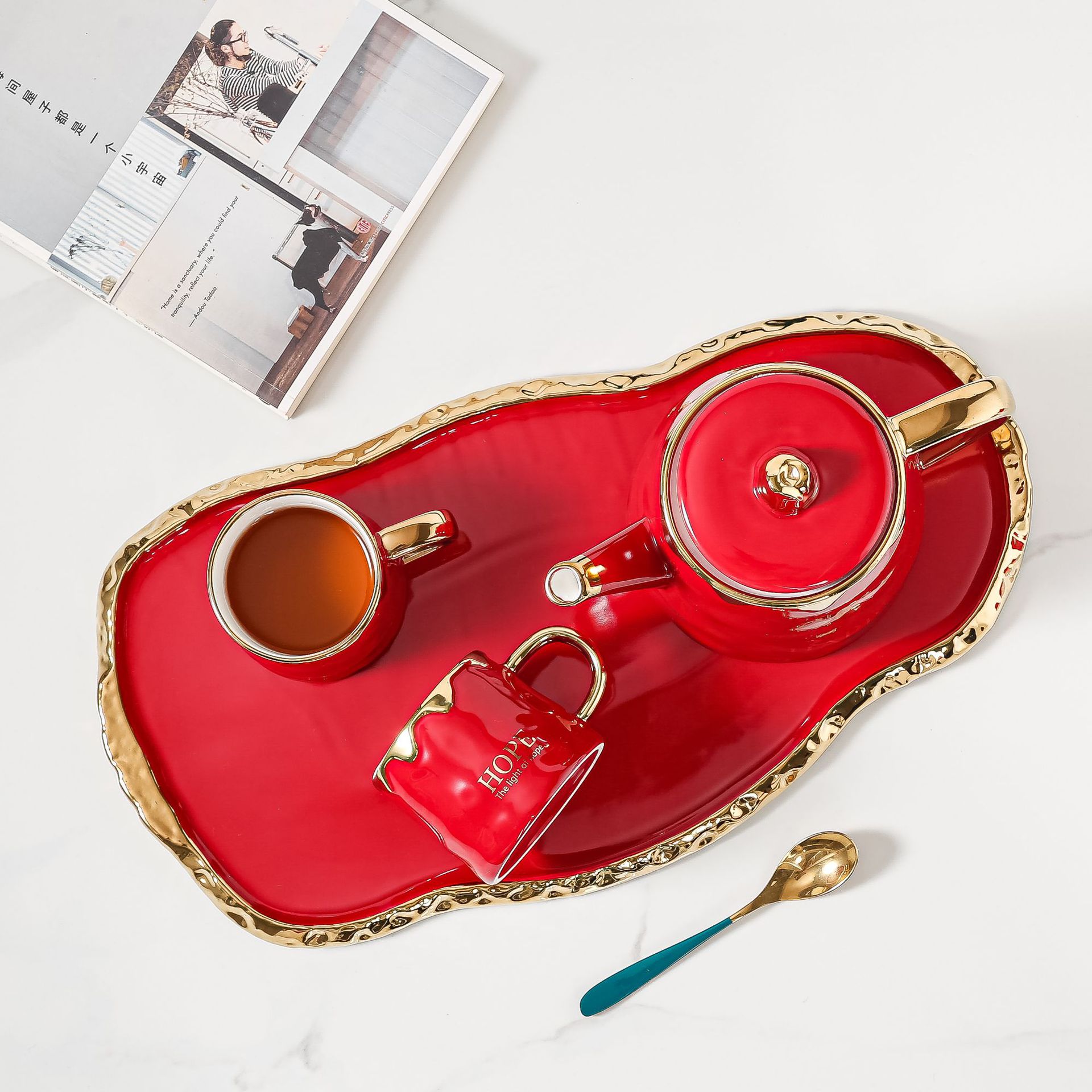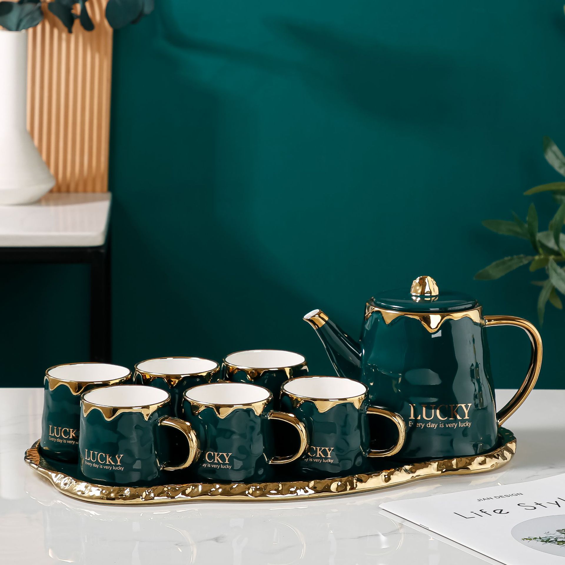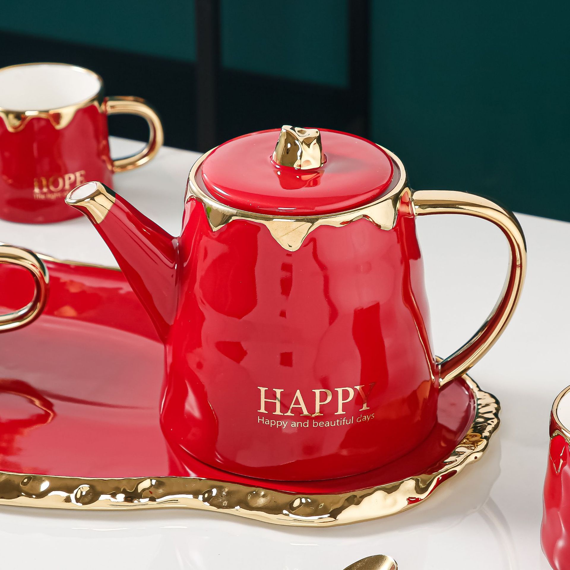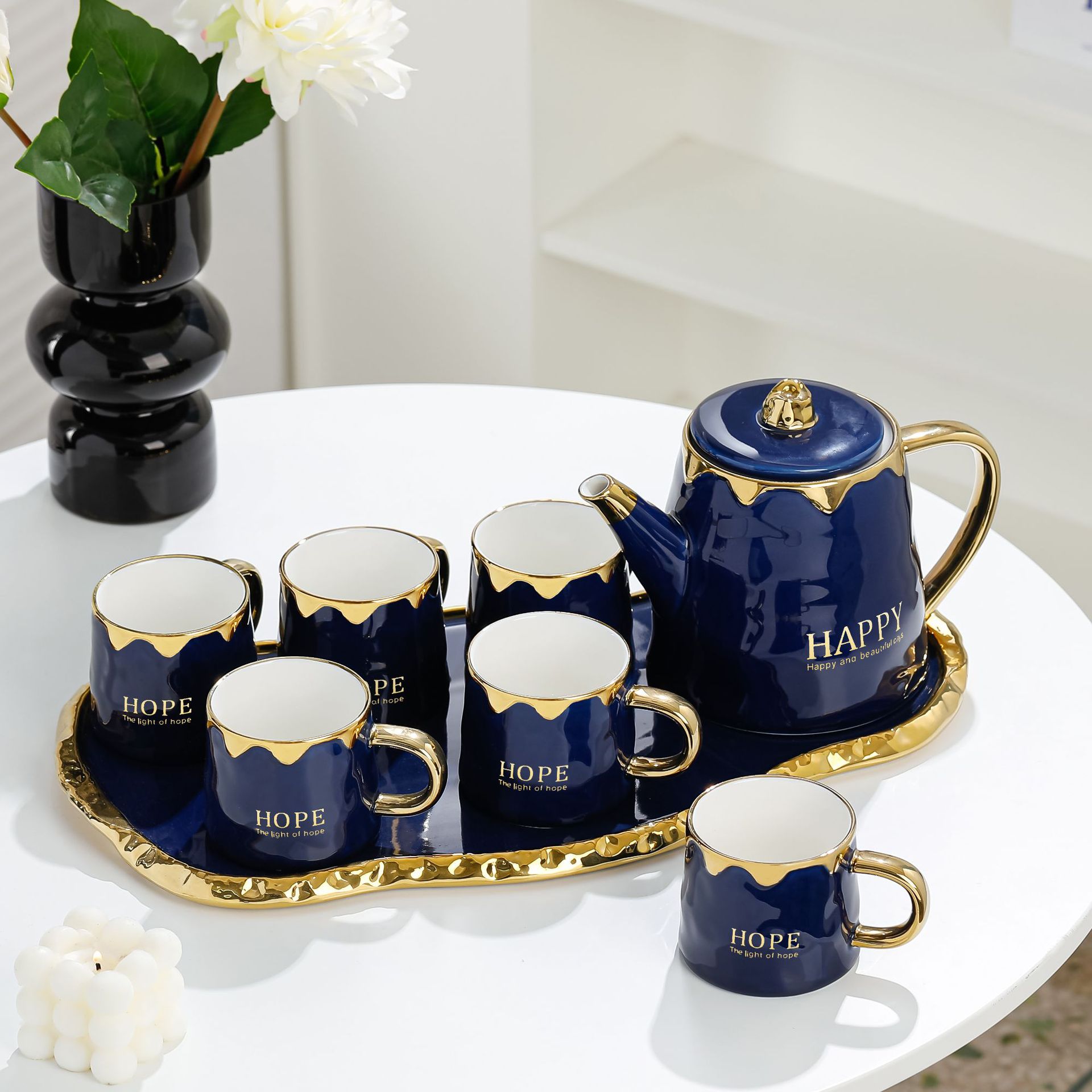 大象水具套装陶瓷泡茶具泡咖啡家用下午茶具耐高温水壶水杯带托盘