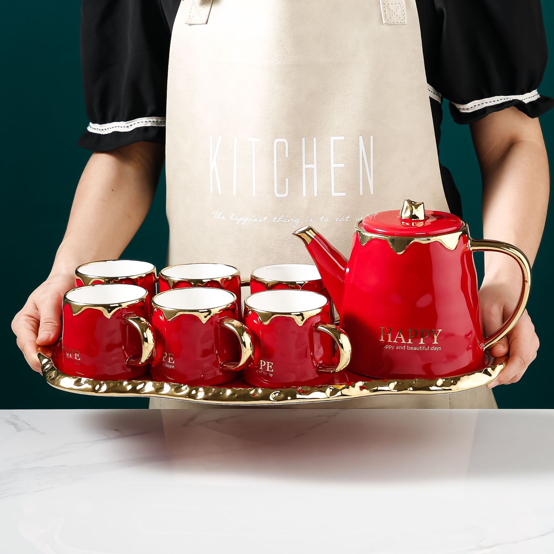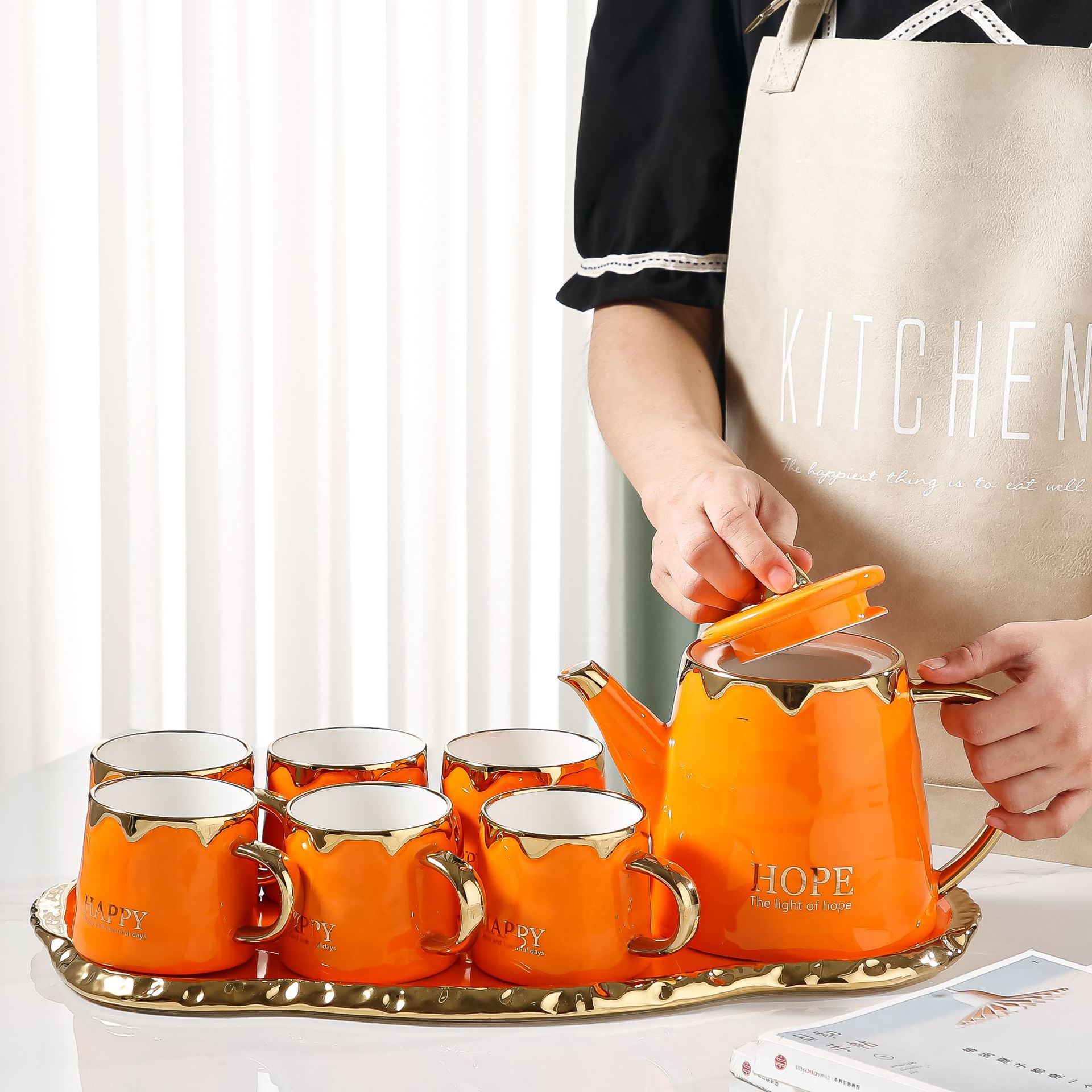 日用跨境货源陶瓷办公室酒店派对咖啡杯具6杯带水壶咖啡水具套装