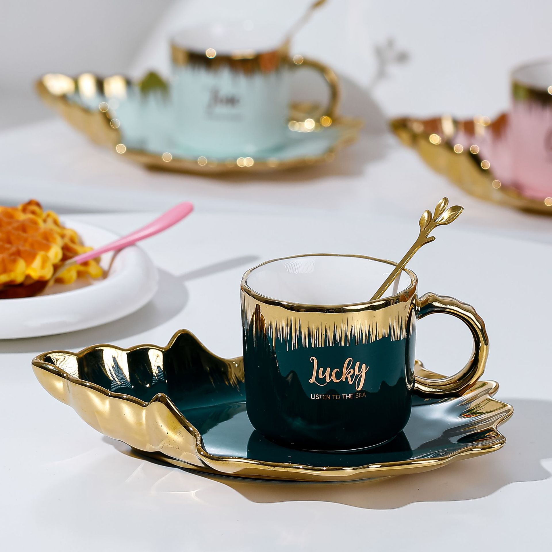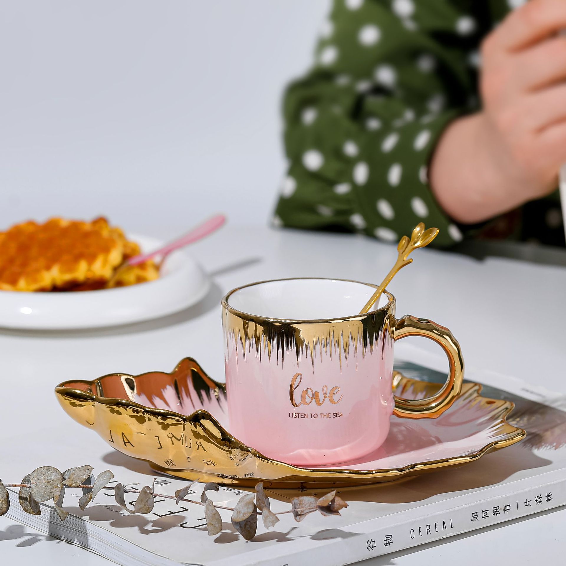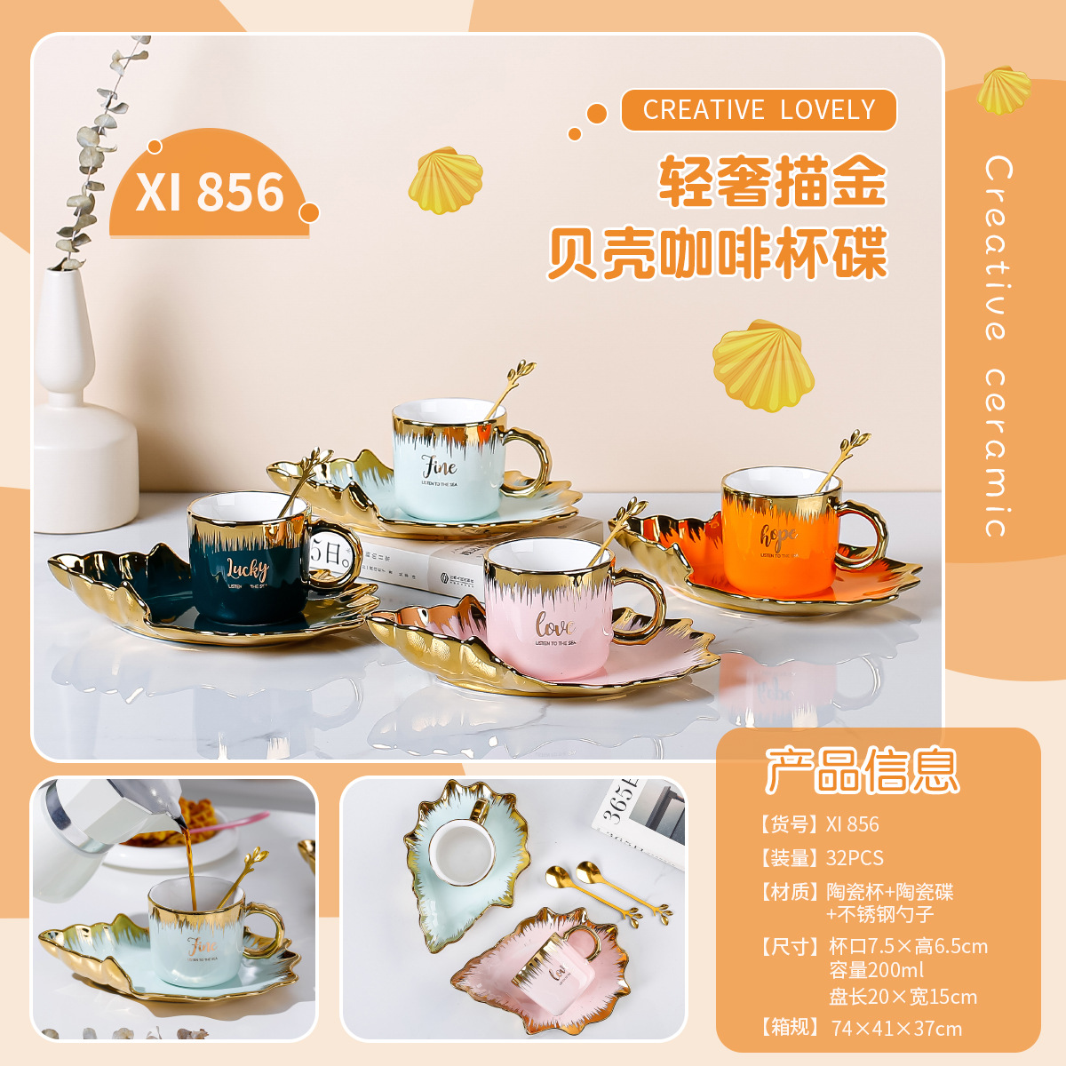 厂家直销批发创意清新陶瓷杯碟办公室咖啡杯伴手礼礼品杯百货批发