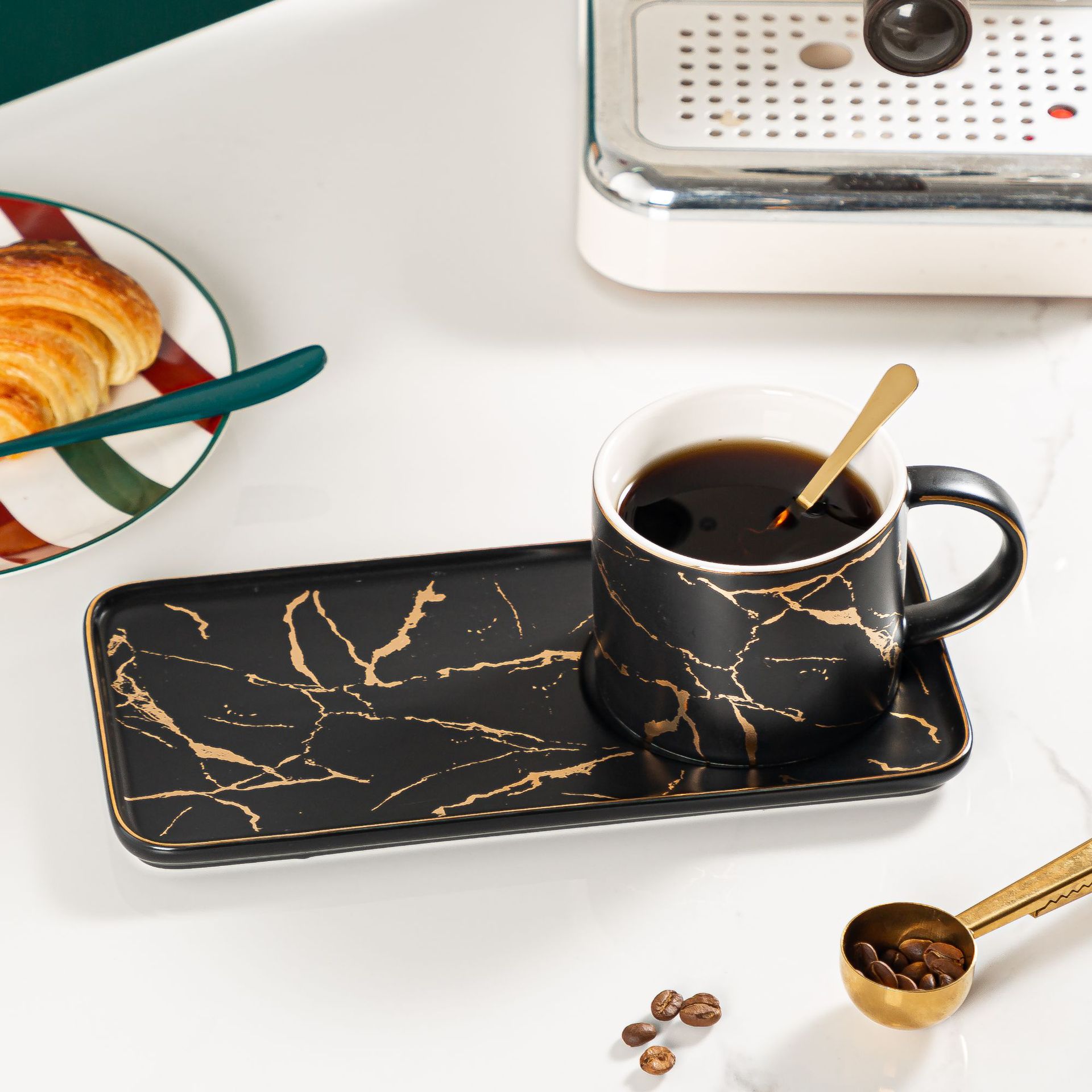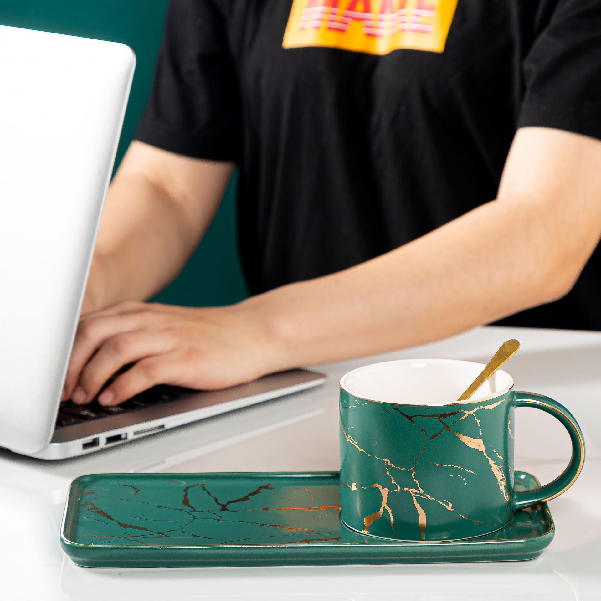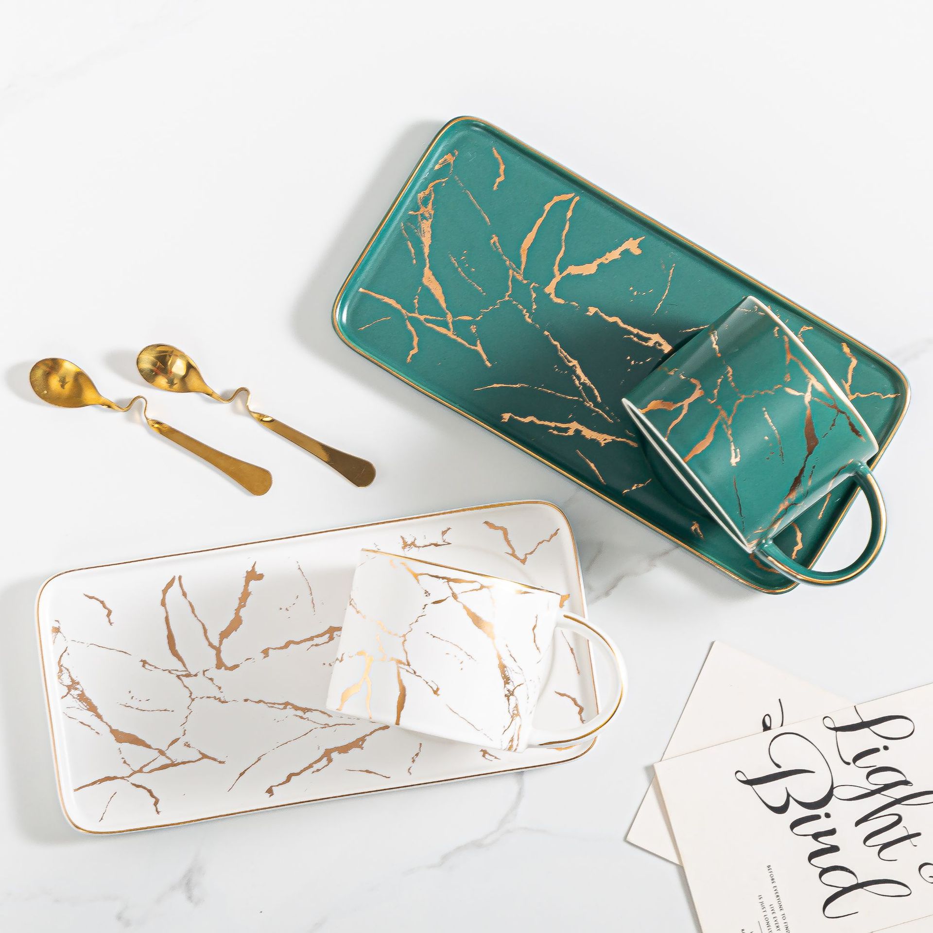 跨境陶瓷咖啡具套装墨绿描金陶瓷杯碟配金架商用礼品礼盒包装