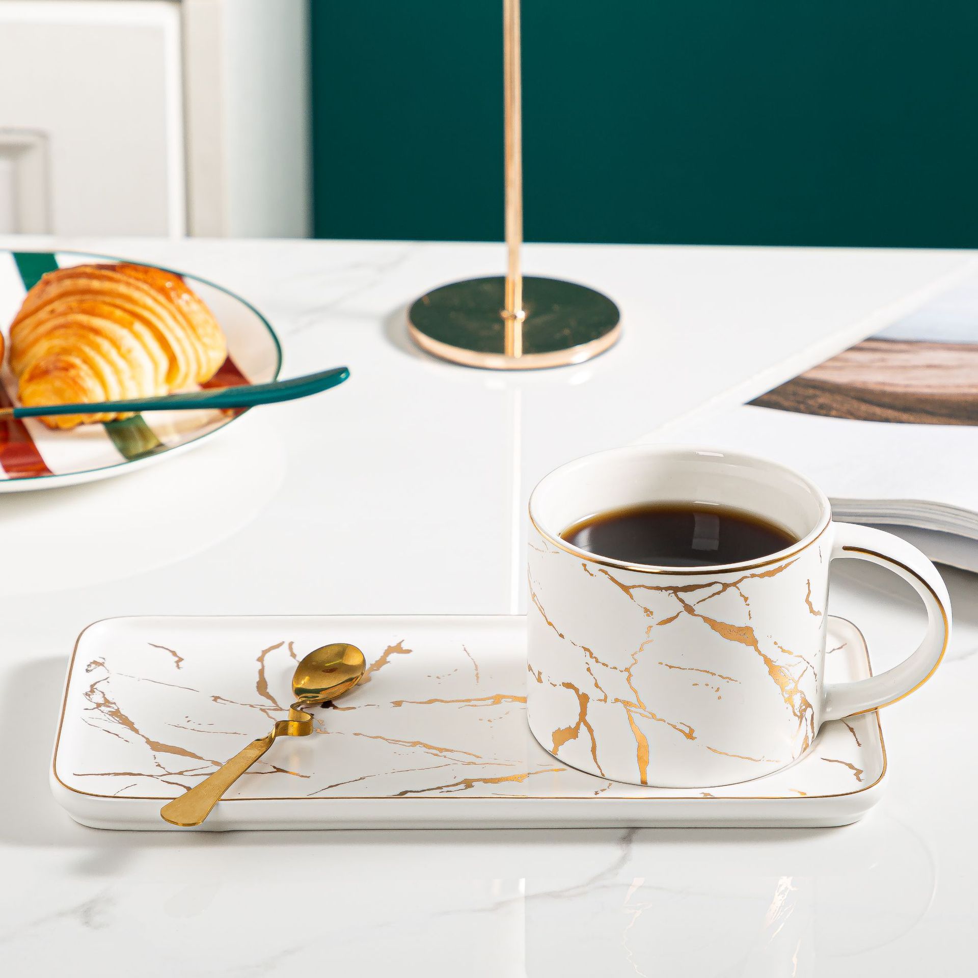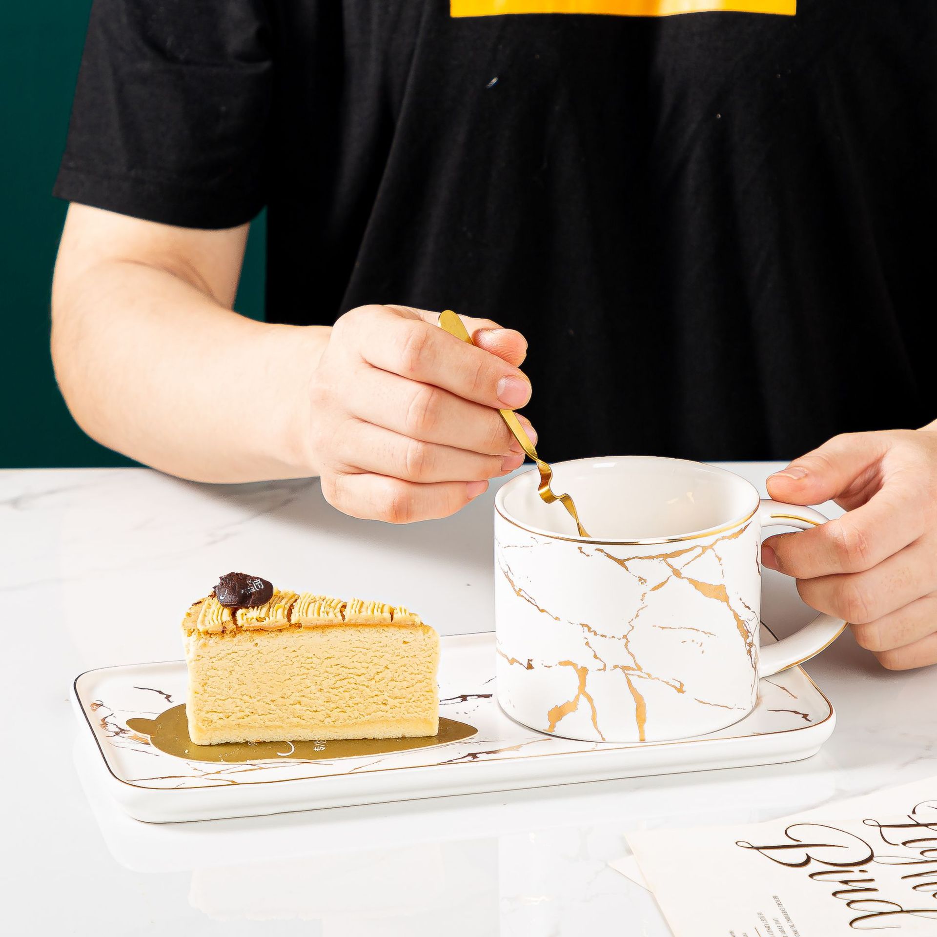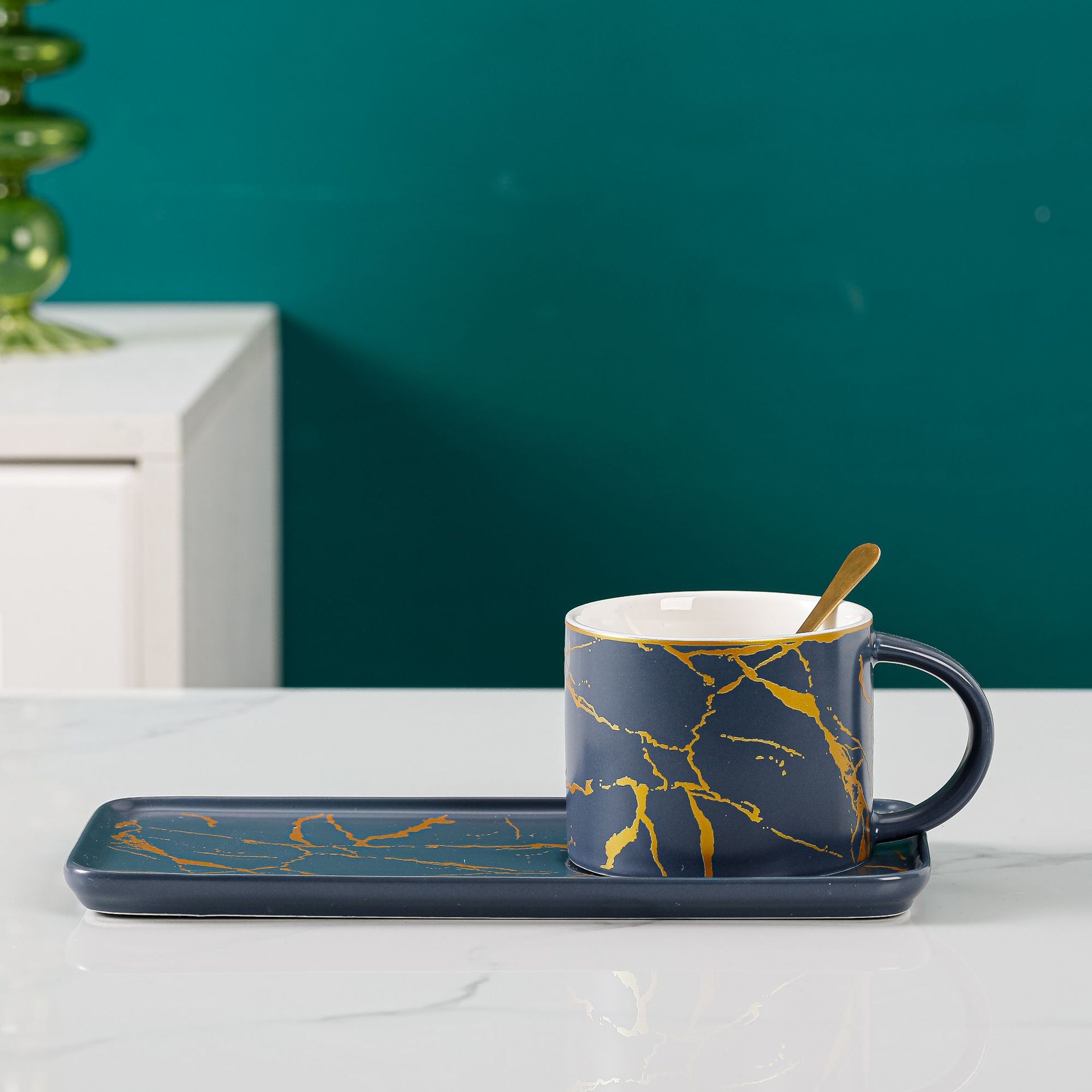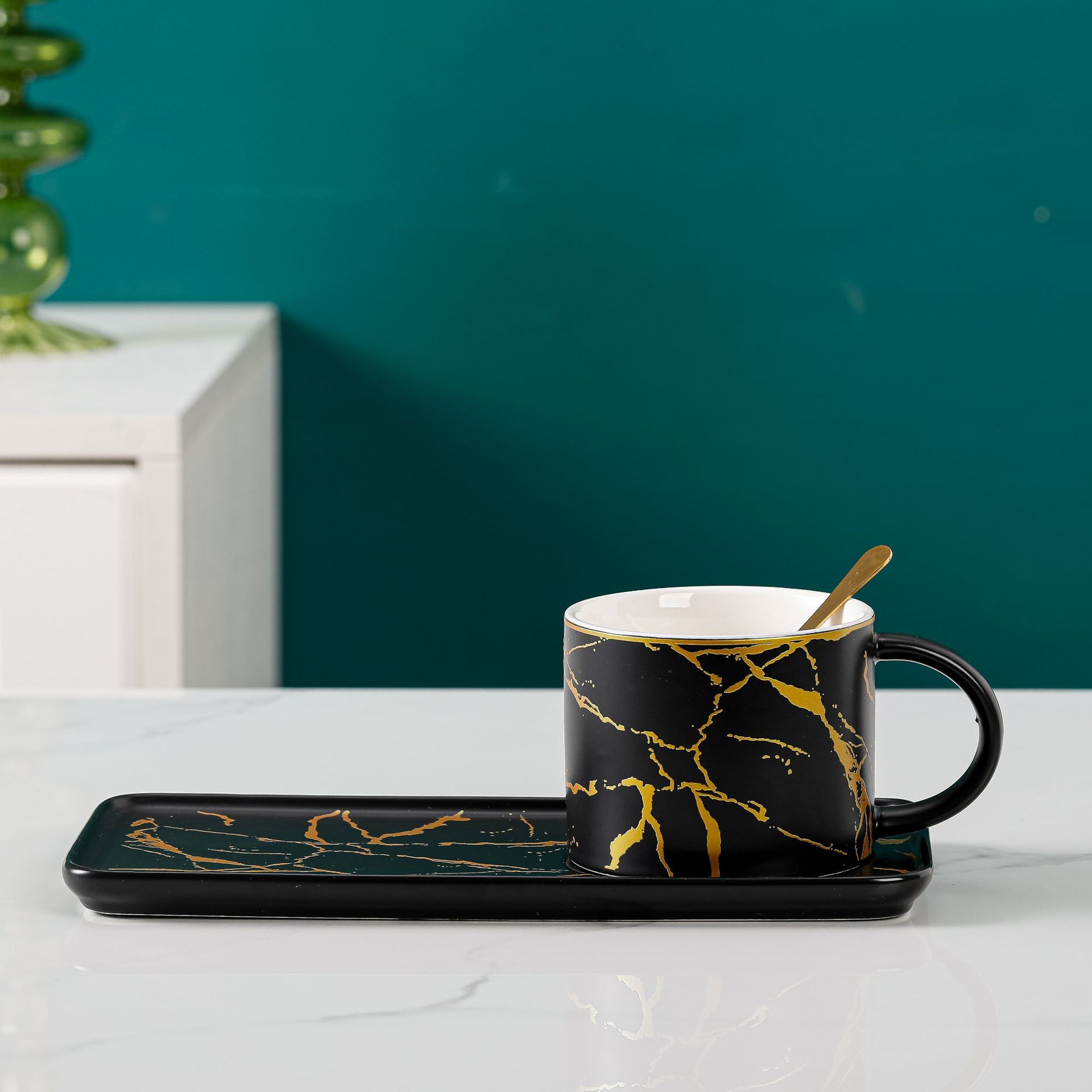 跨境陶瓷咖啡具套装墨绿描金陶瓷杯碟配金架商用礼品礼盒包装