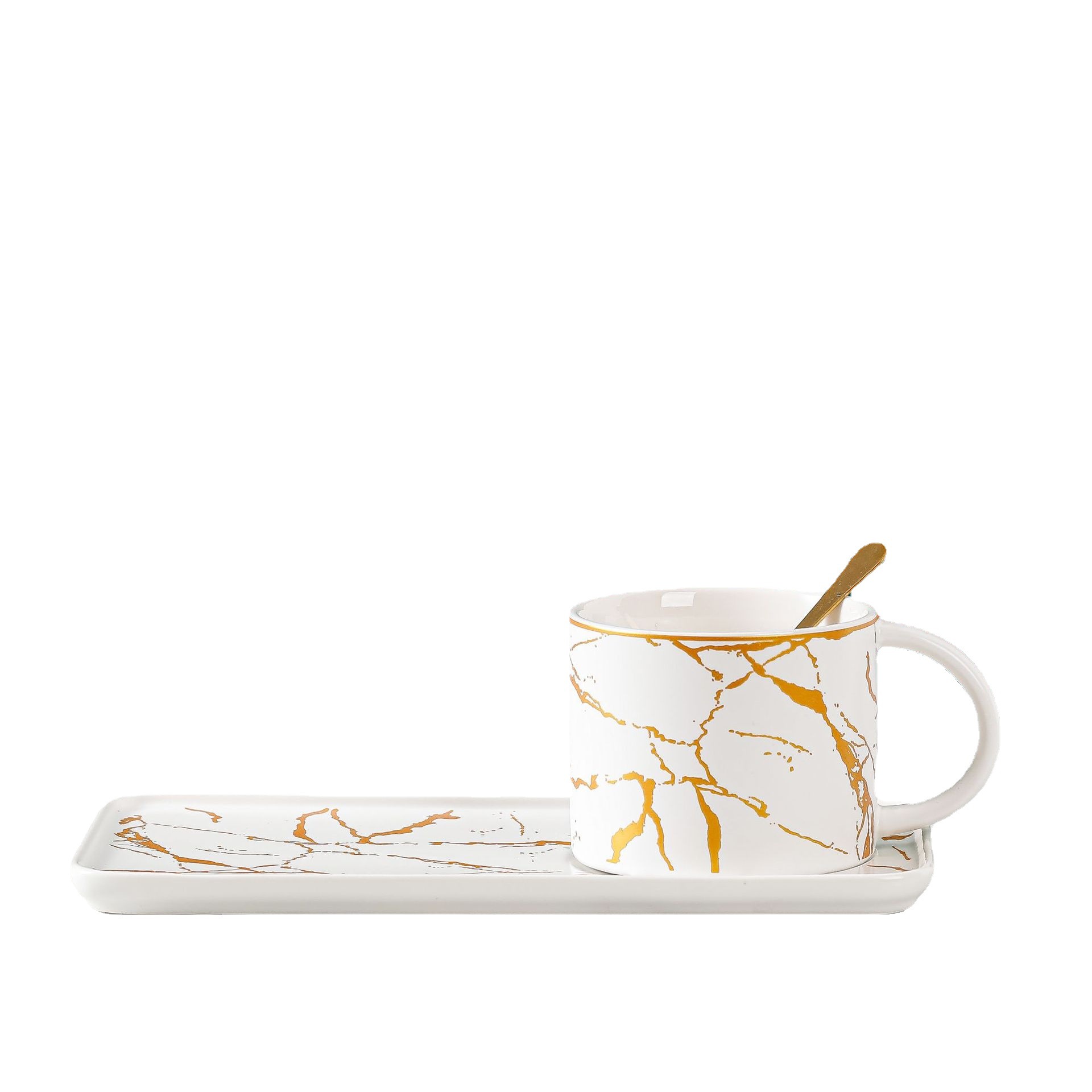 ins轻奢描金马克杯色釉棱形陶瓷杯颜值超高一杯多用礼品批发logo