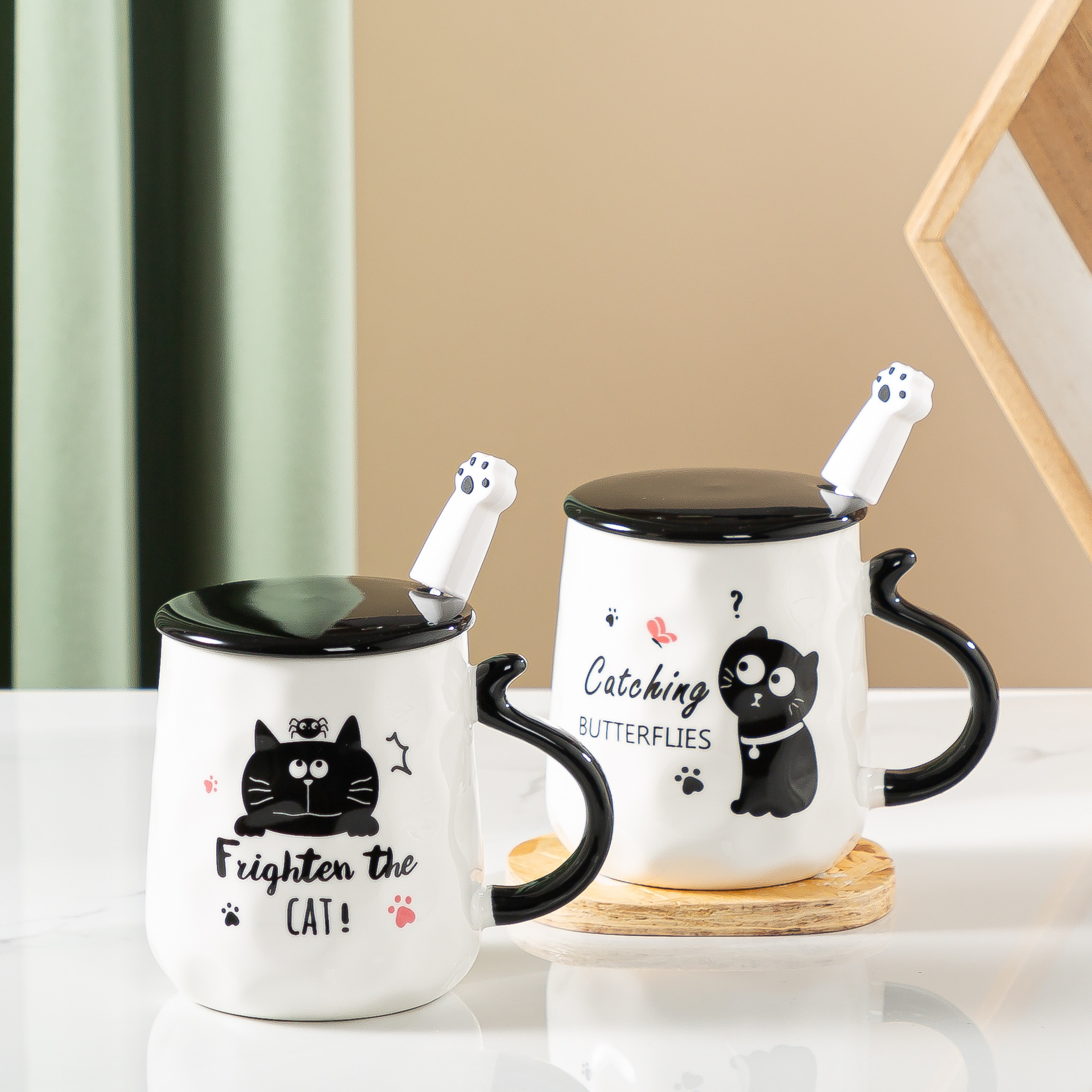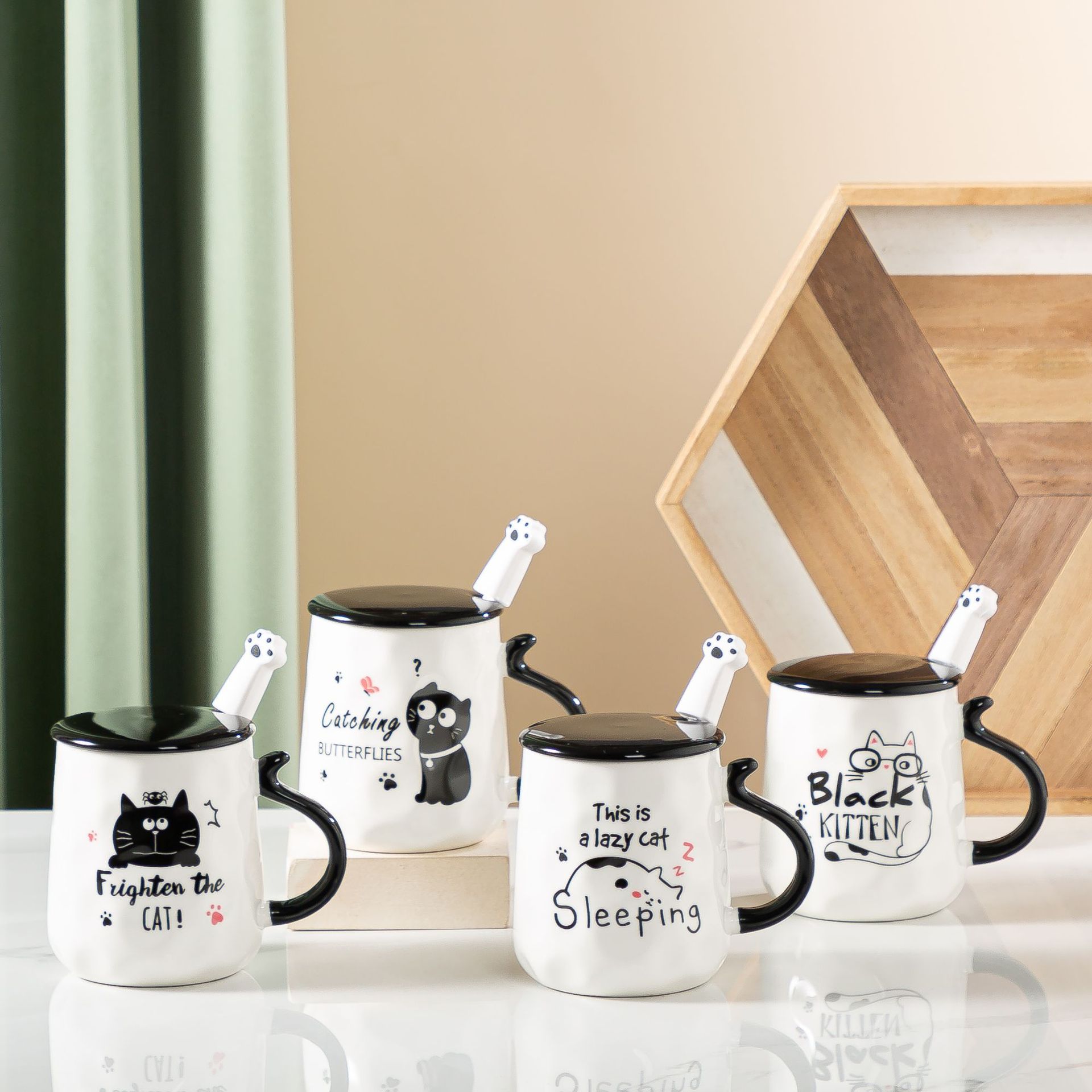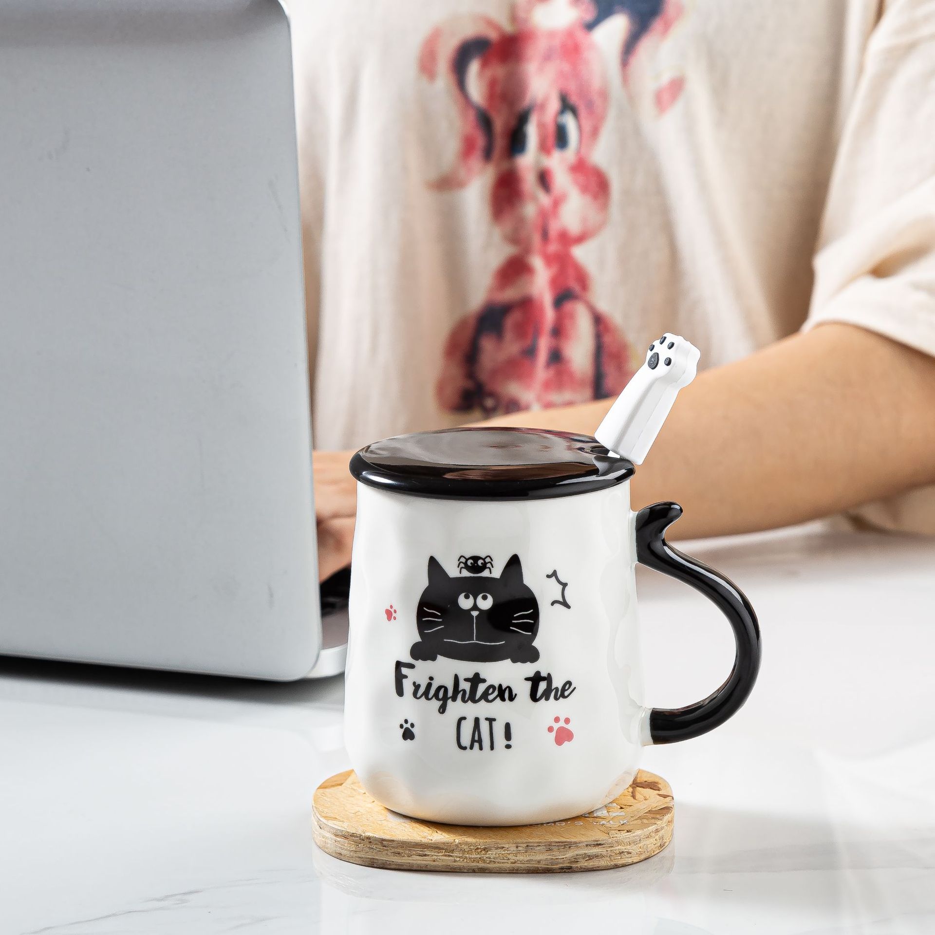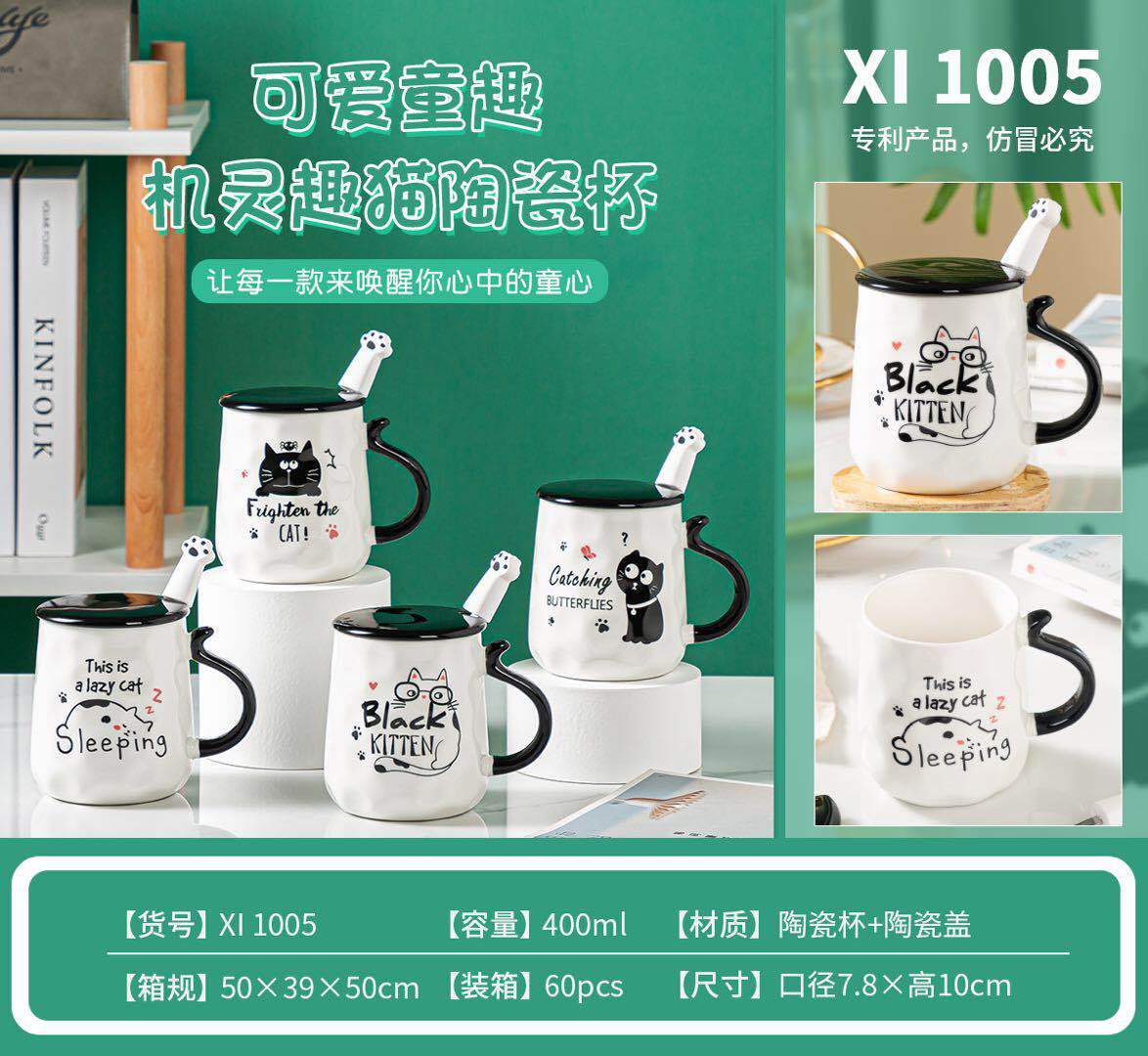 可爱卡通马克杯ins创意陶瓷杯带盖不锈钢吸管家用伴手礼水杯礼品