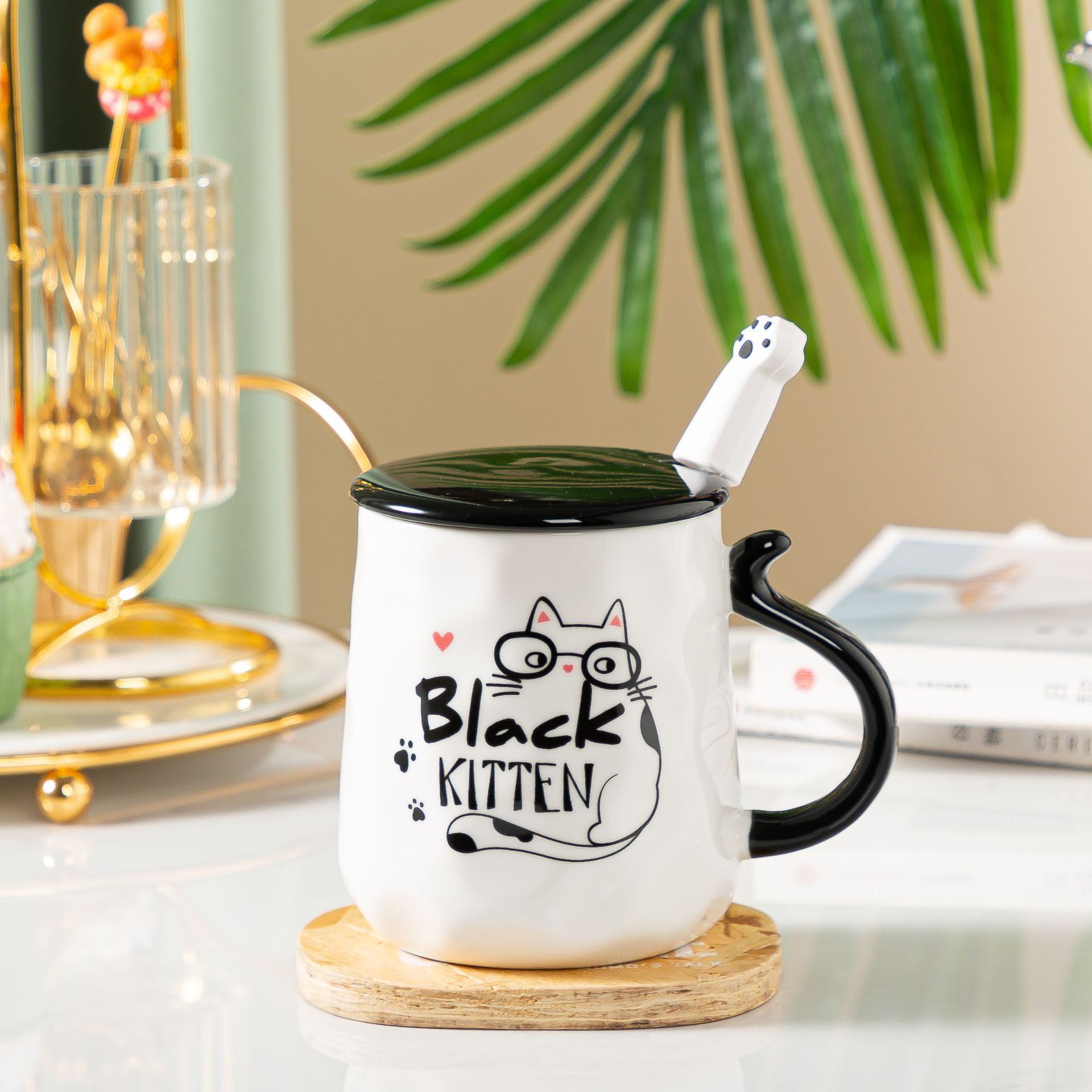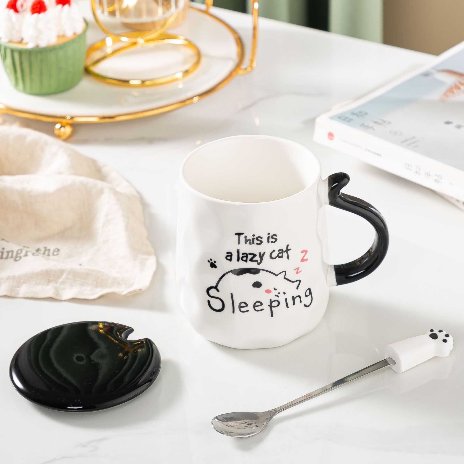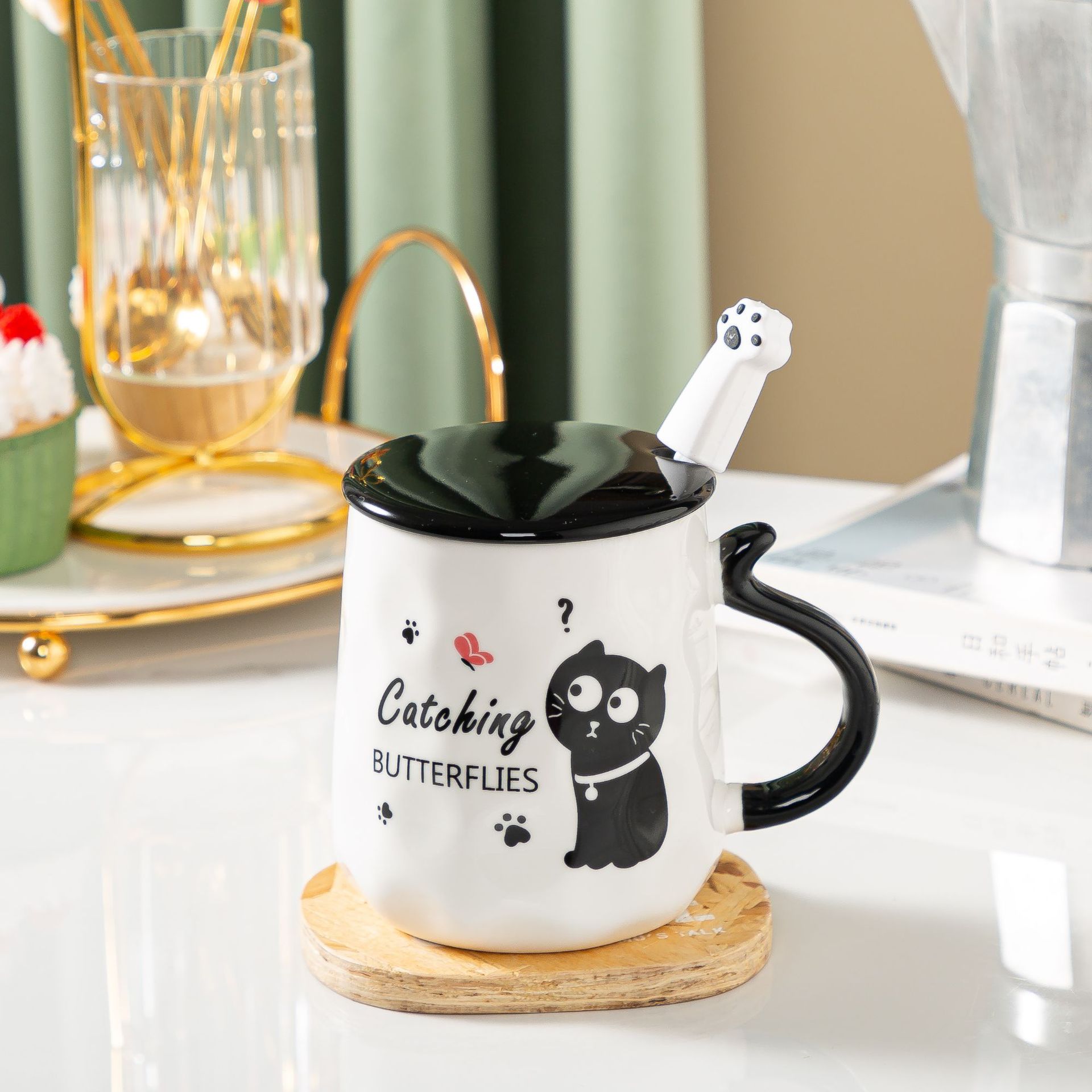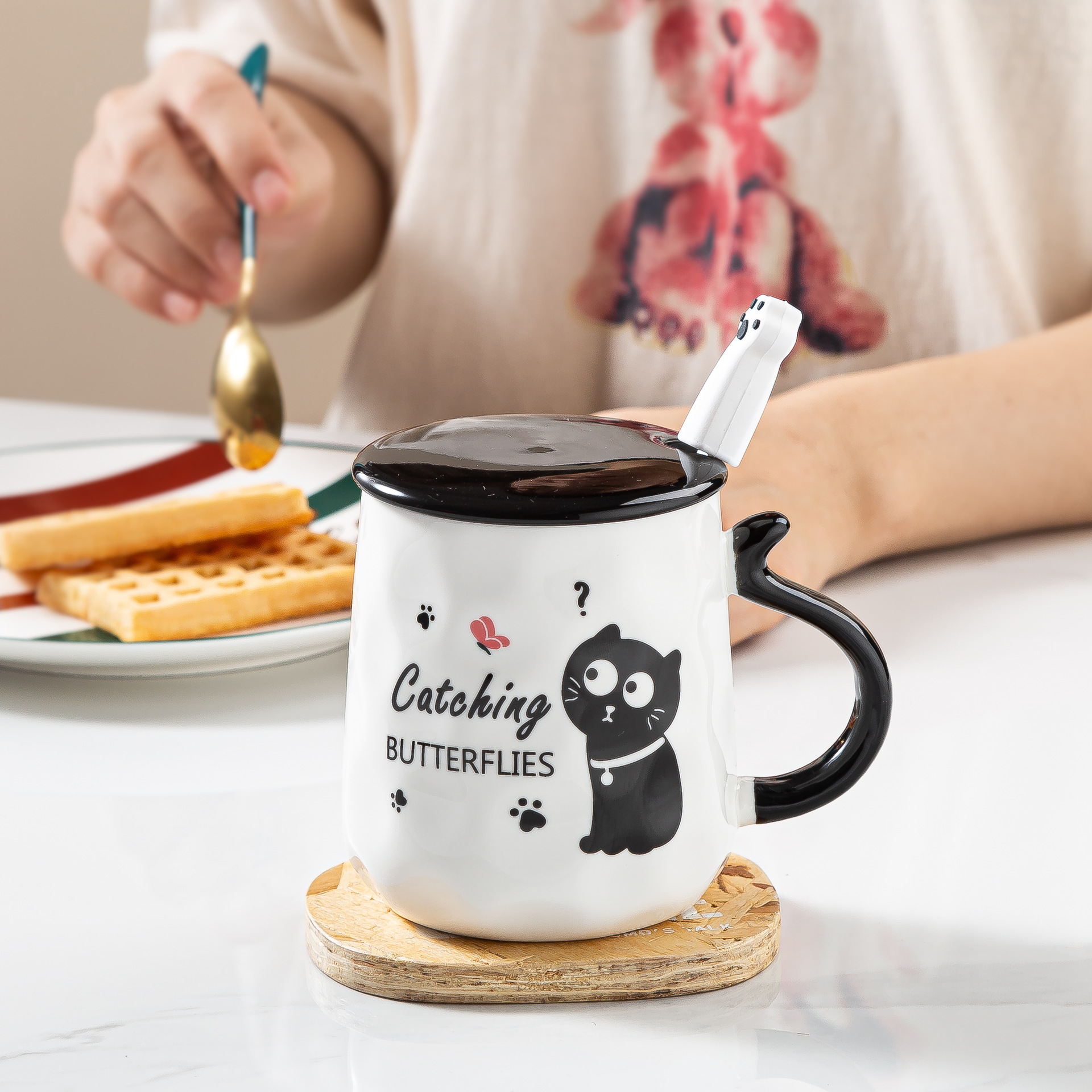 可爱卡通马克杯ins创意陶瓷杯带盖不锈钢吸管家用伴手礼水杯礼品