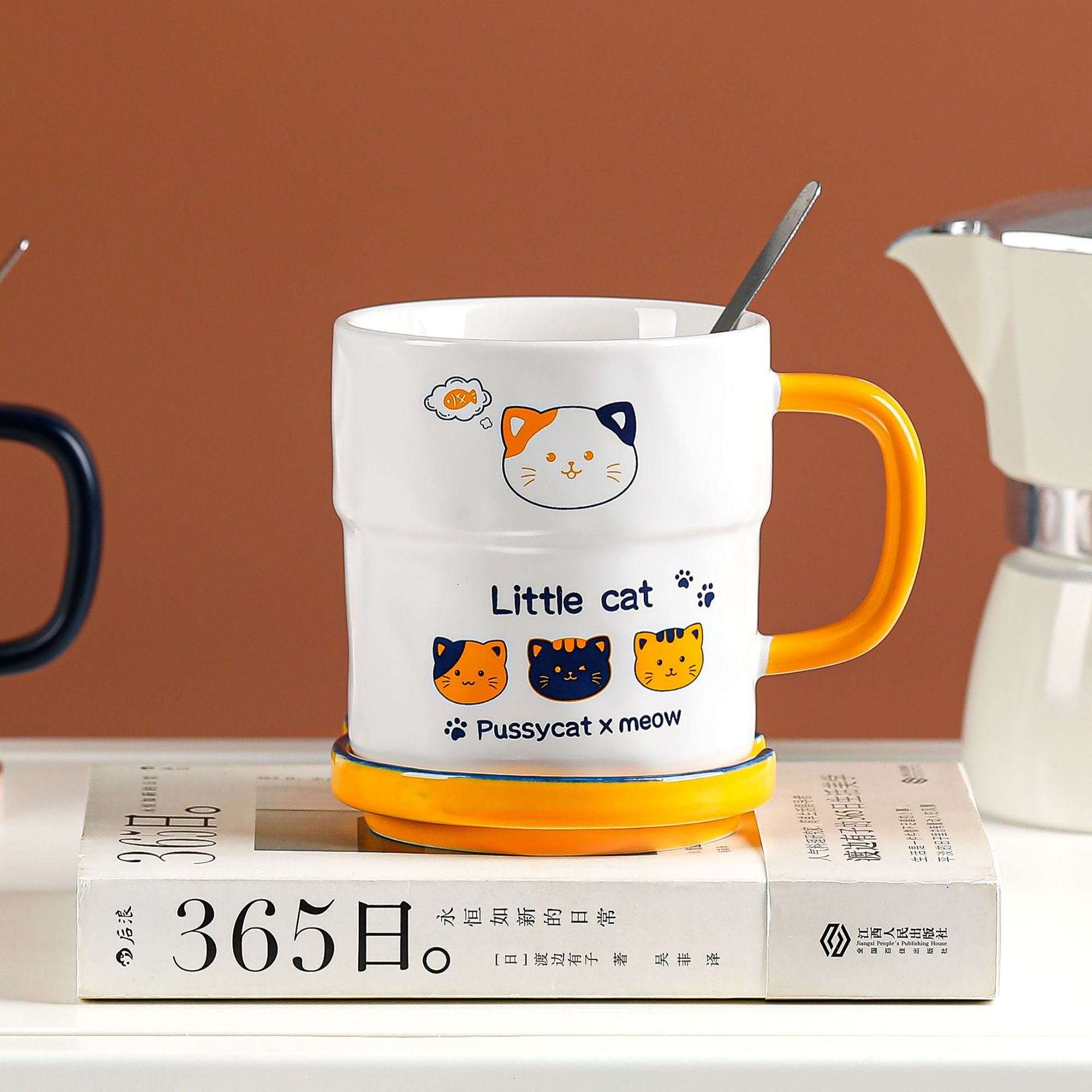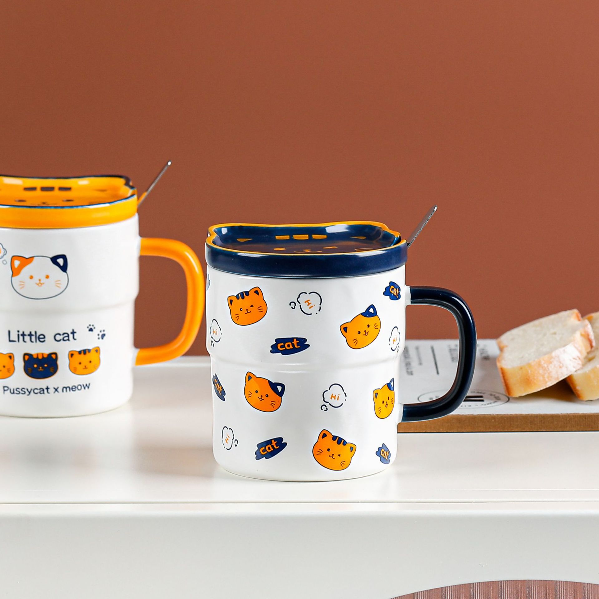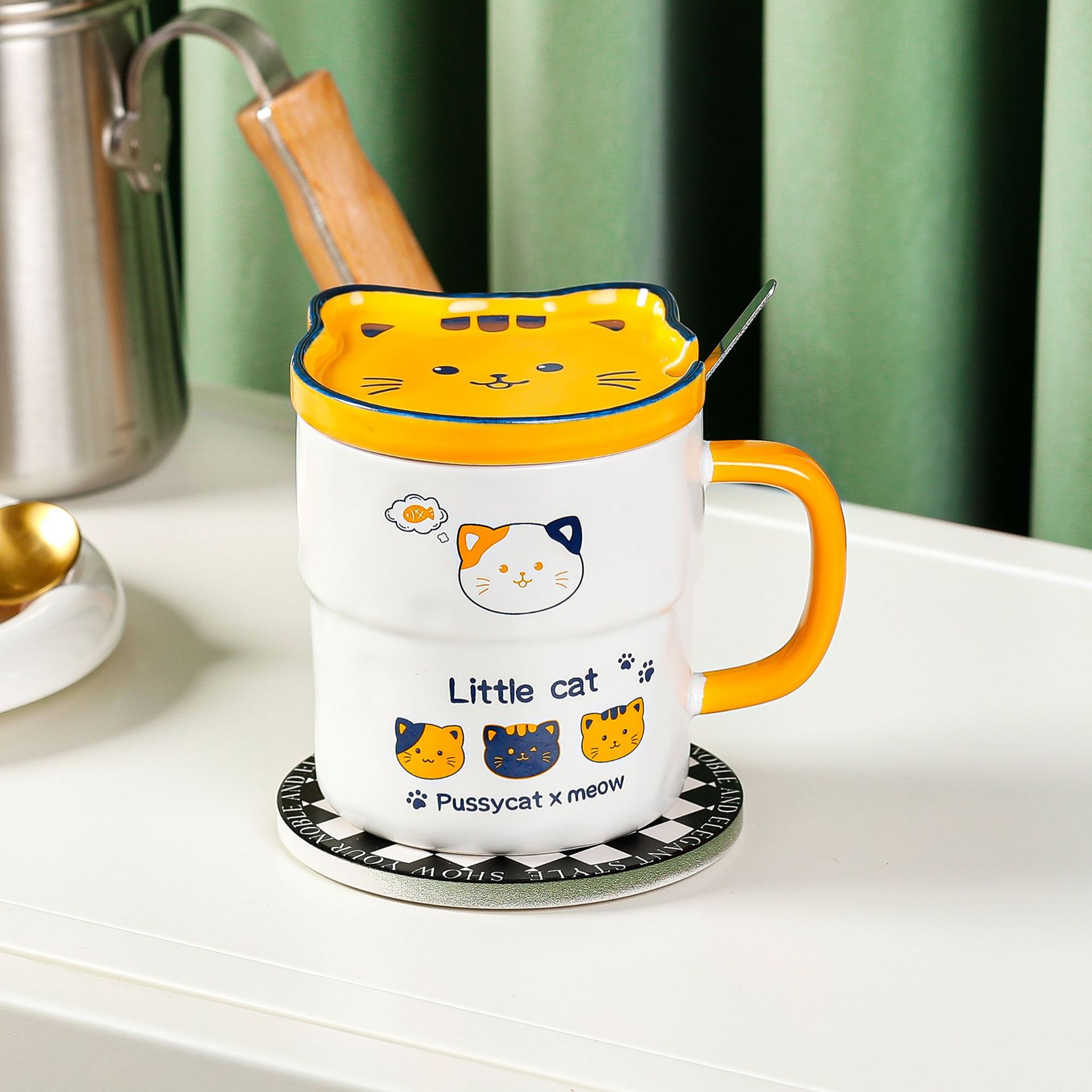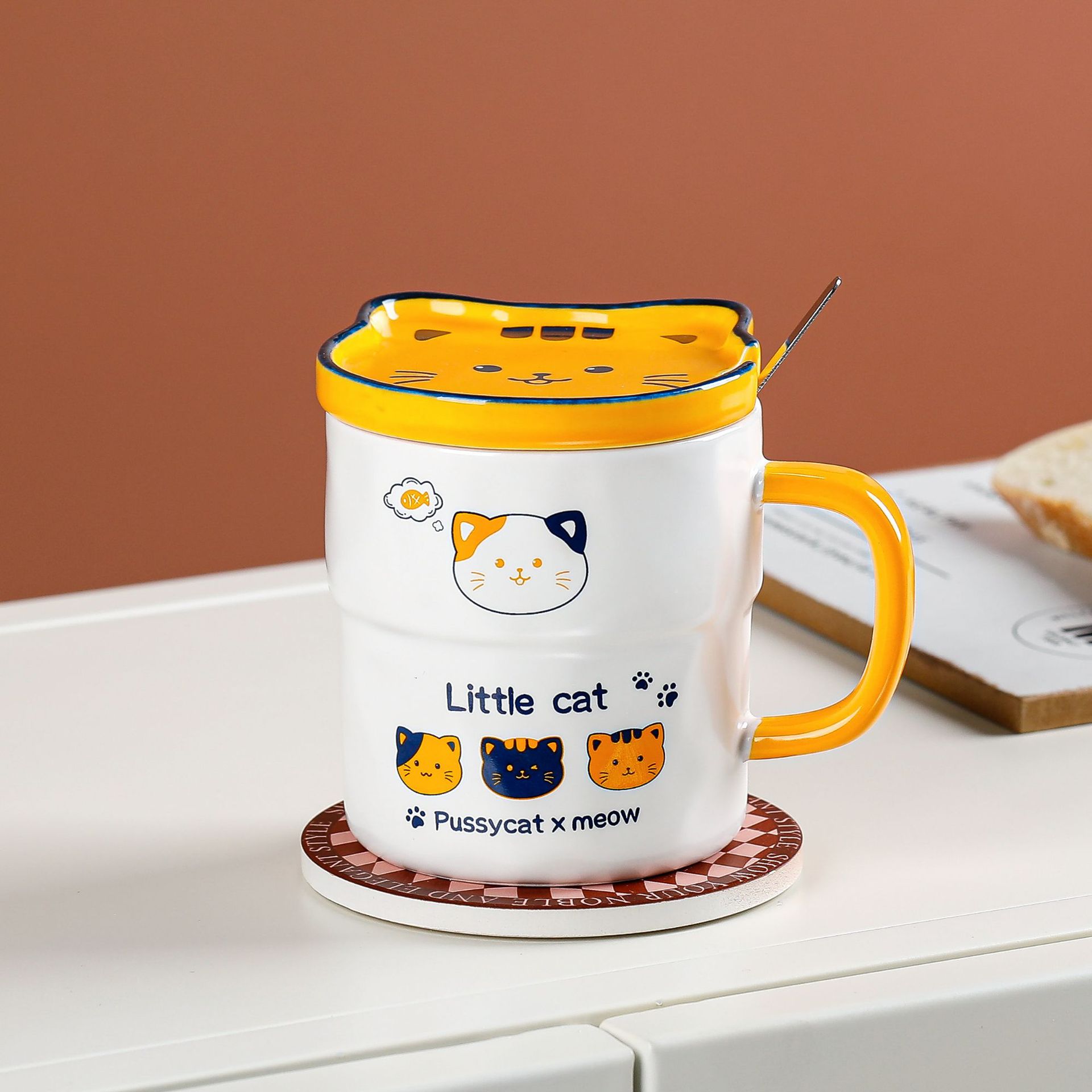 陶瓷卡通杯带盖马克杯创意可爱猫咪水杯家用办公室咖啡杯水杯带盖