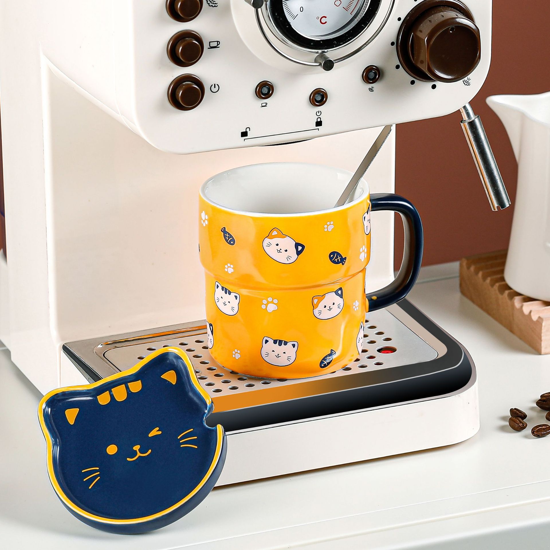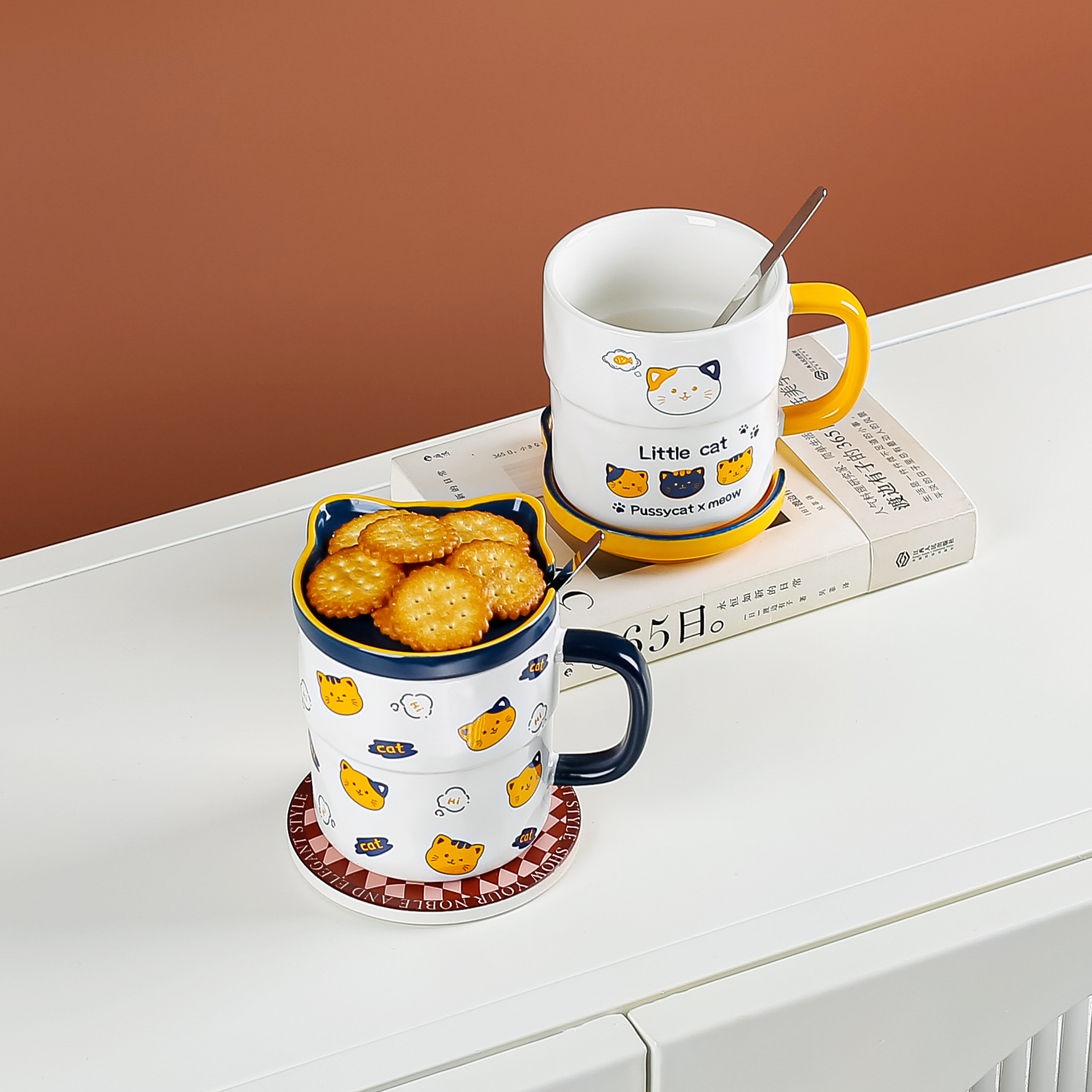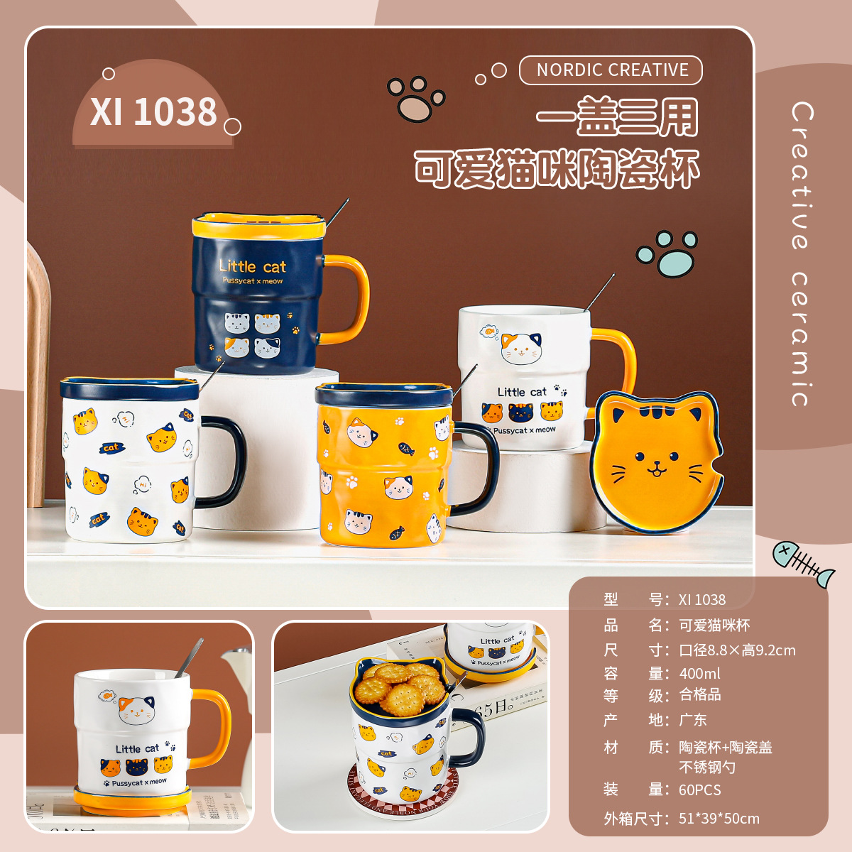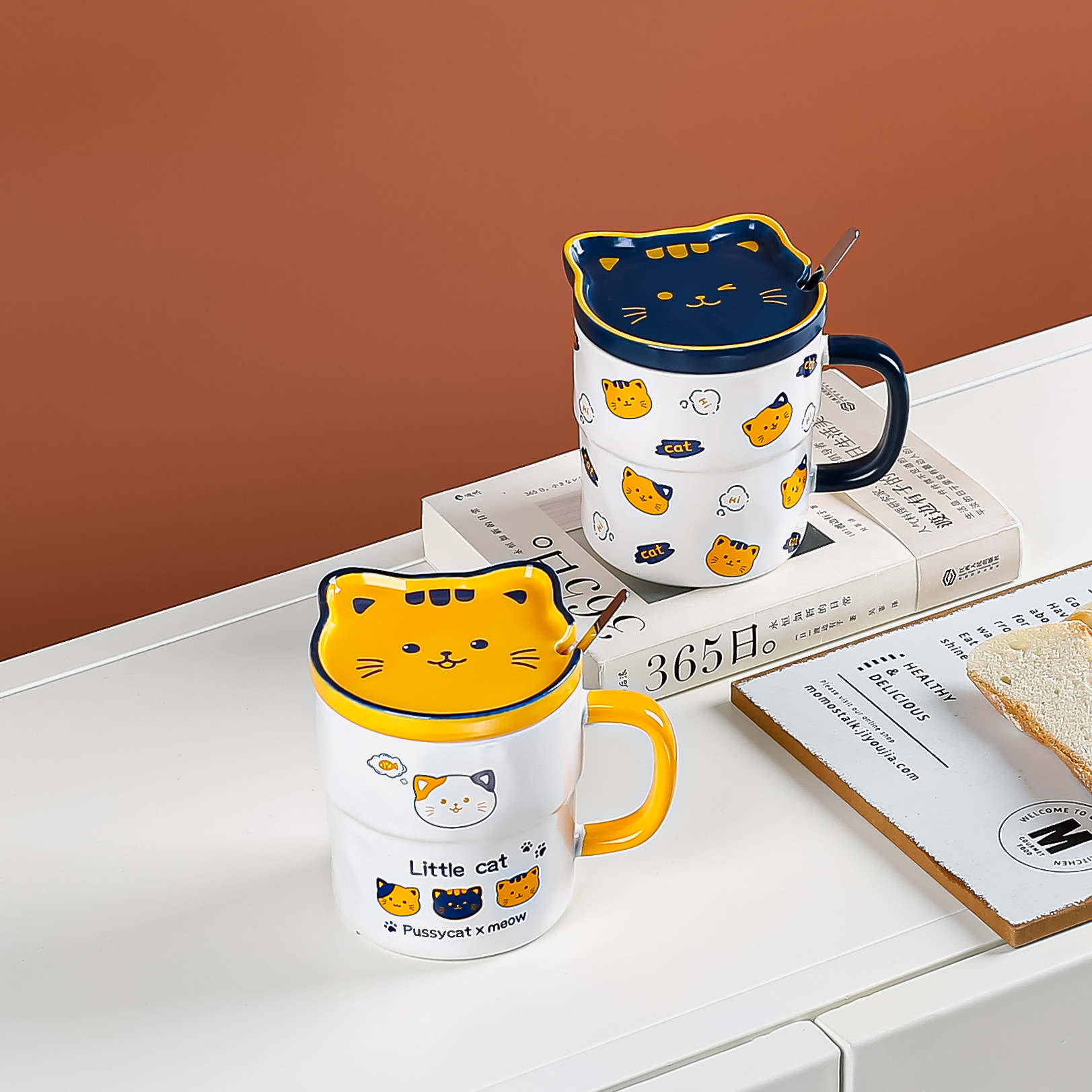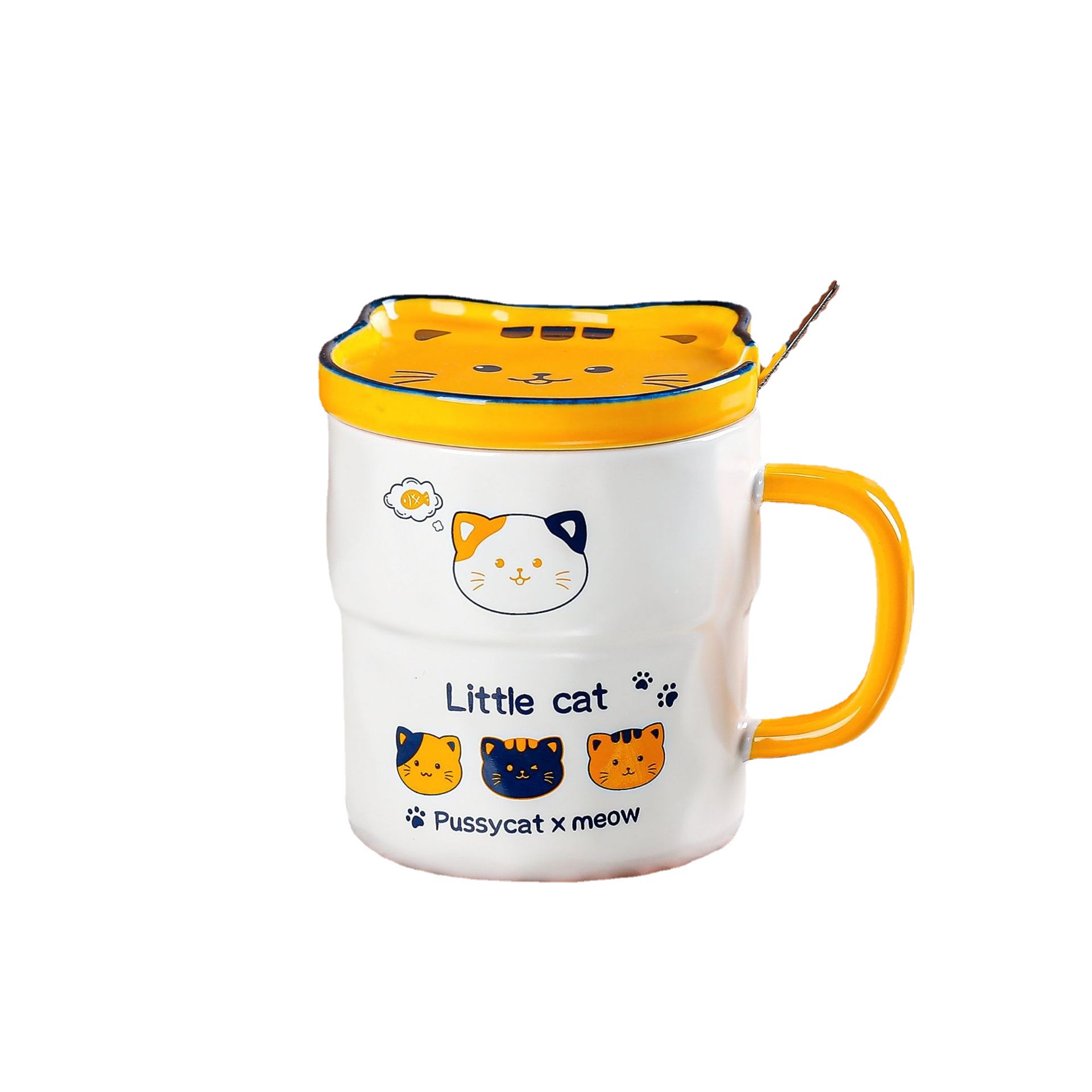 陶瓷卡通杯带盖马克杯创意可爱猫咪水杯家用办公室咖啡杯水杯带盖