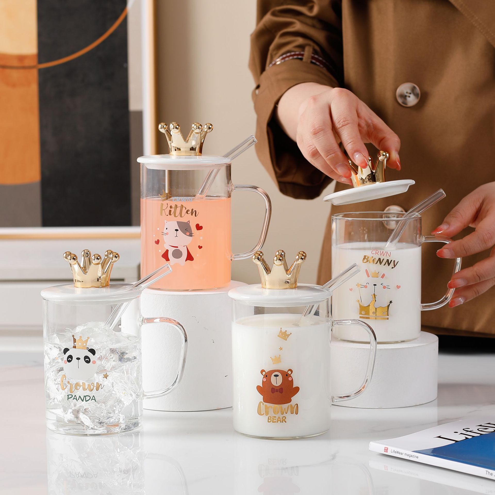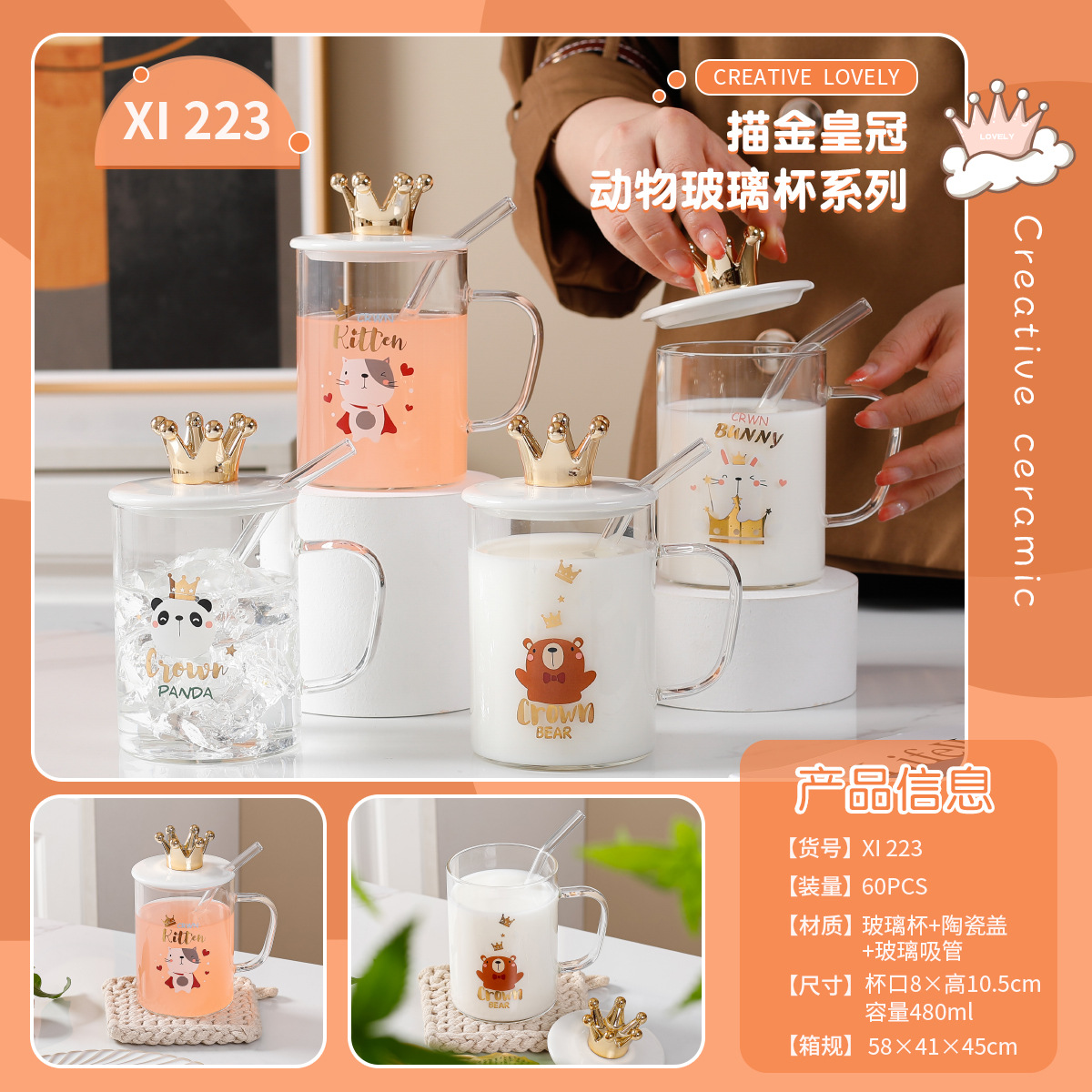 厂家创意圣诞玻璃杯透明玻璃印花口吸管高颜值玻璃杯礼品批发logo
