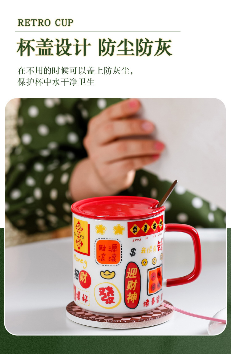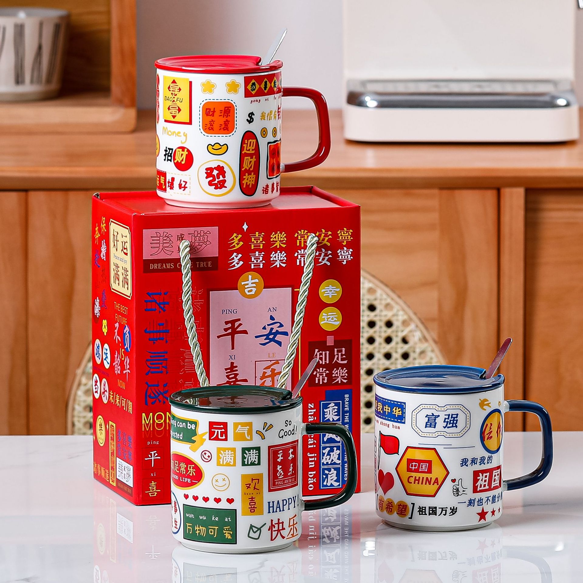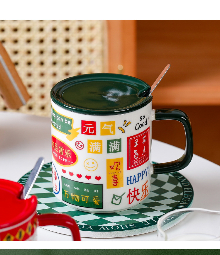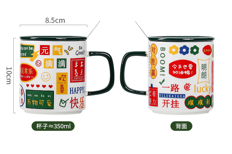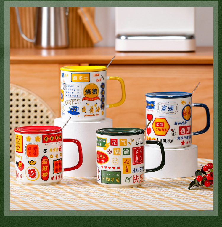陶瓷杯带盖马克杯家用咖啡杯办公茶杯子ins大容量水杯商务水杯