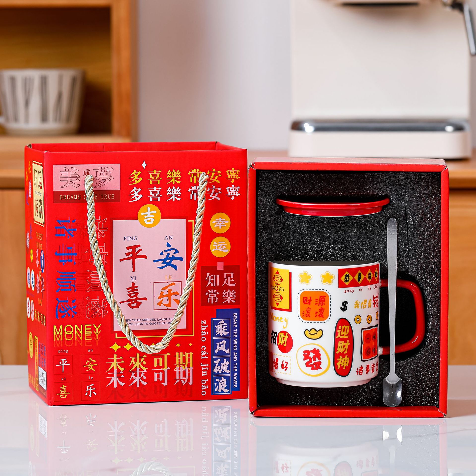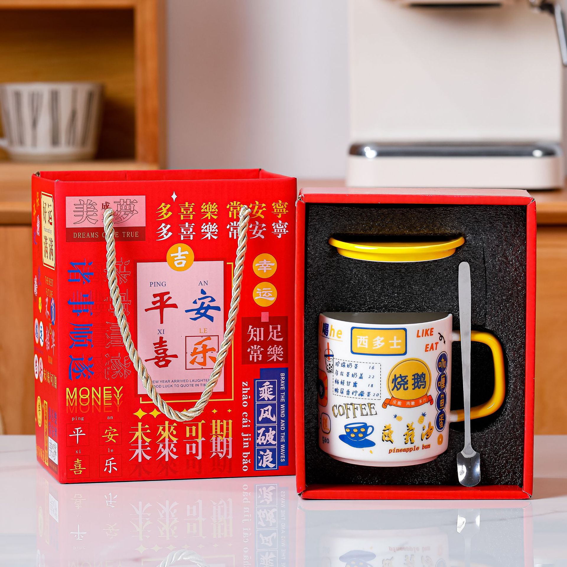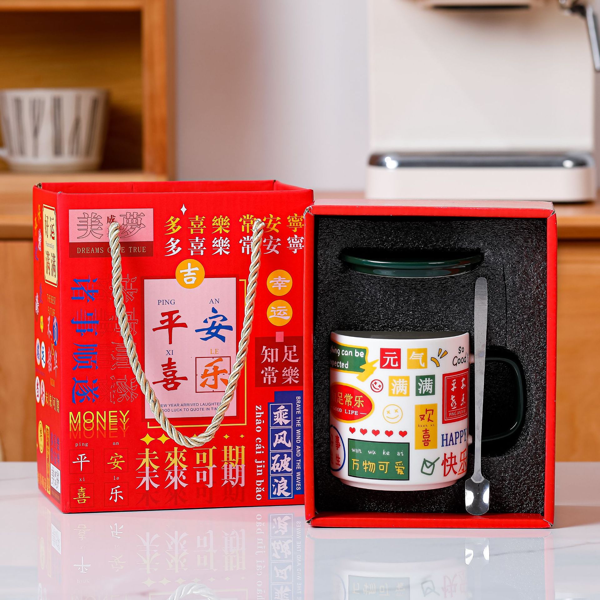 创意圣诞节礼物陶瓷杯圣诞树马克杯配盖勺子圣诞礼品圣诞节礼物