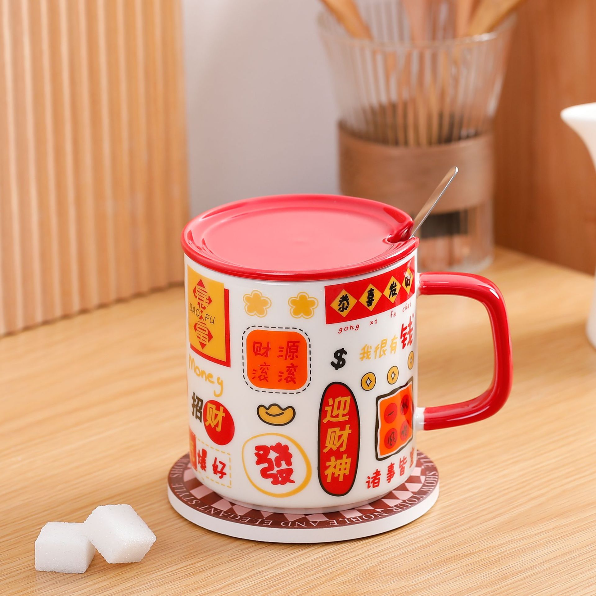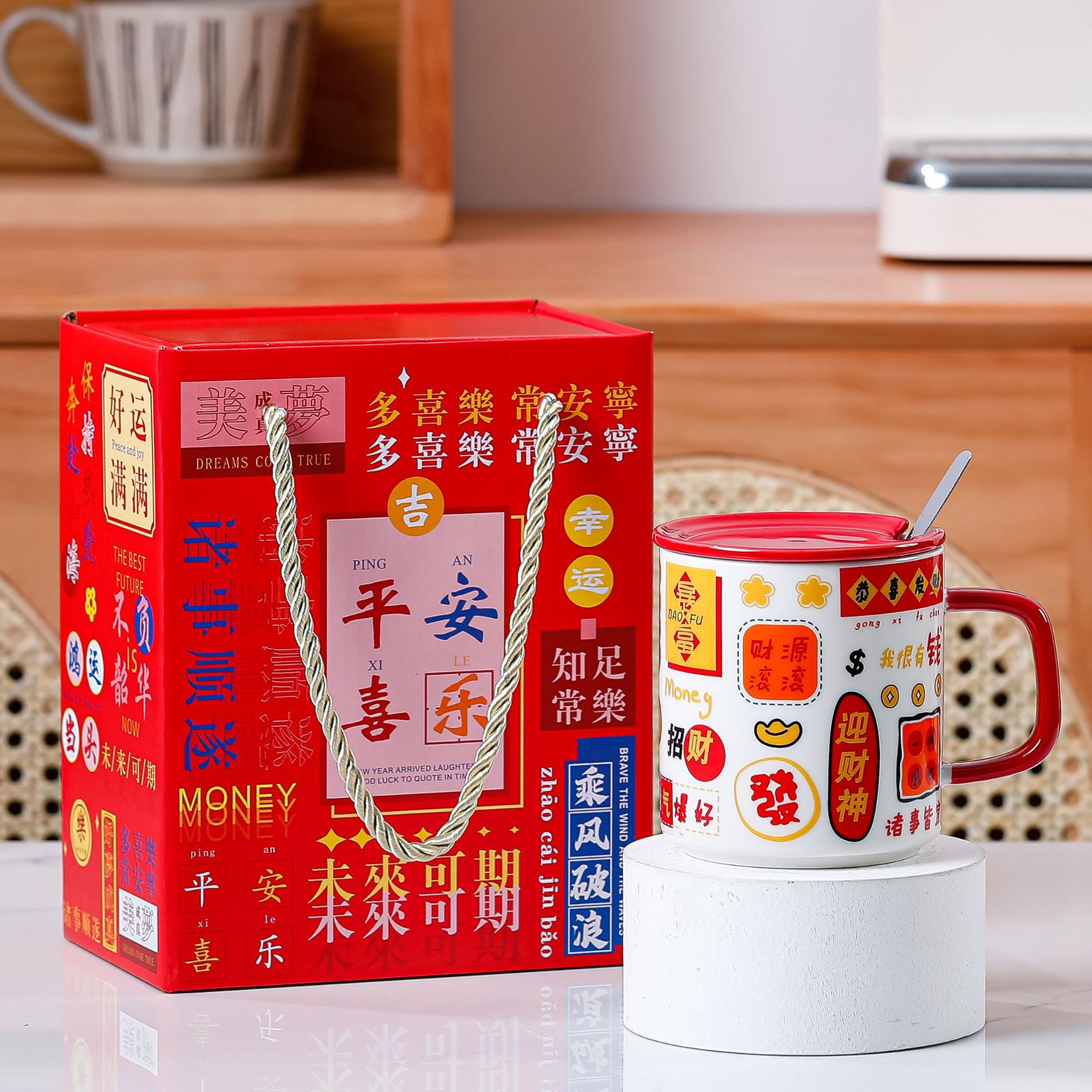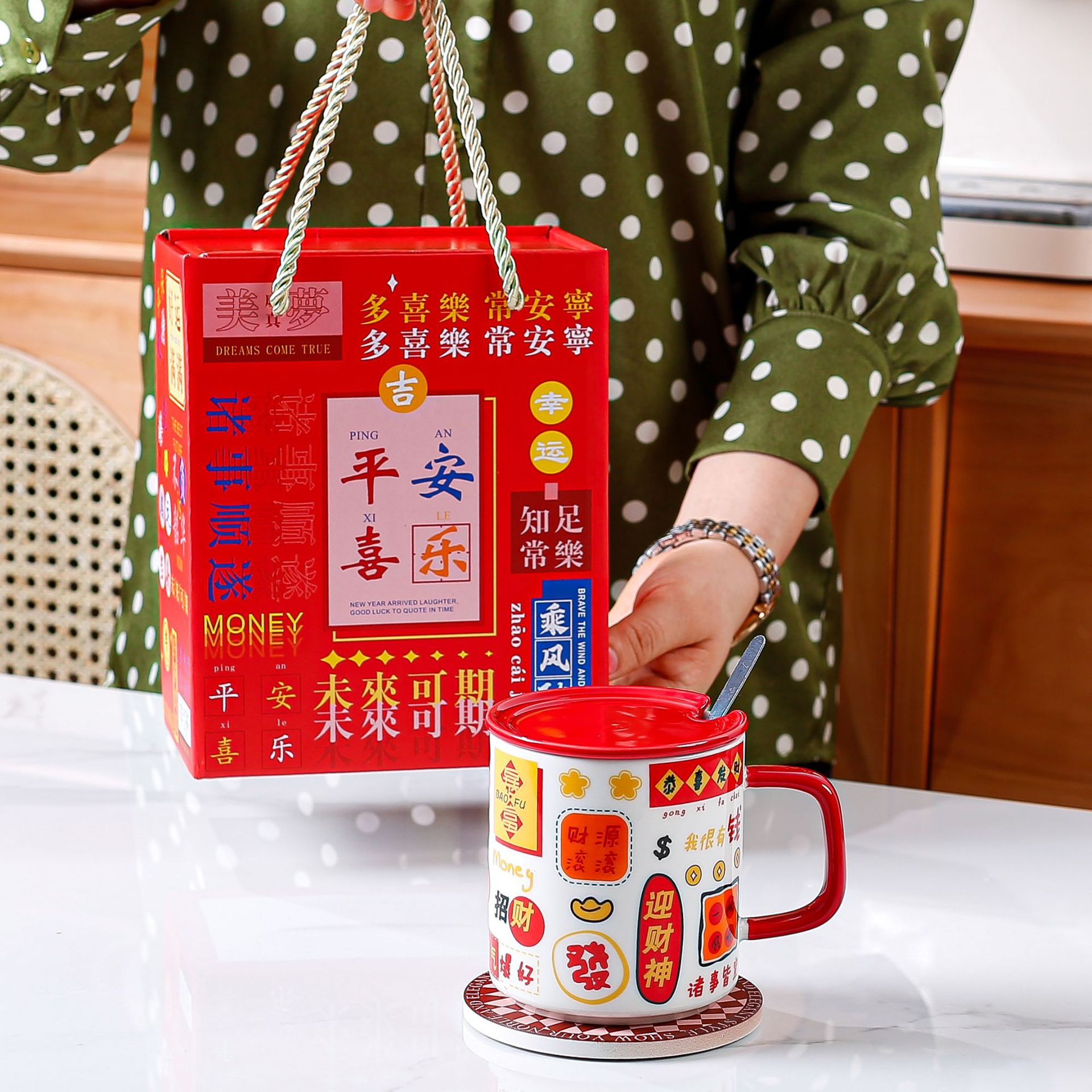 创意圣诞节礼物陶瓷杯圣诞树马克杯配盖勺子圣诞礼品圣诞节礼物