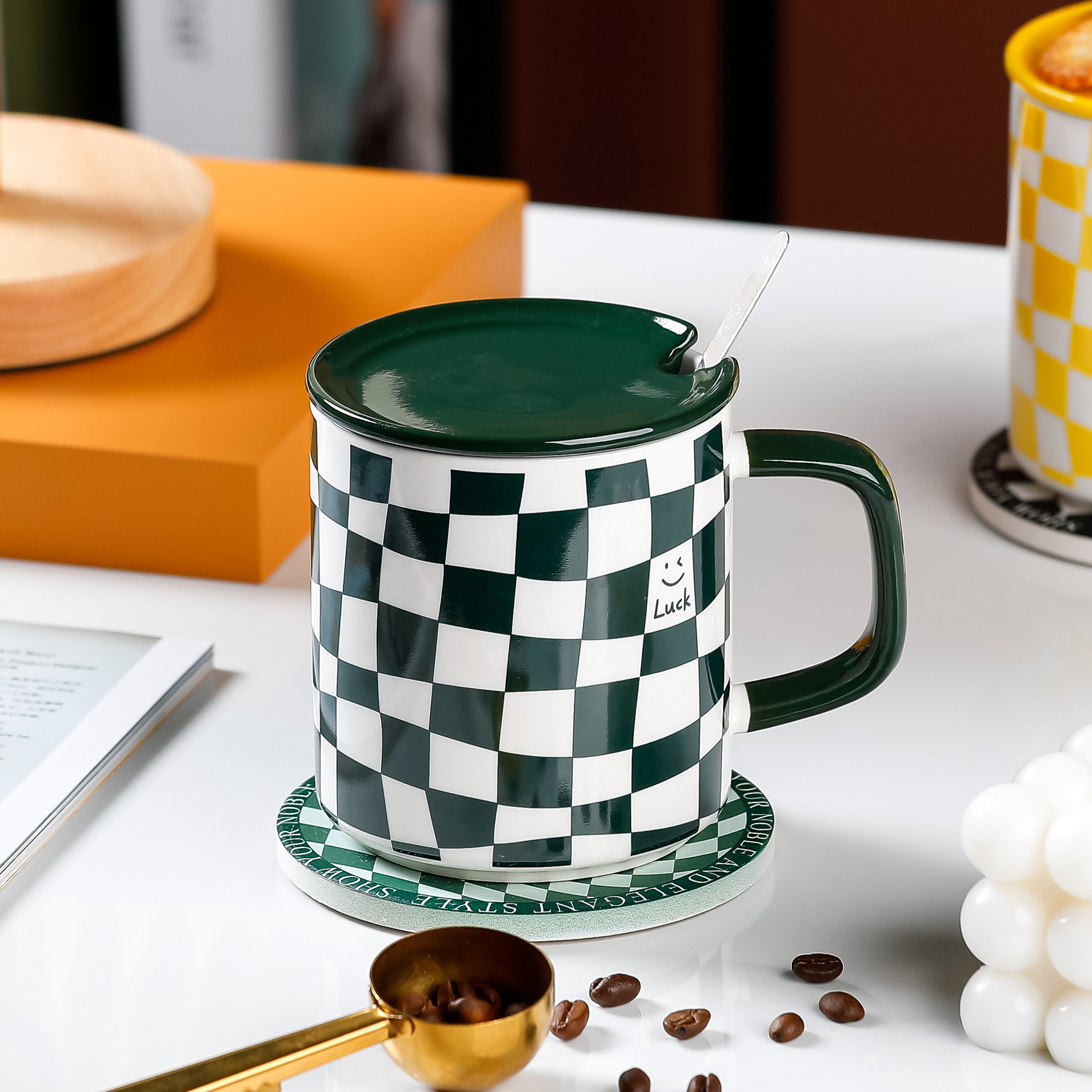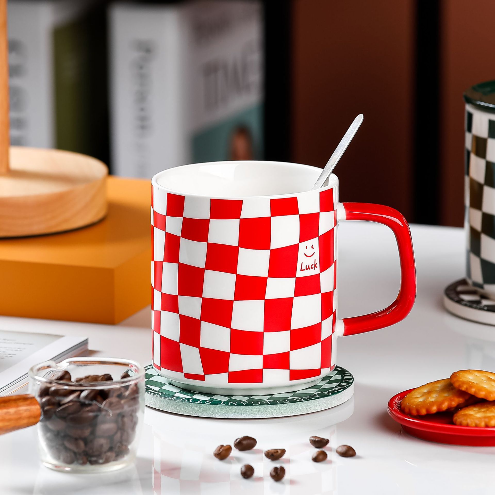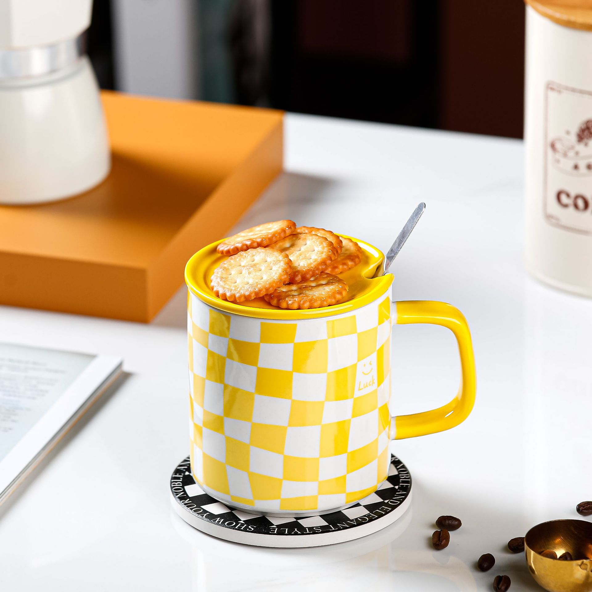 创意港风马克杯潮流复古陶瓷杯配盖勺子办公水杯礼品礼物批发logo