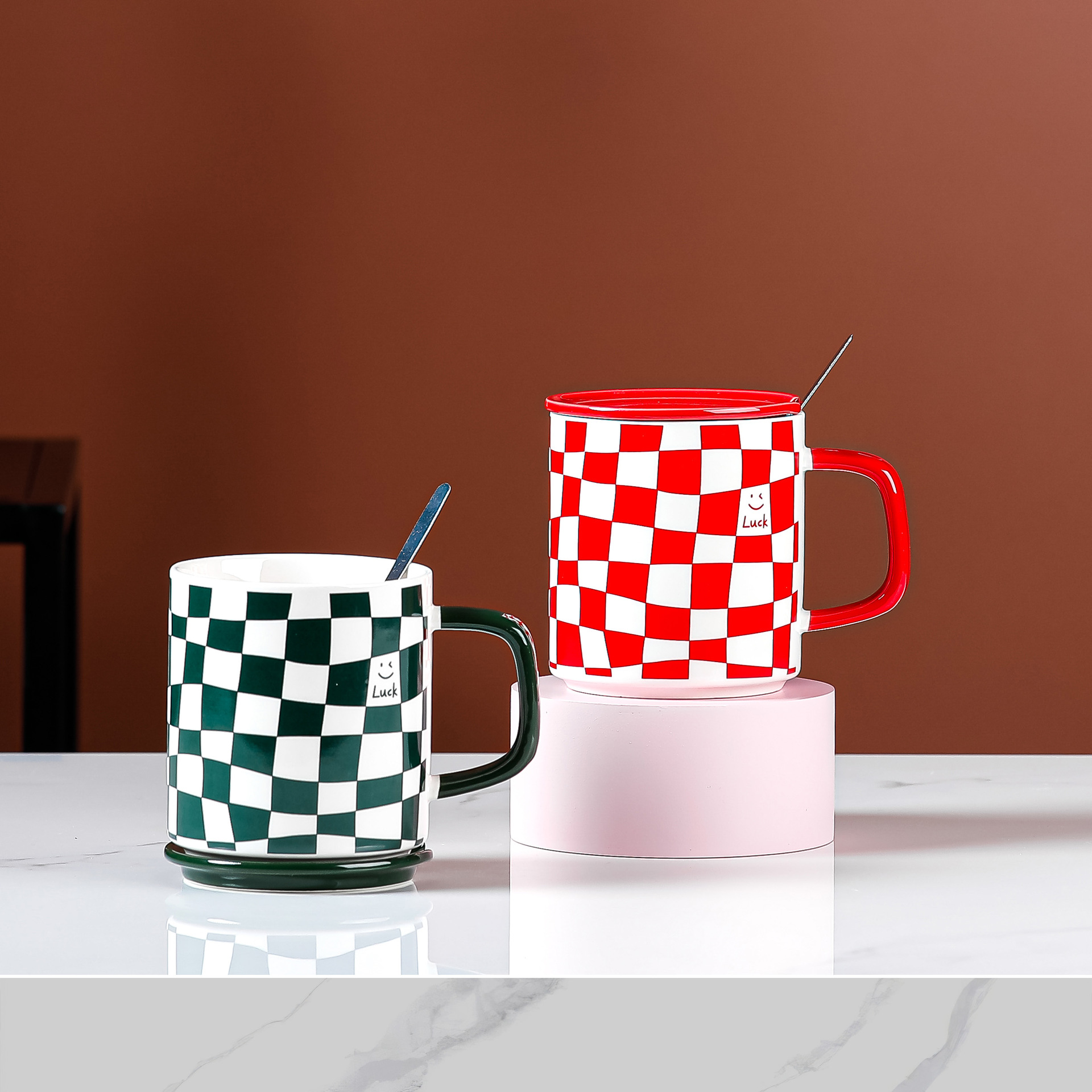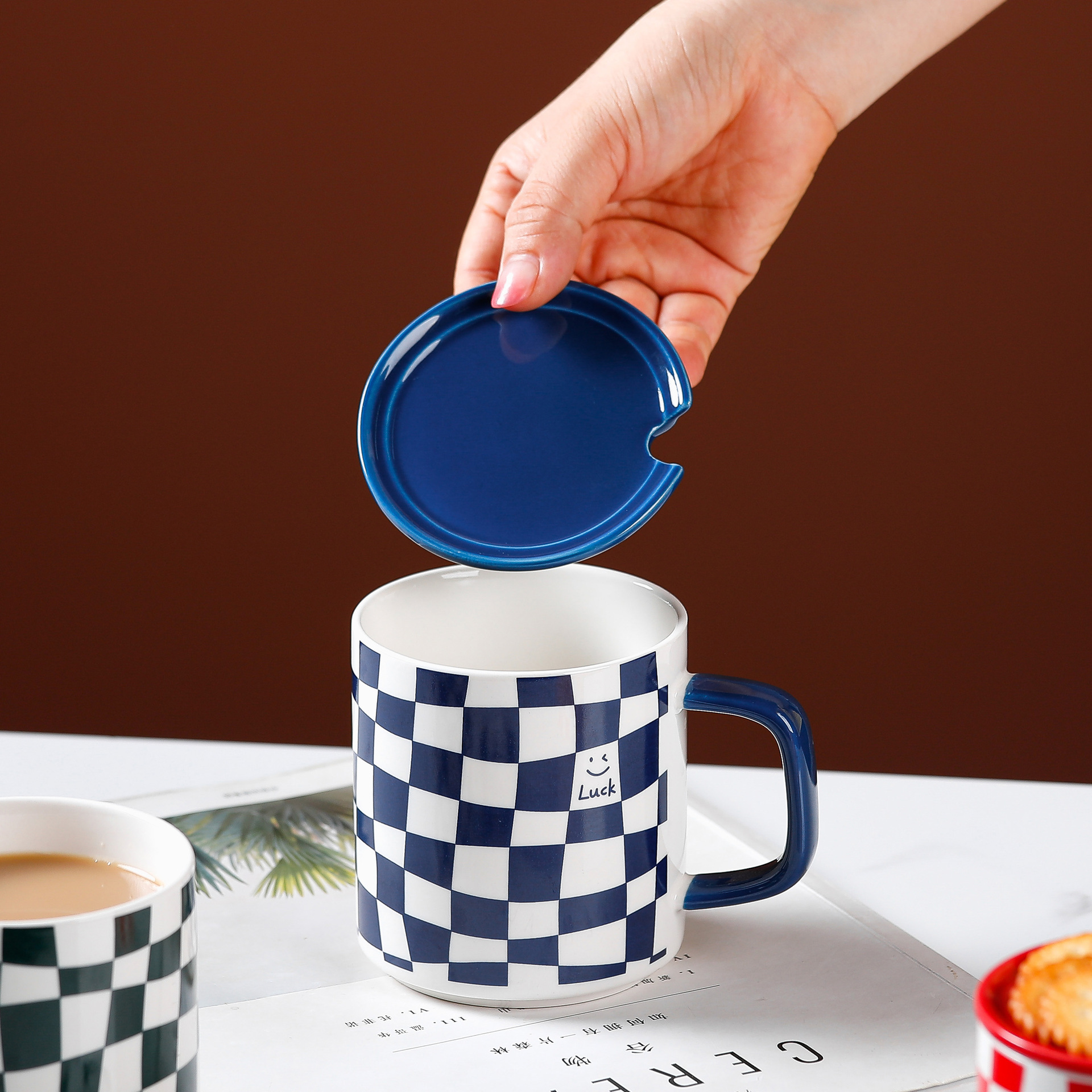 ins风陶瓷杯子带盖勺子草莓可爱高颜值马克杯女家用陶瓷水杯批发