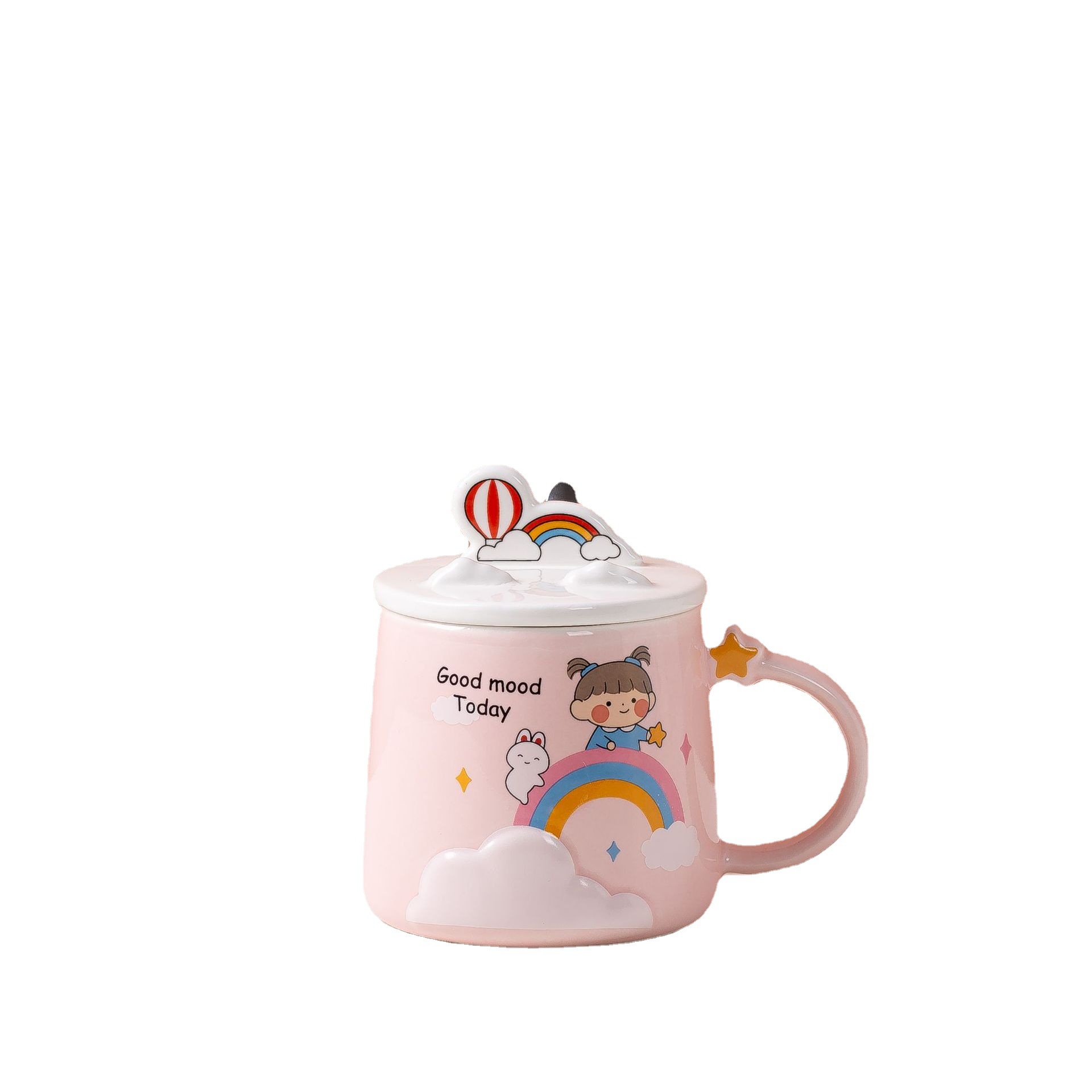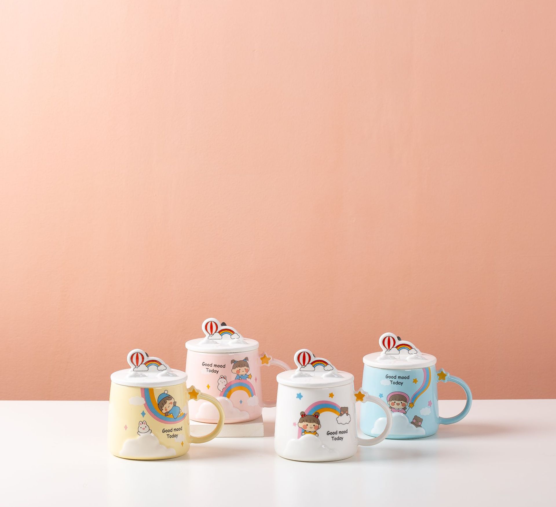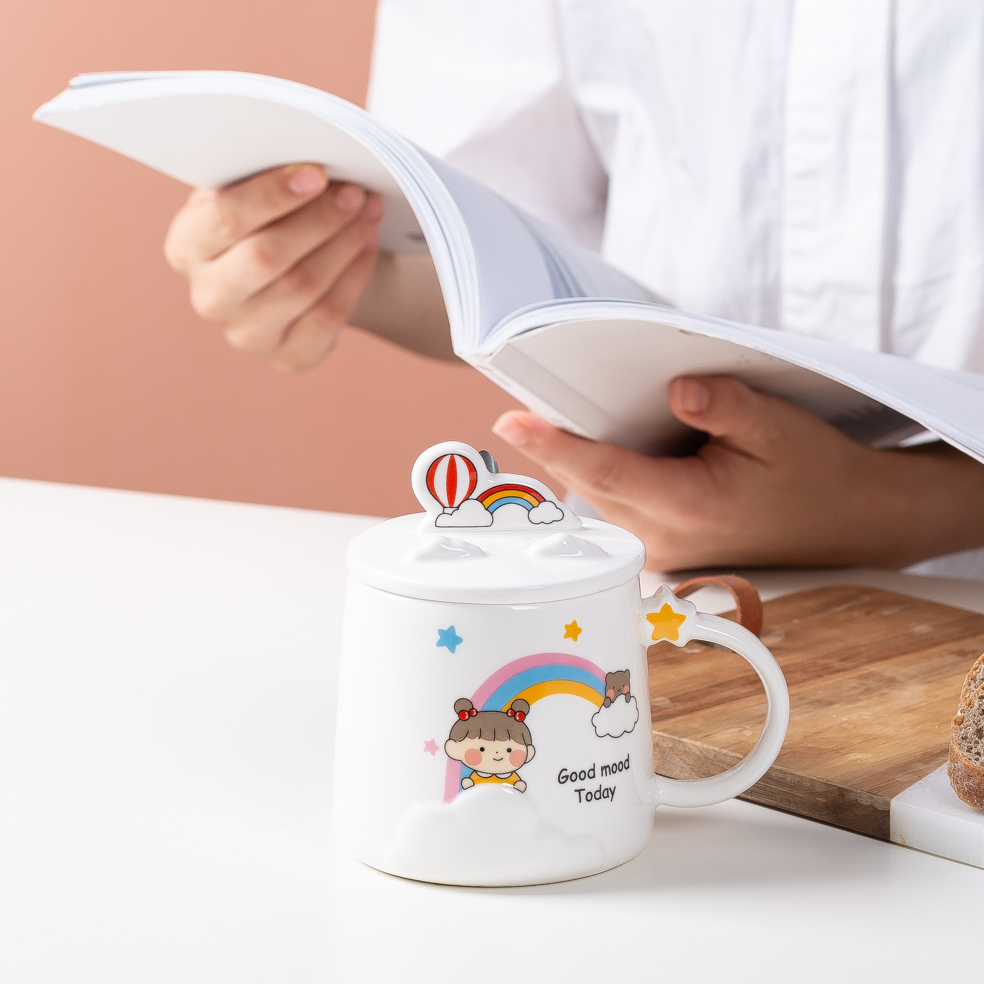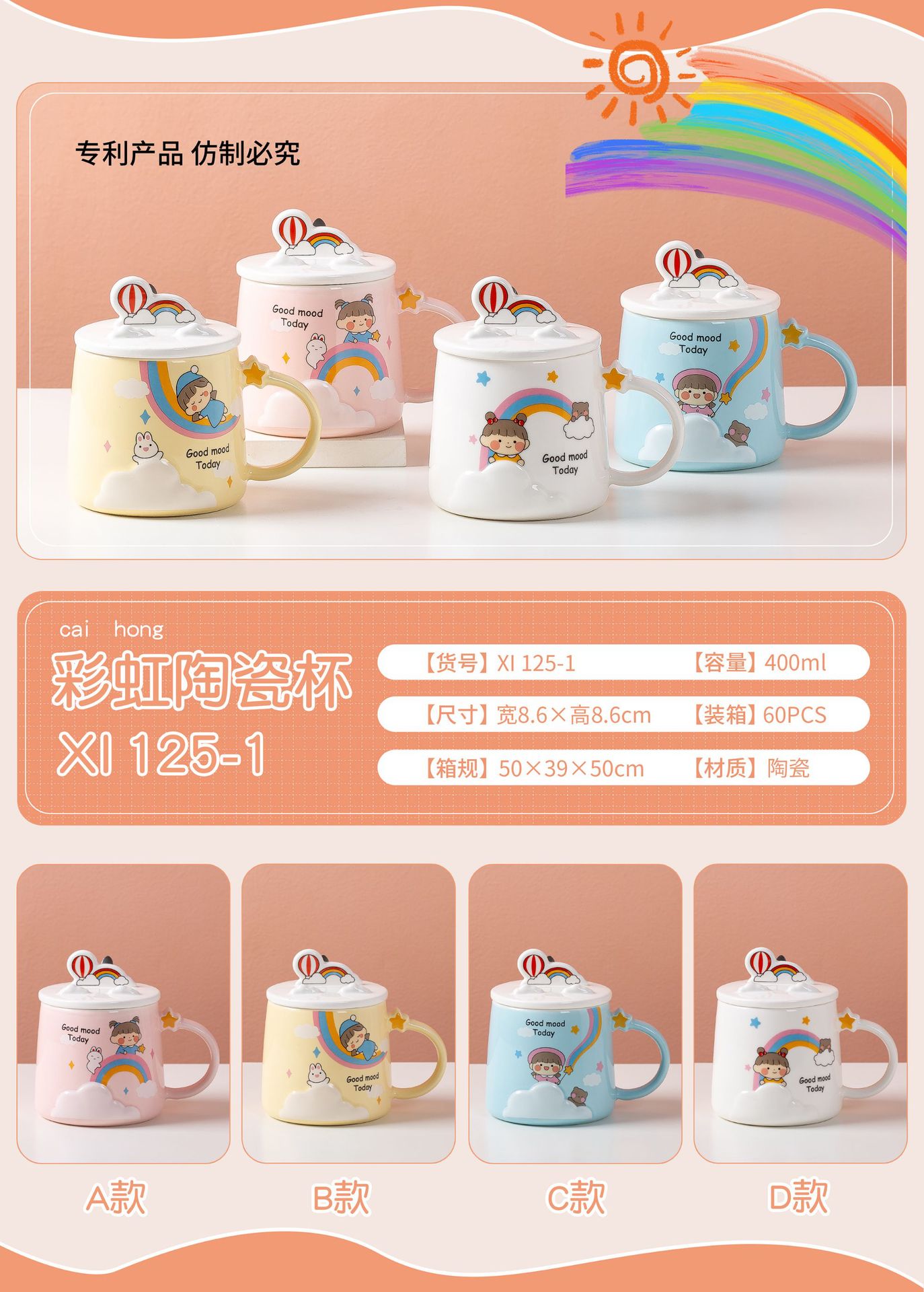日用百货礼品陶瓷杯卡通动物彩虹马克杯带盖勺跨境货源工厂批发