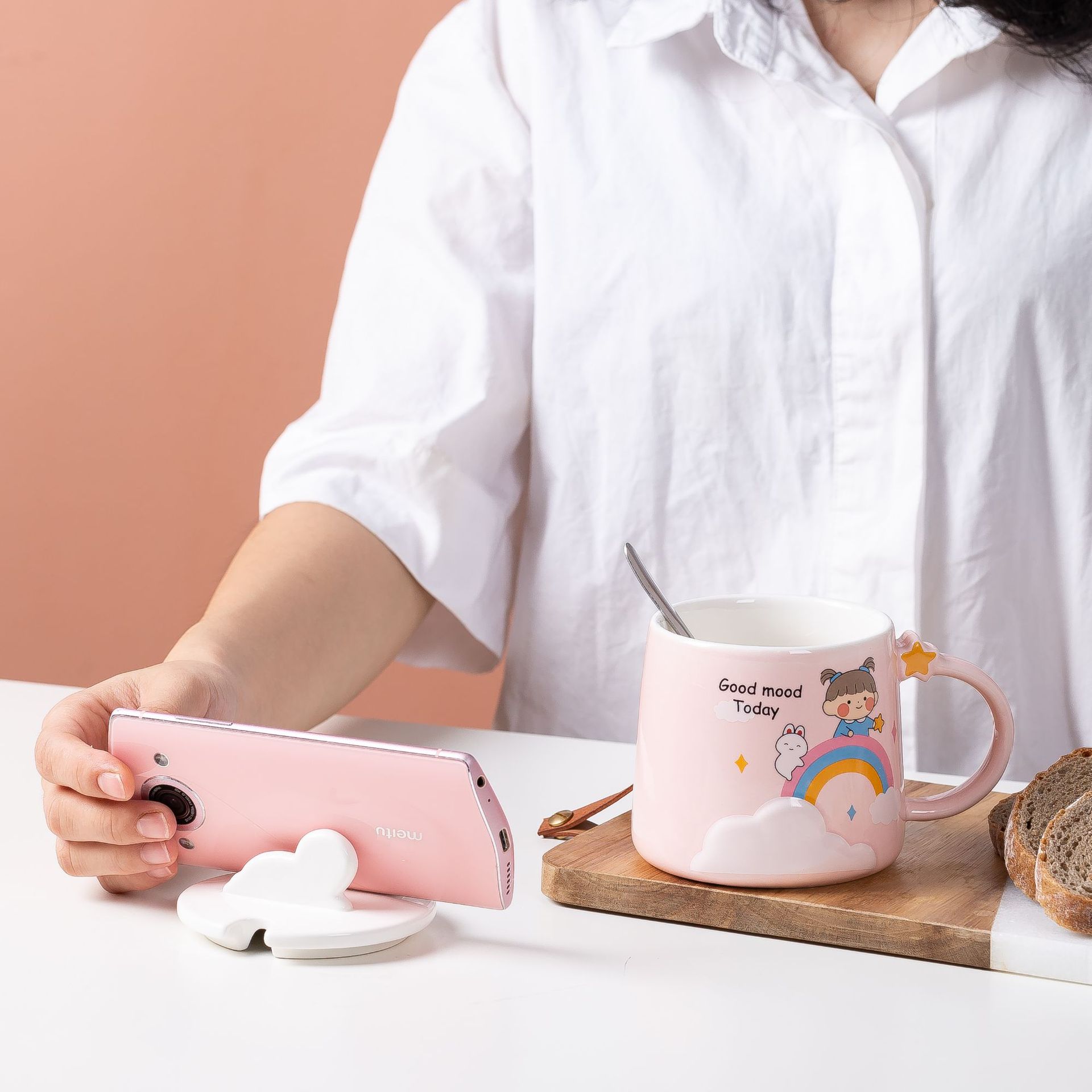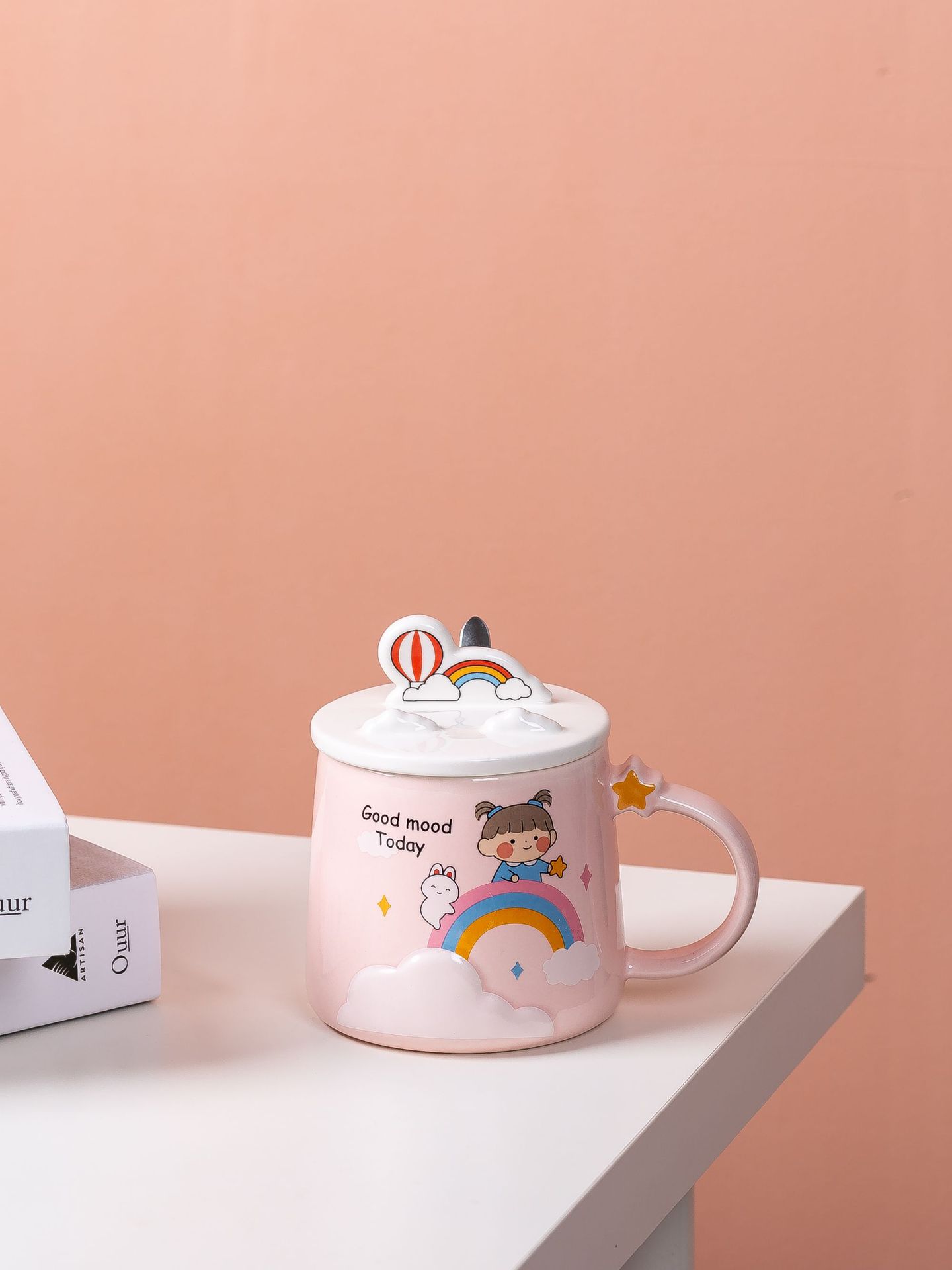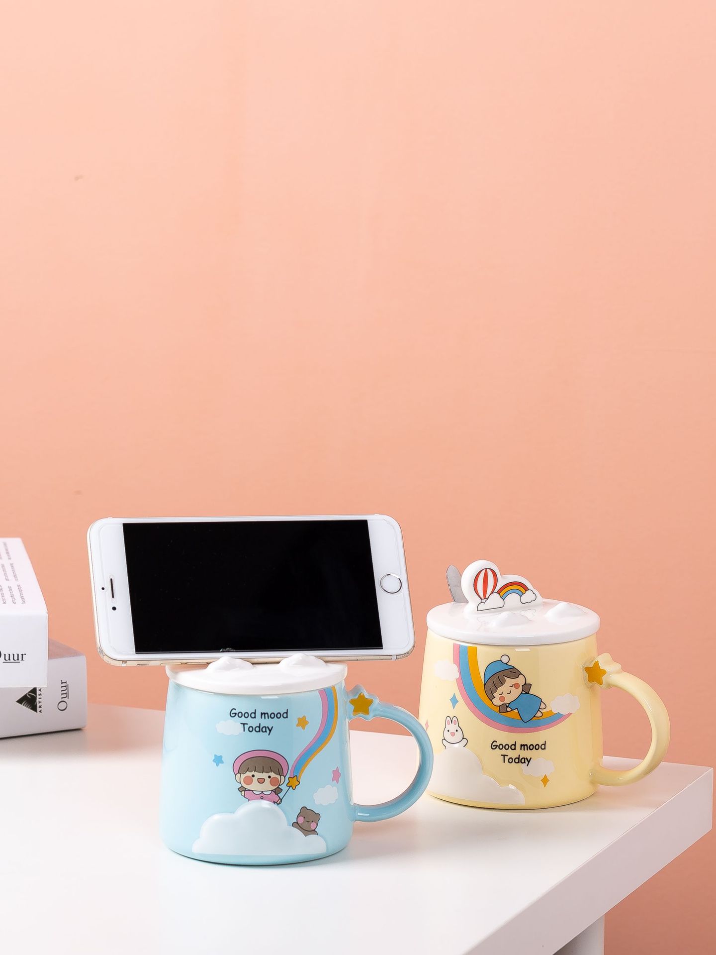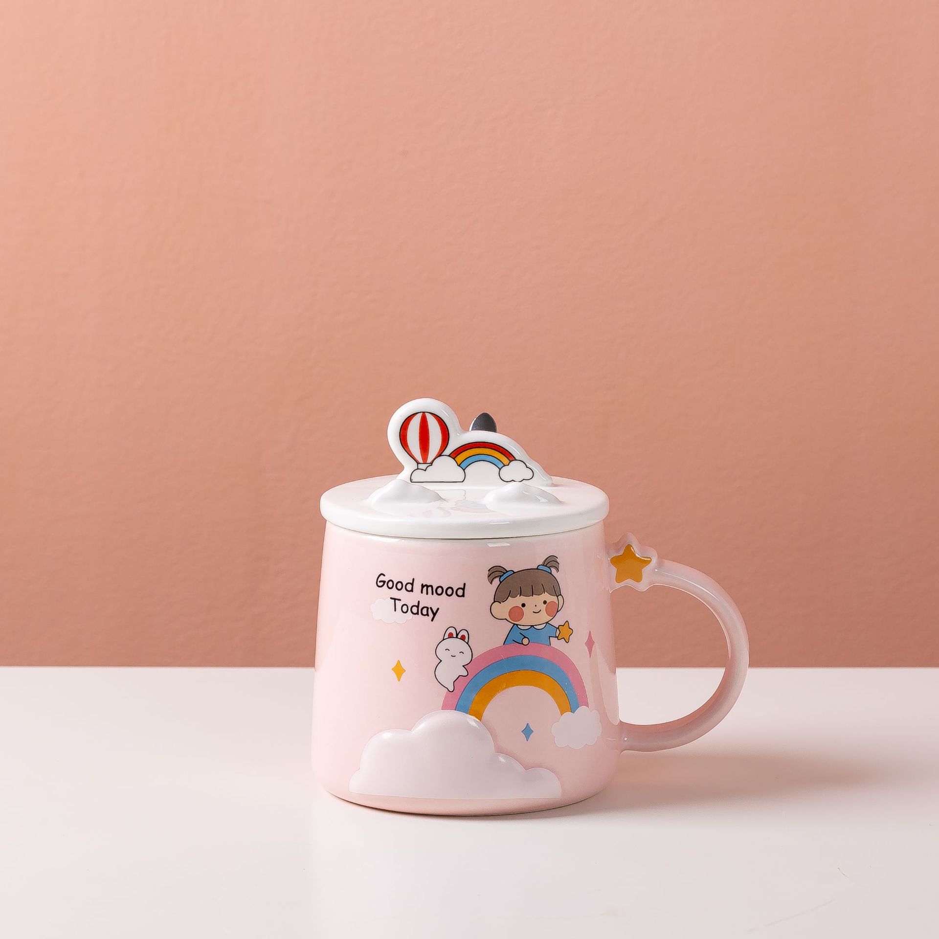 日用百货礼品陶瓷杯卡通动物彩虹马克杯带盖勺跨境货源工厂批发