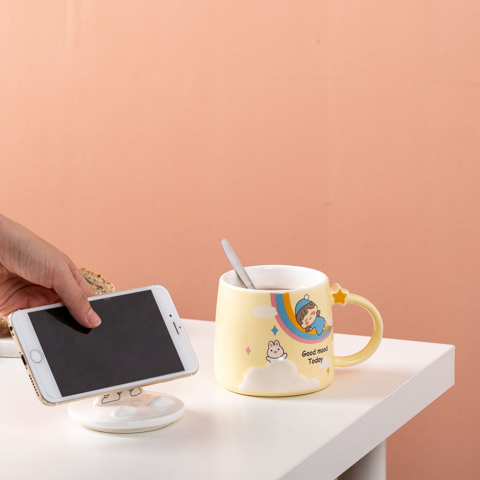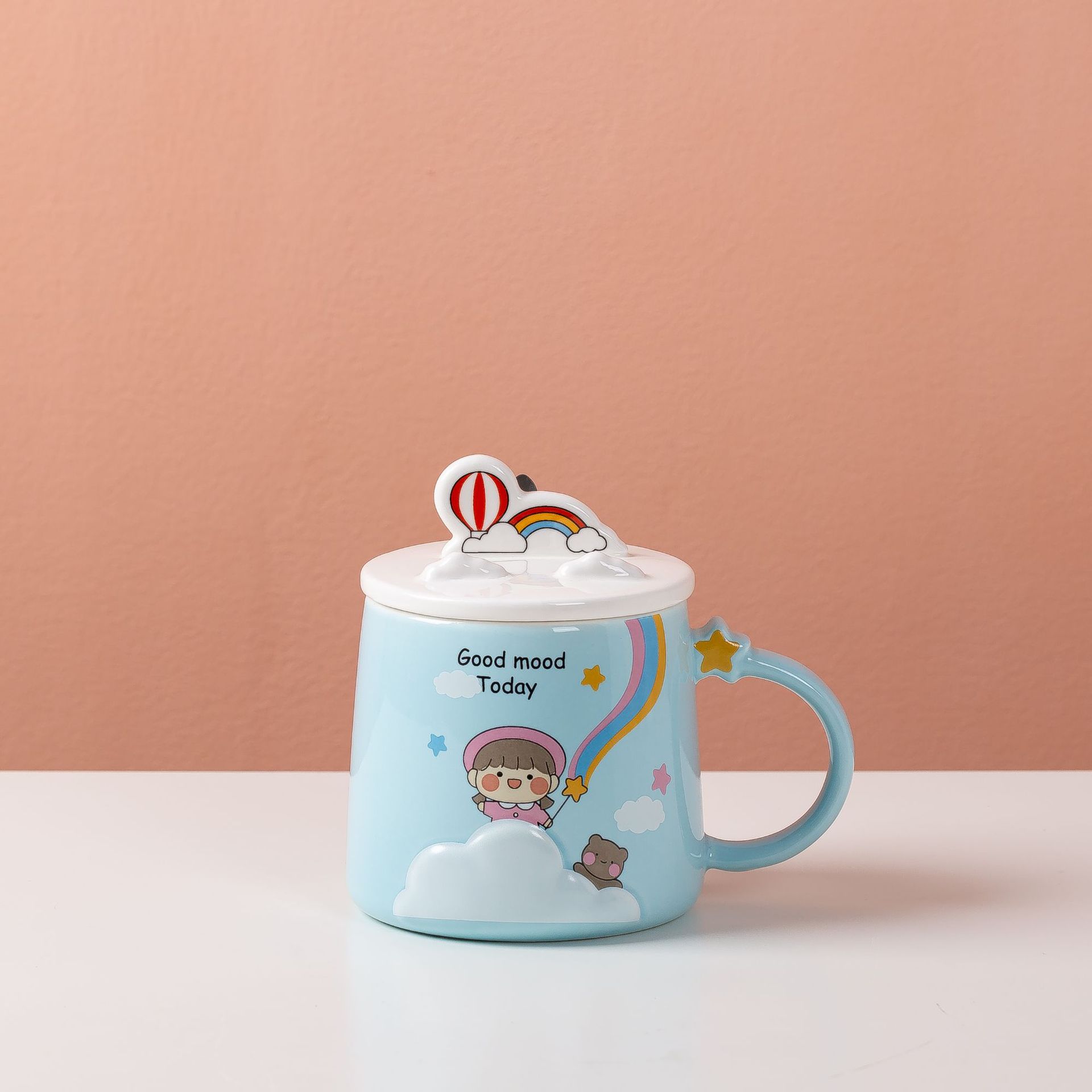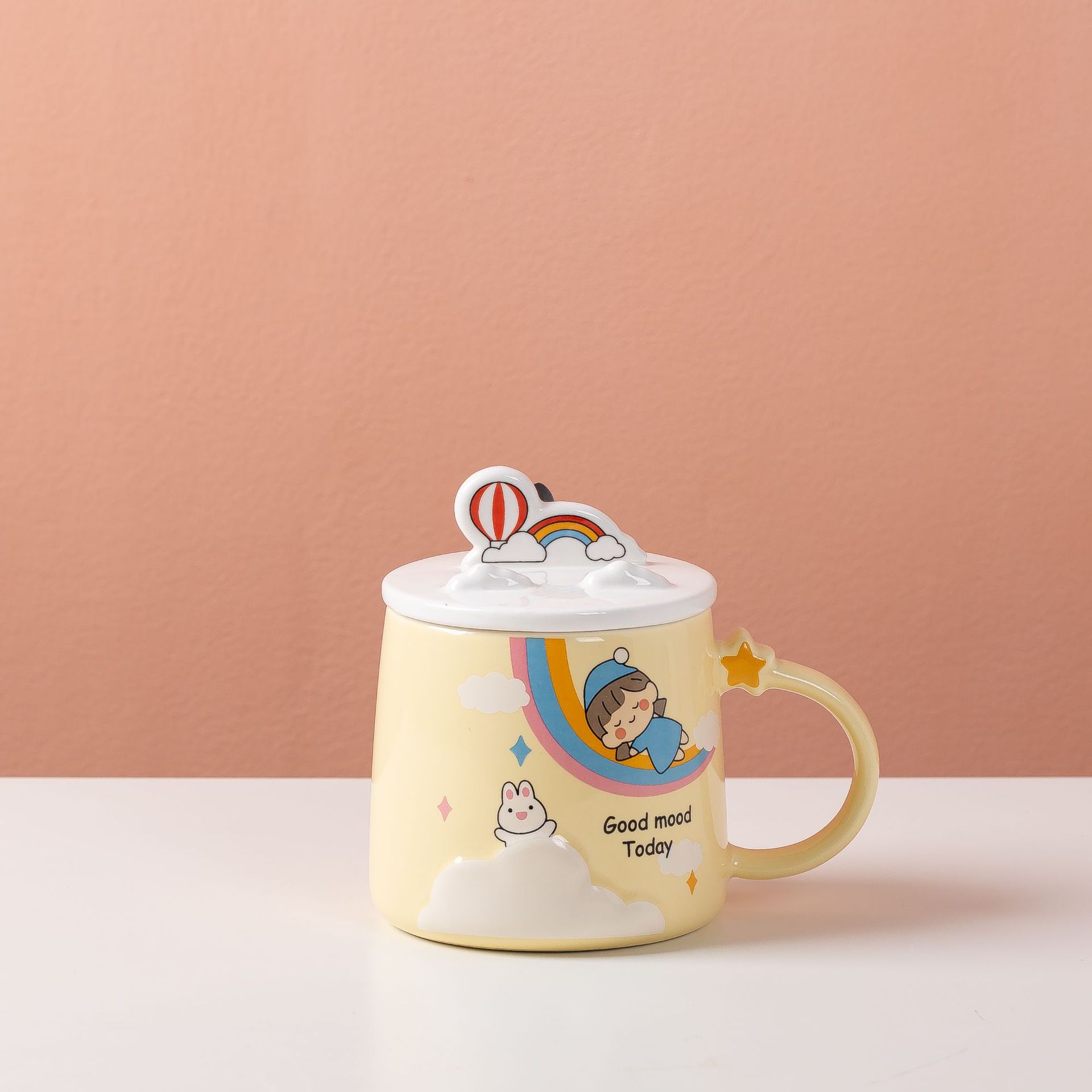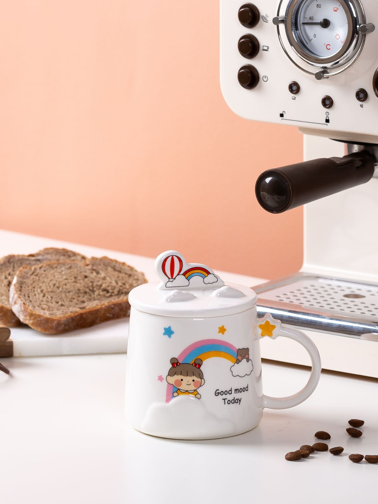 可爱小熊陶瓷杯家用办公室咖啡杯可爱卡通高颜值水杯早餐杯带盖