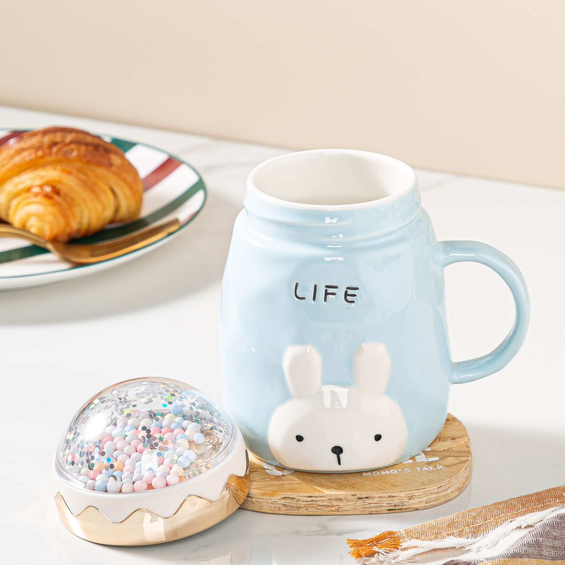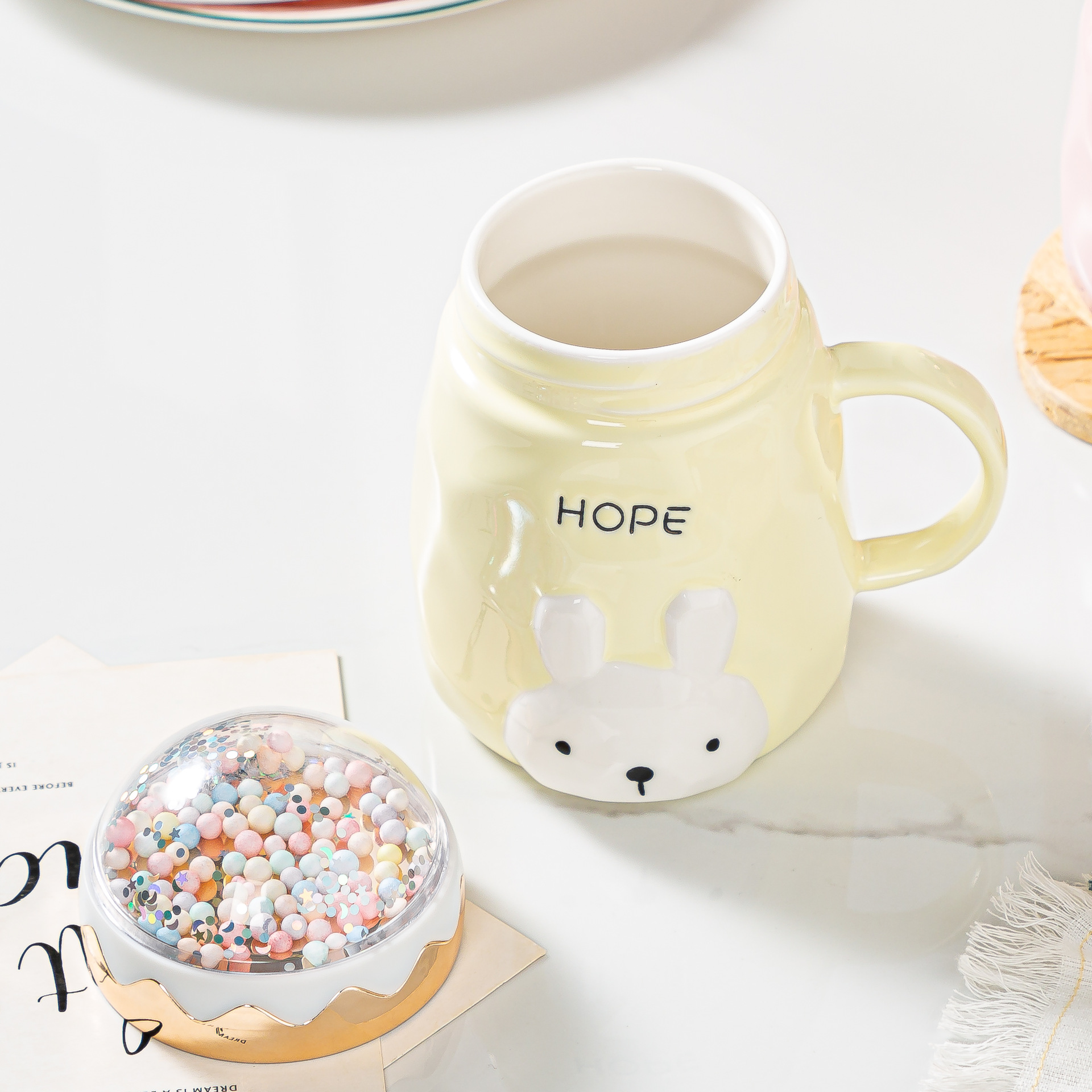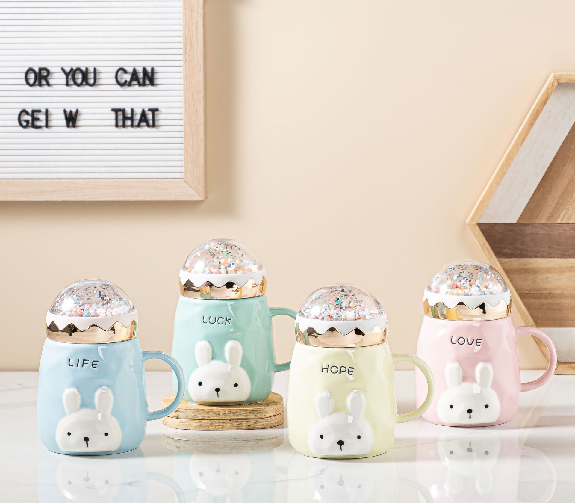 日用百货礼品陶瓷杯卡通动物彩虹马克杯带盖勺跨境货源工厂批发
